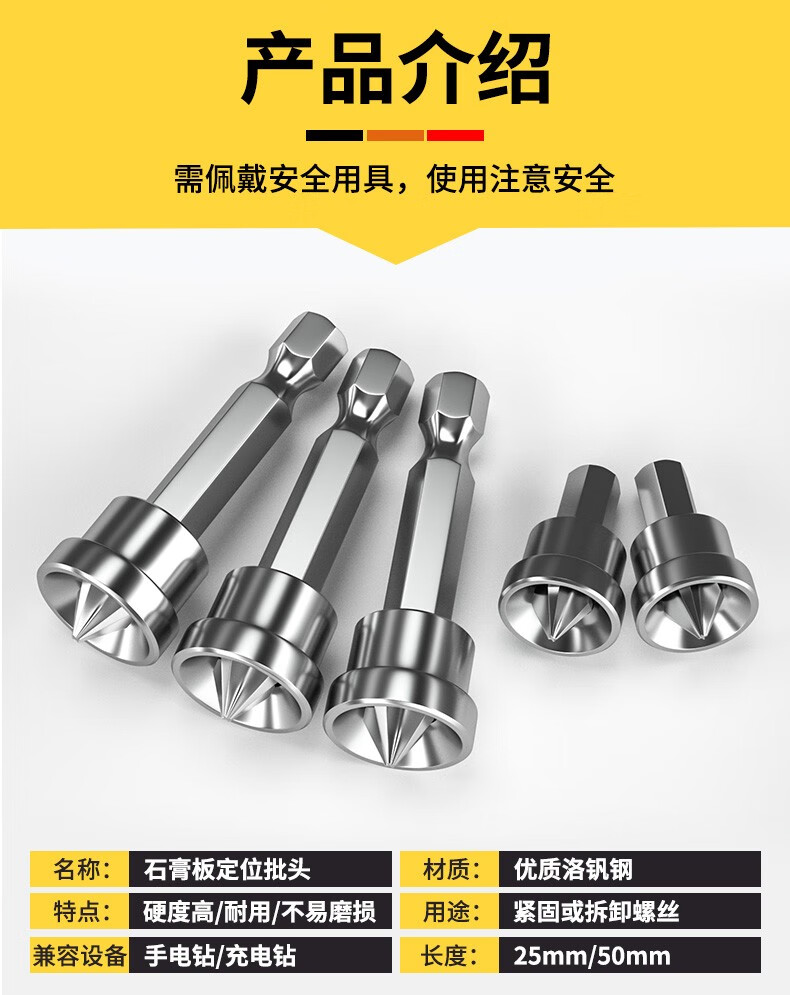 Junmo gypsum board positioning bit cross bit bit pneumatic bit electric bit sleeve screw positioner cross positioning bit 25mm 10 pieces