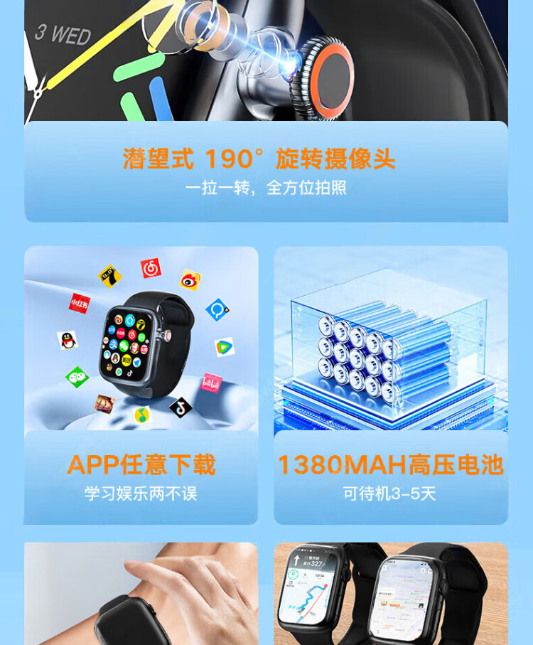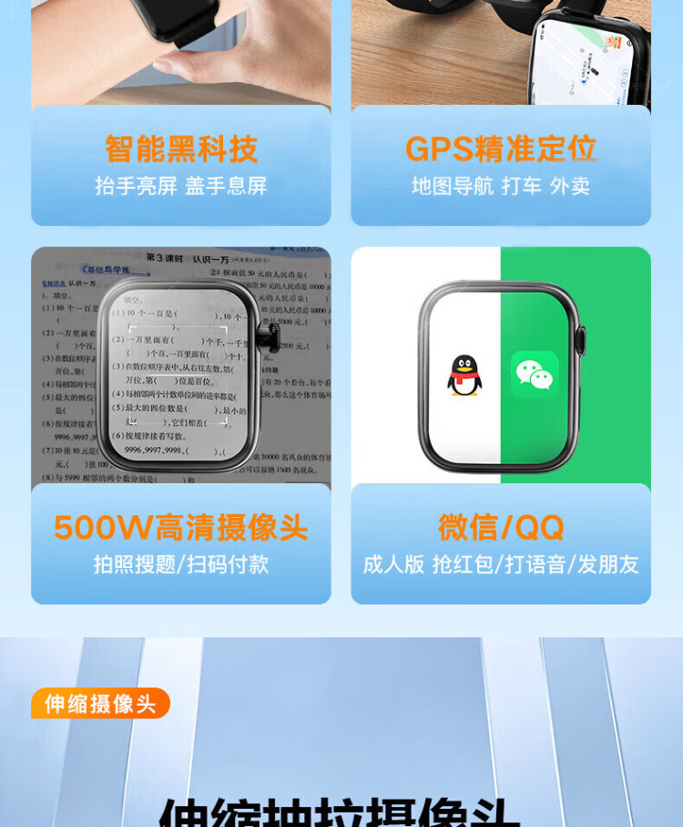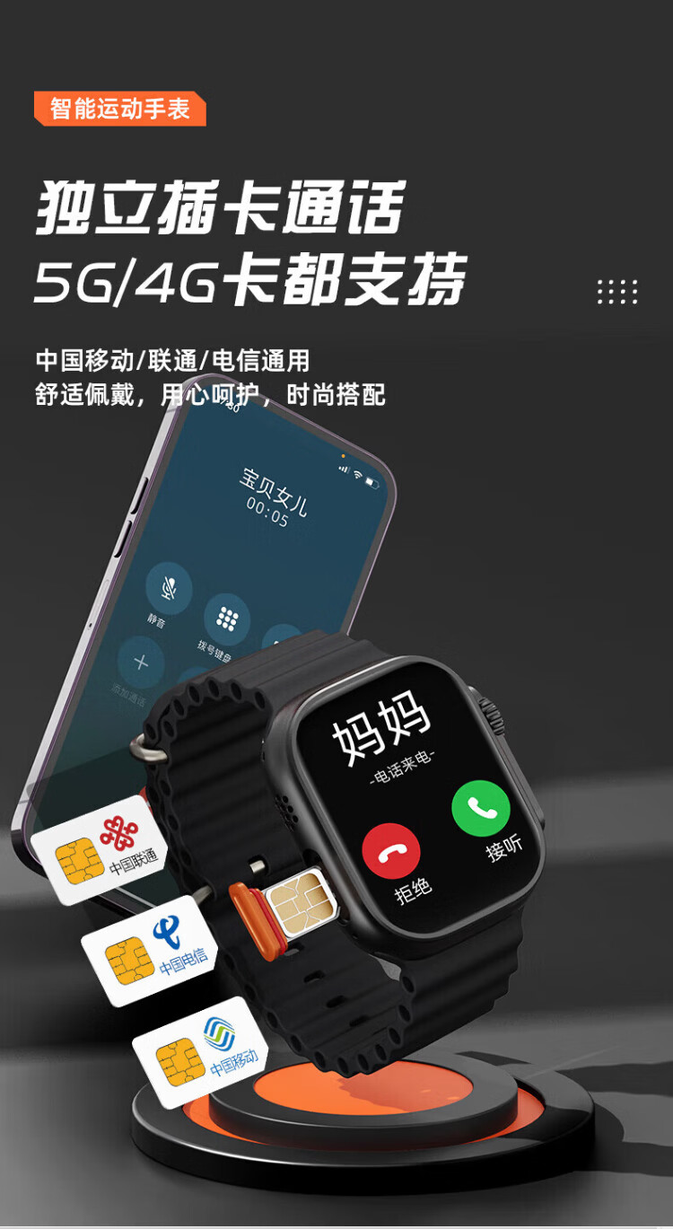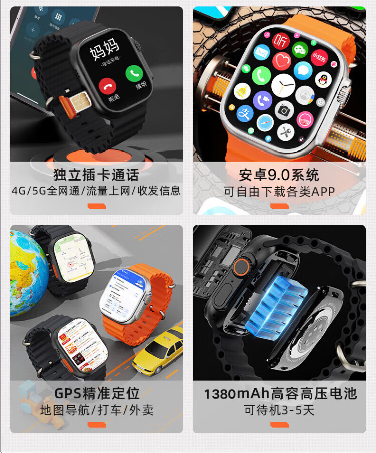 Huaqiangbei online Huaqiangbei S11Ultra3 cellular top version s10 smart watch phone plug-in card 4G5G children's phone watch plug-in card Internet sports men and women middle school and high school adults S11 top version silver + 190 camera + micro Q shake 128G Smart Island plug-in card online version - GPS positioning - download any application