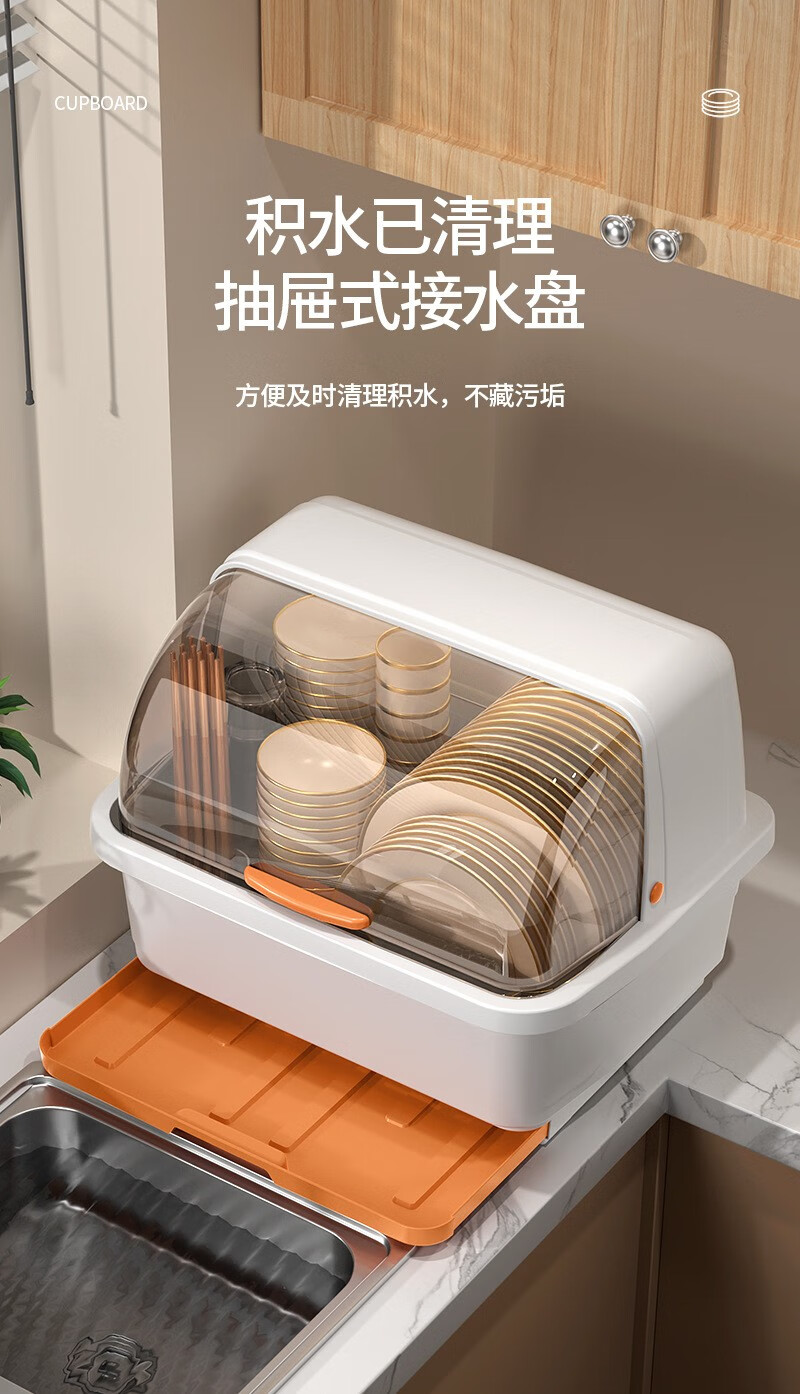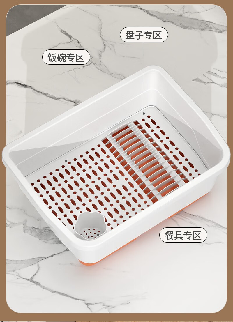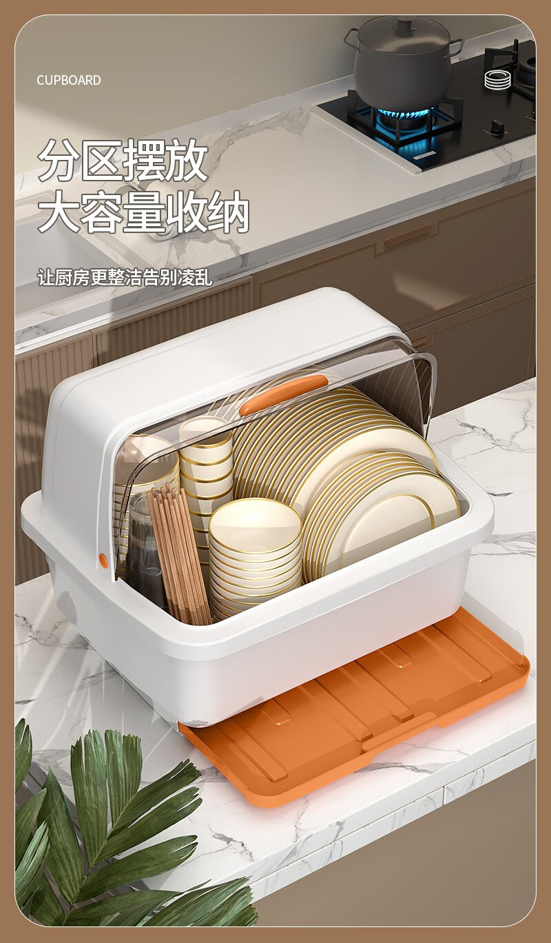 Shiqing bowl and chopsticks storage box drain with lid for bowl box household bowl rack storage rack kitchen dish storage rack cupboard suitable for 5 to 7 people - pp material extra large size - orange