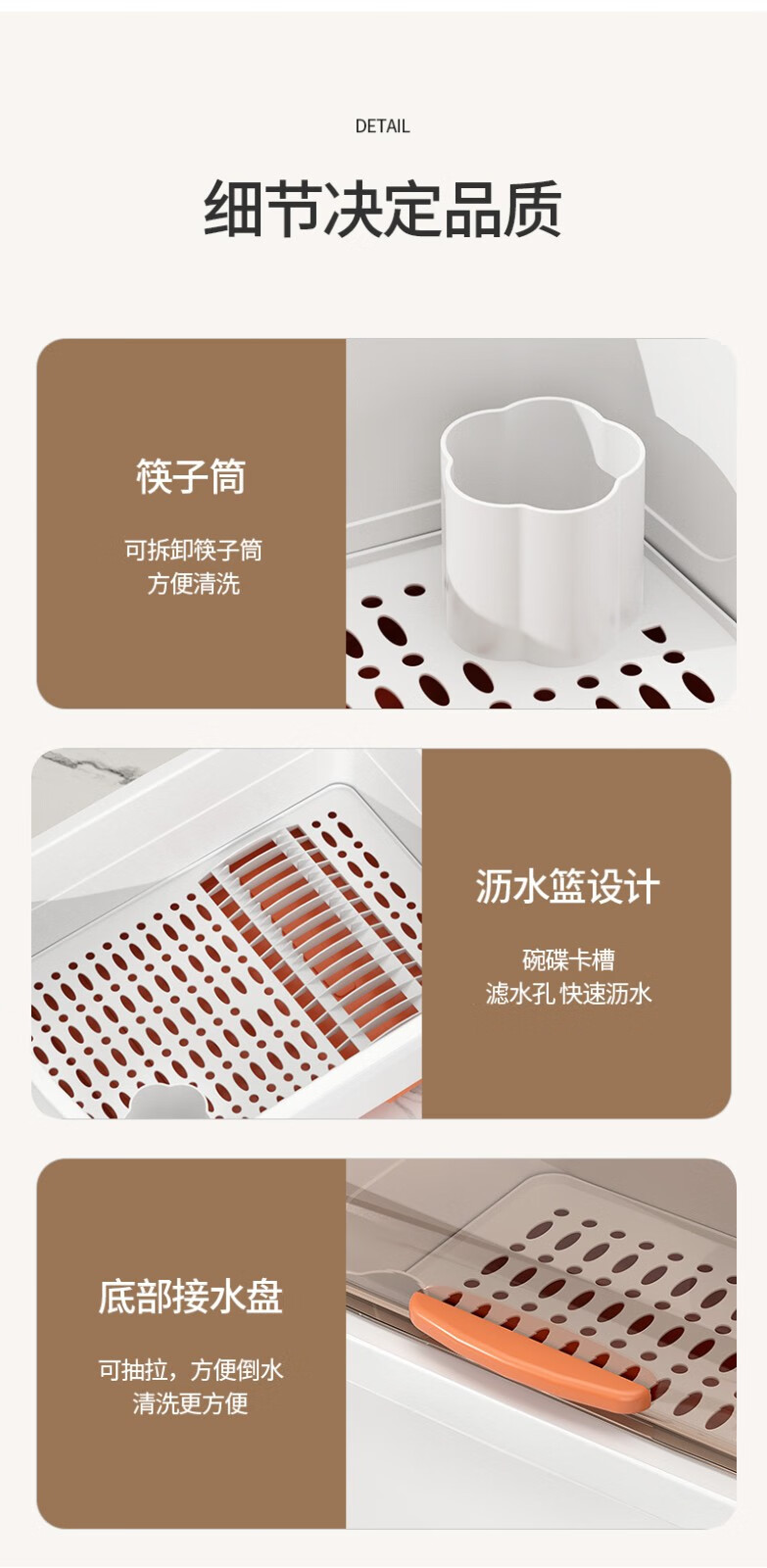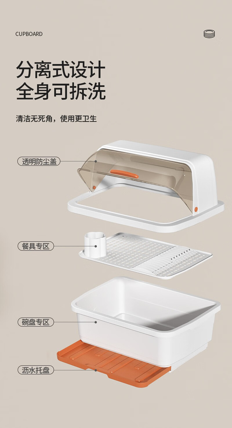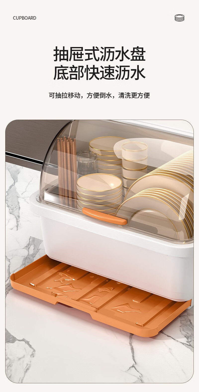 Shiqing bowl and chopsticks storage box drain with lid for bowl box household bowl rack storage rack kitchen dish storage rack cupboard suitable for 5 to 7 people - pp material extra large size - orange