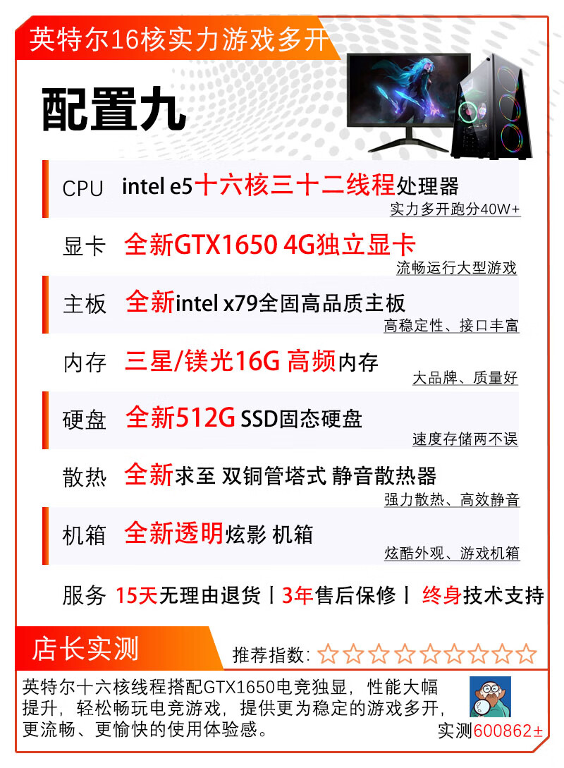 Desktop computer Core i5/i7 Intel 12-core GTX1650 e-sports independent display host DIY assembly complete machine full set of games multi-open high-end office computer configuration 8 Intel 12-core-16G-GTX 8G independent display single host