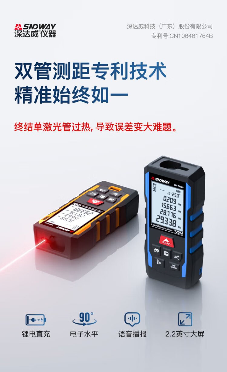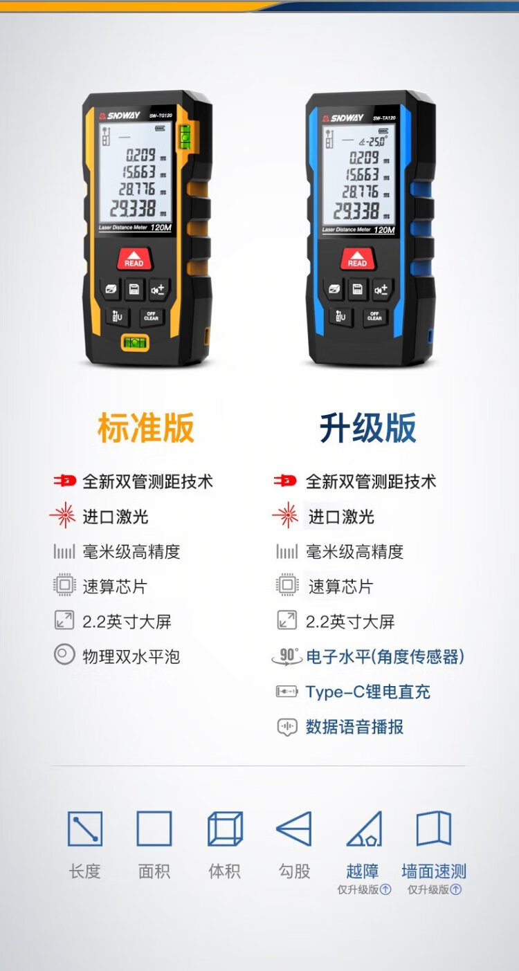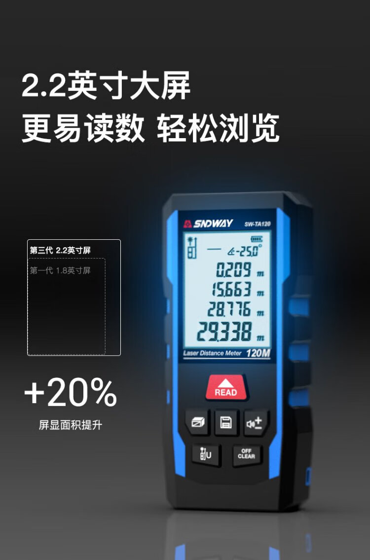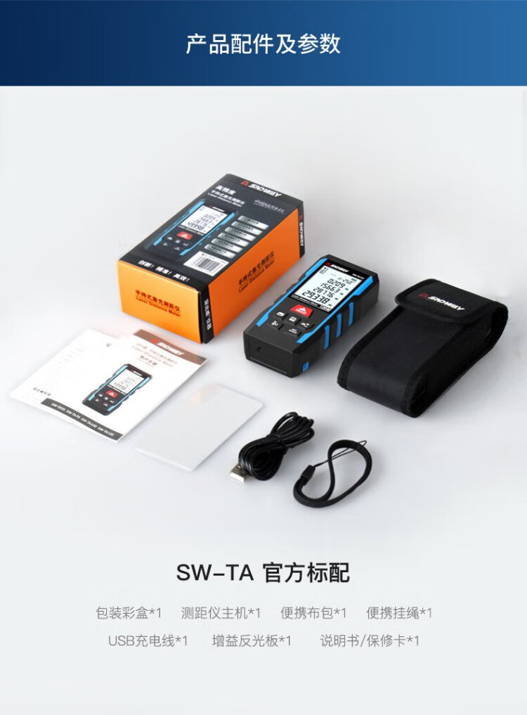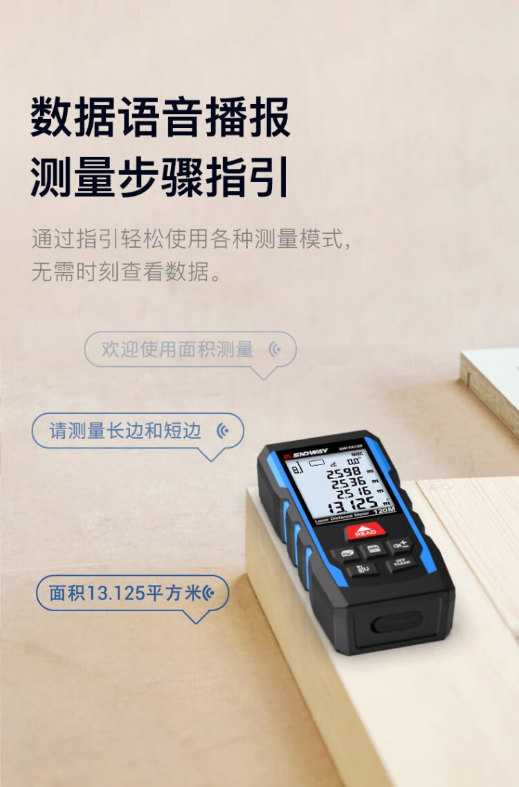 SNDWAY laser range finder handheld electronic ruler measuring room infrared ruler area height measuring instrument SW-TA50PRO (lithium battery voice upgrade)