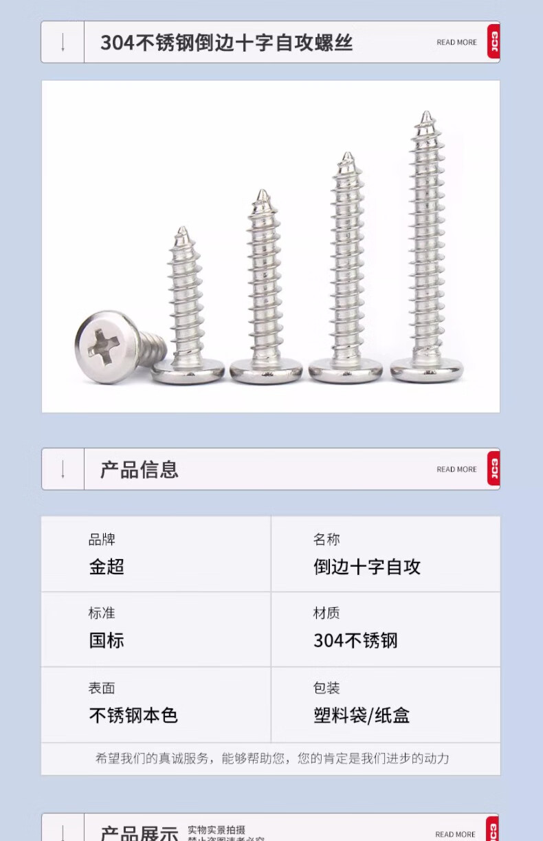 Jinchao 304 stainless steel cross flat head self-tapping screws bevel round head furniture bevel edge wood screws M3M4M5 M4*25 (50 pcs)