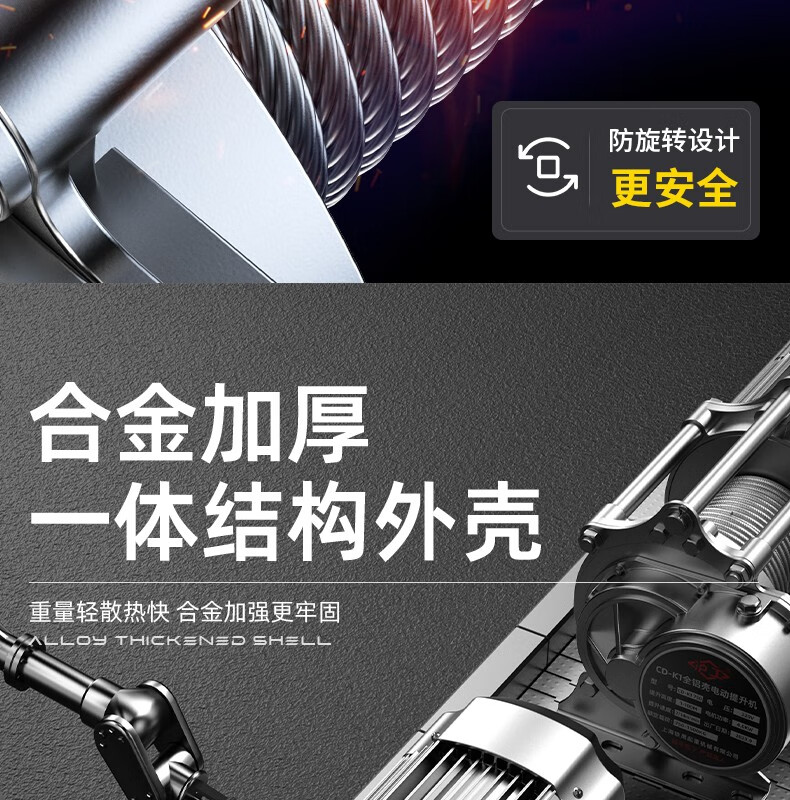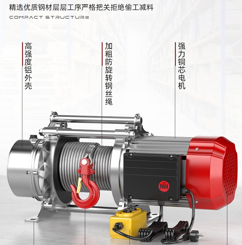 Hugong aluminum shell electric hoist crane winch multi-functional hoist 1 ton 2 ton T small crane household hoist 380V 1 ton 30 meters (fast)