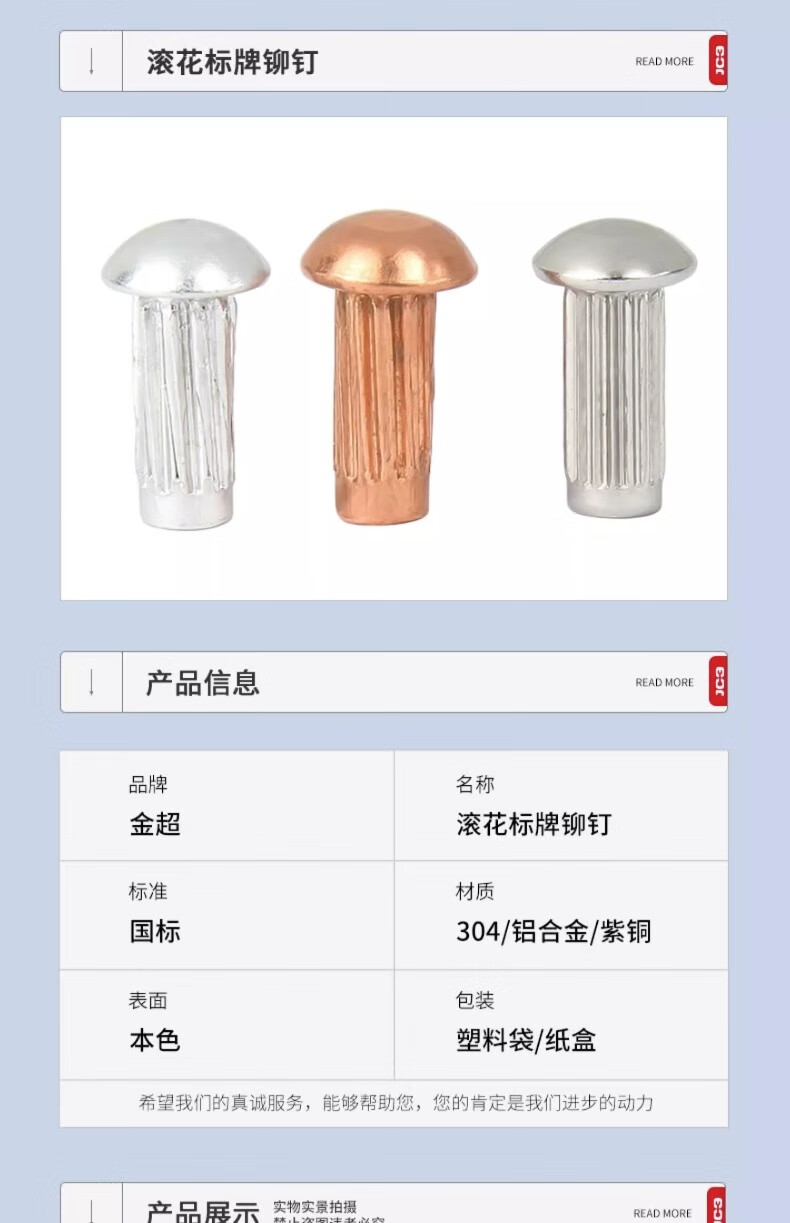 Jinchao GB827 aluminum stainless steel knurled aluminum rivets copper nameplate solid rivets M2.5M3M4M5 M2*5 (100 pieces) copper