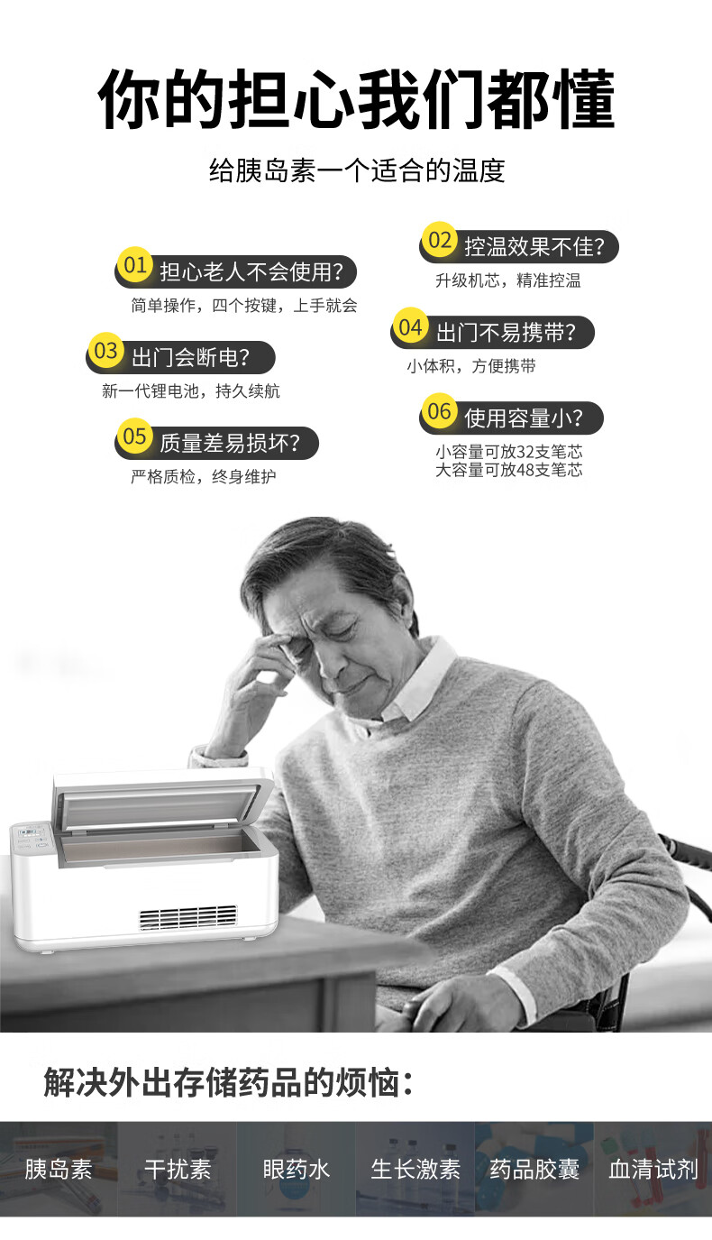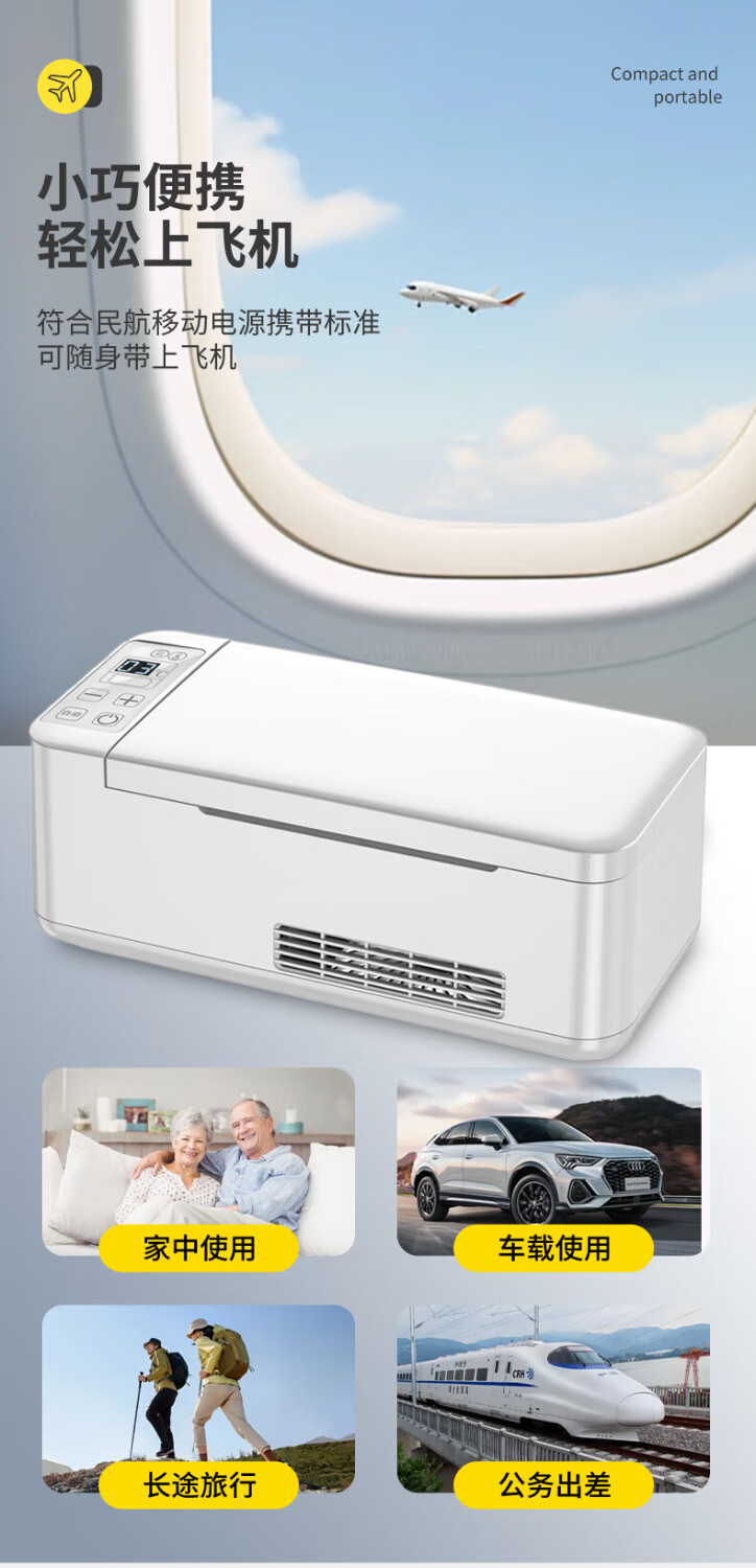 TULIAN Insulin Refrigerator Box Portable Small Refrigerator Car Home Dual-Purpose 2-8 Degrees Constant Temperature Growth Hormone Drug Refrigerator Insulin Refrigerator Box Single Battery Package 0.39L