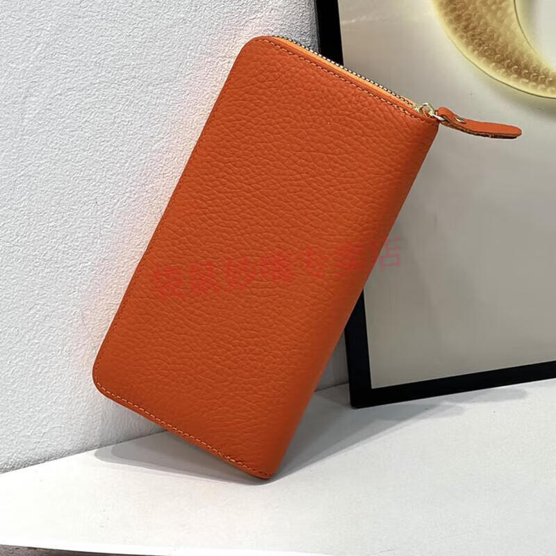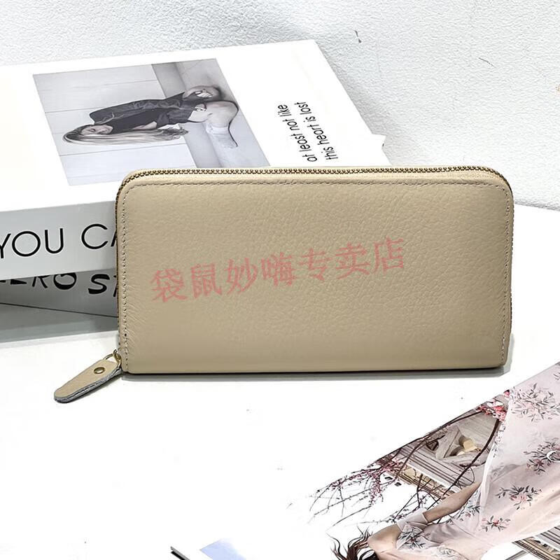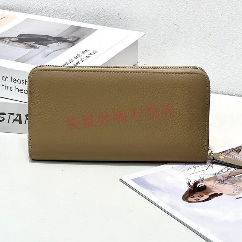Kangaroo (KANGAROO) genuine leather women's long wallet first layer cowhide fashion wallet zipper bag pebbled leather wallet wallet earthy yellow