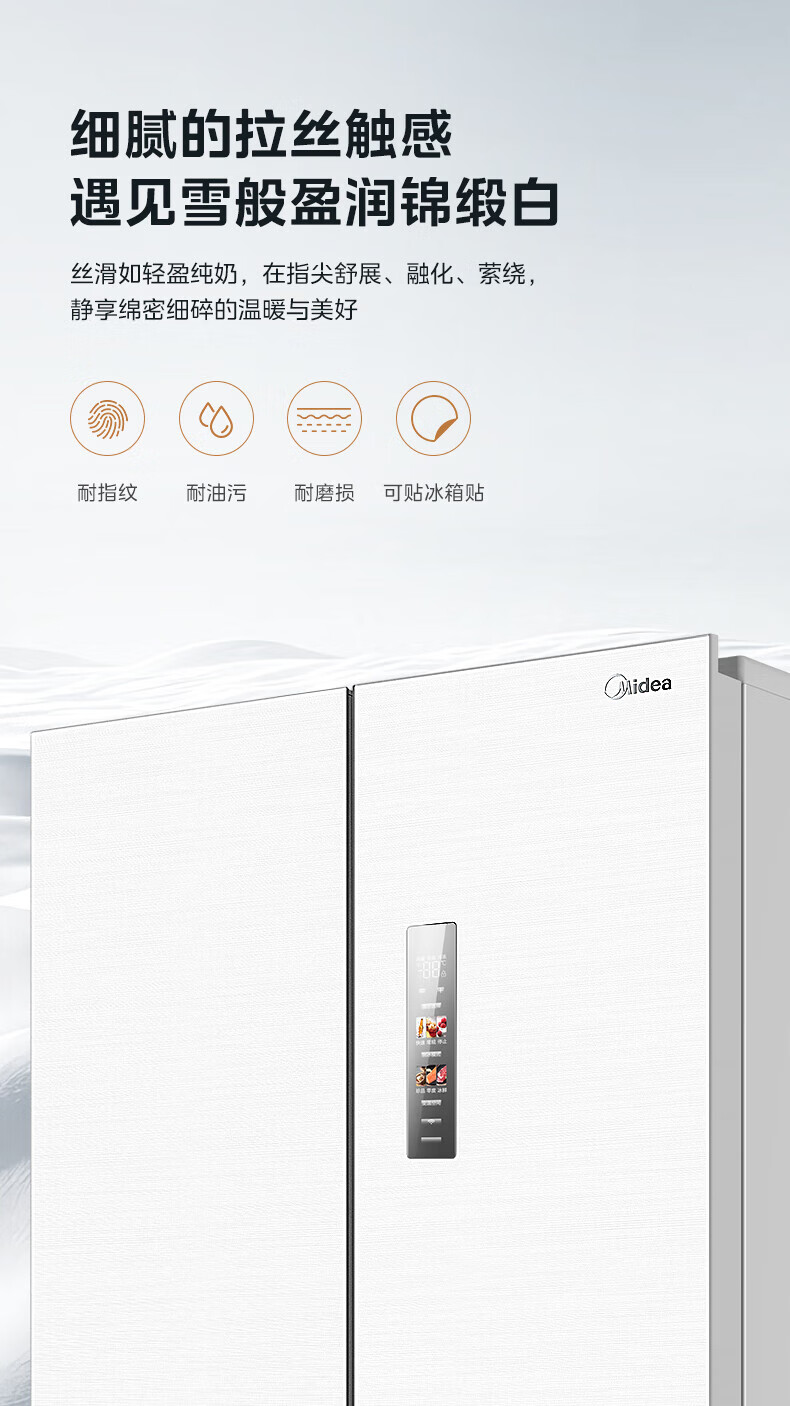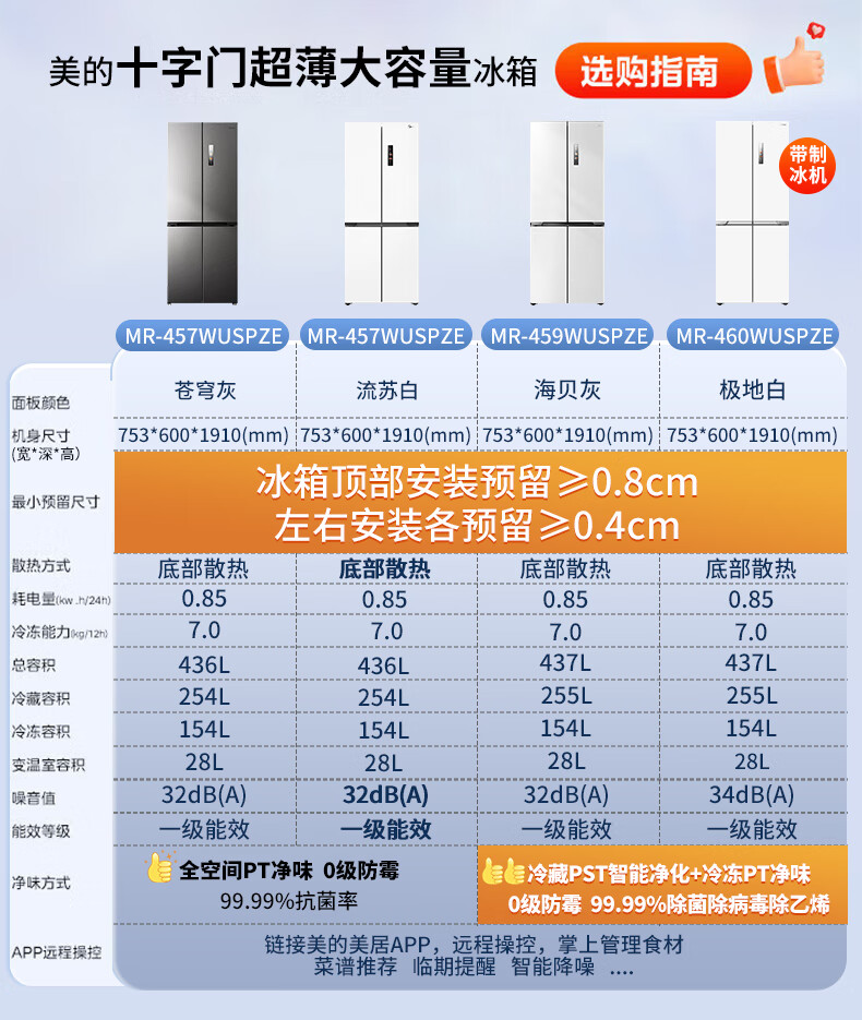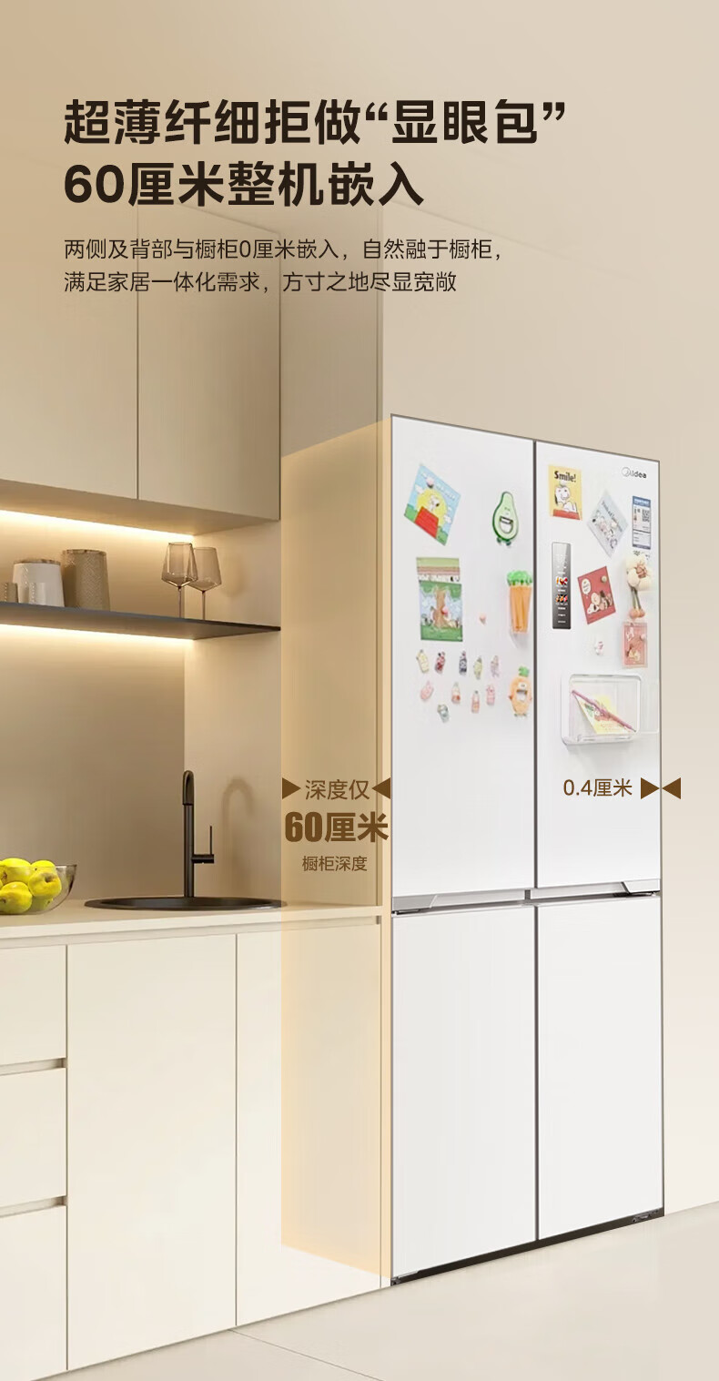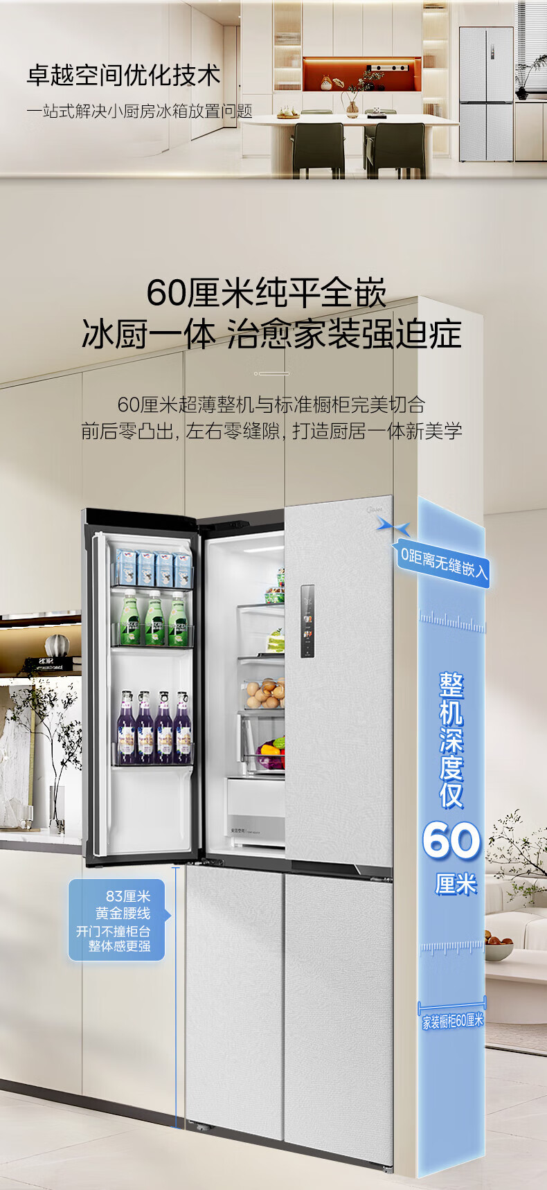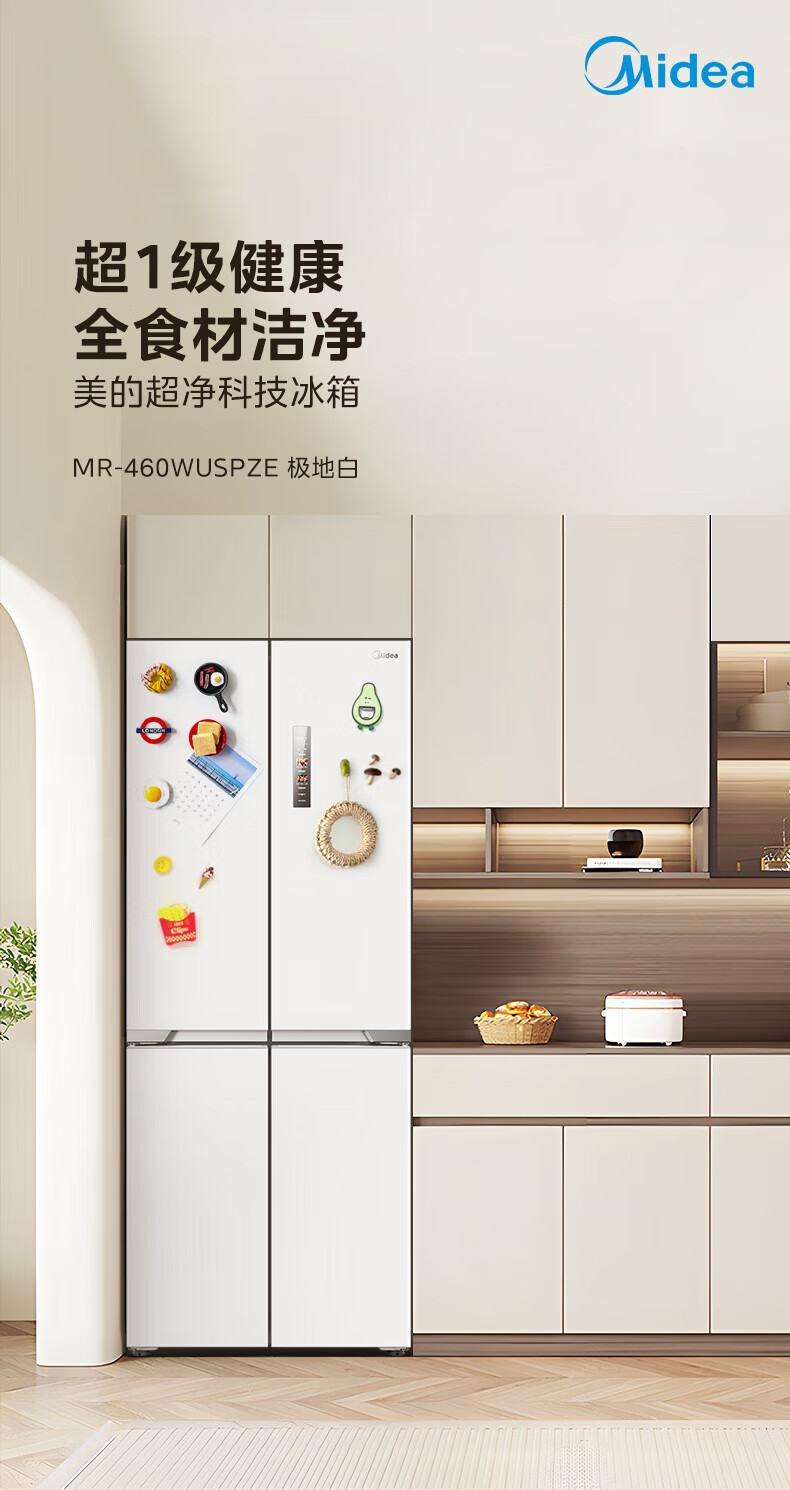 Midea Refrigerator 457 75.3cm wide 60cm ultra-thin flat embedded first-class energy efficiency air-cooled frost-free cross door four-door household odor-free large-capacity refrigerator subsidy discount 15% full space PT odor-free MR-457WUSPZE Sky Gray