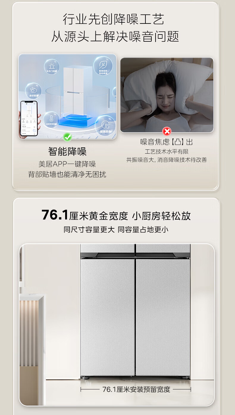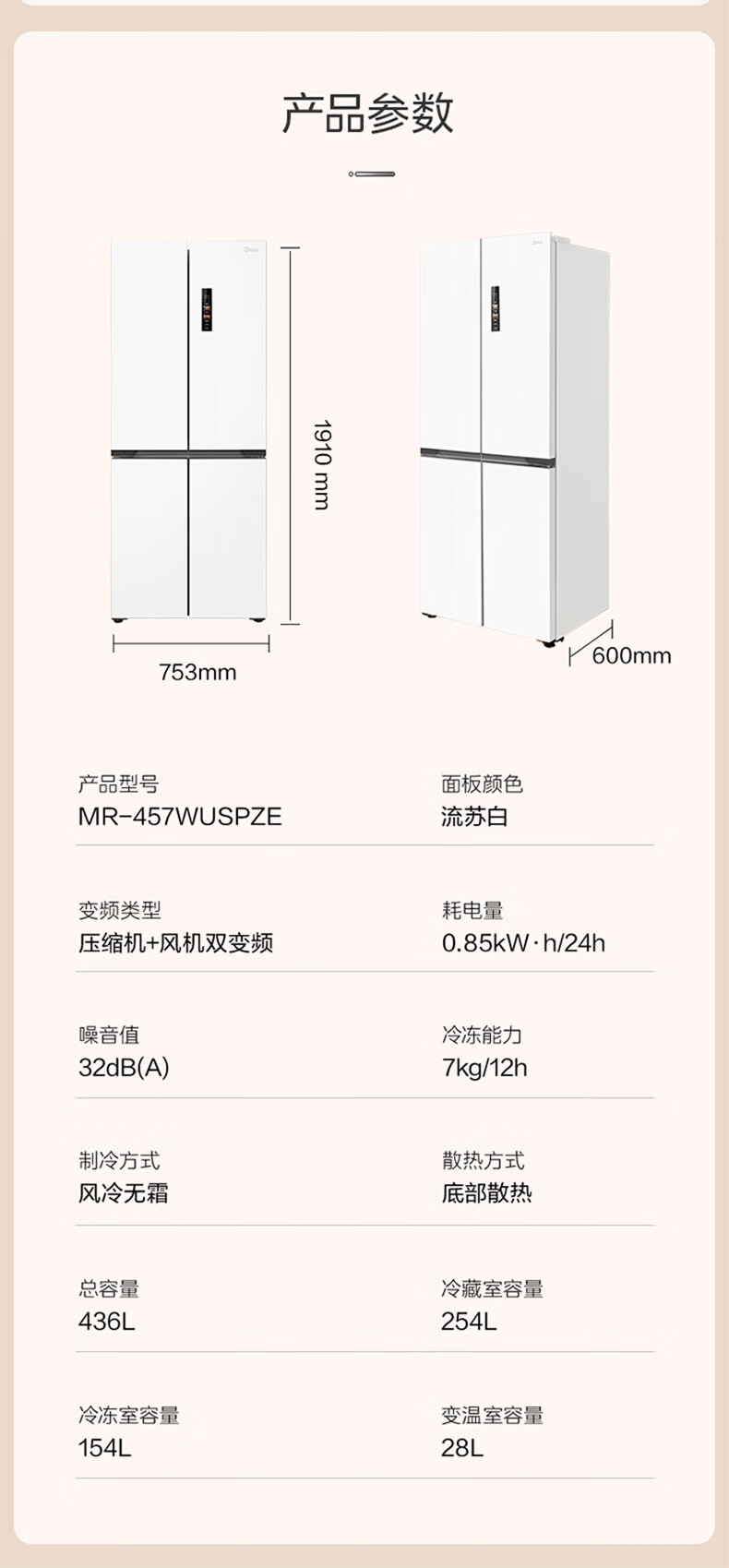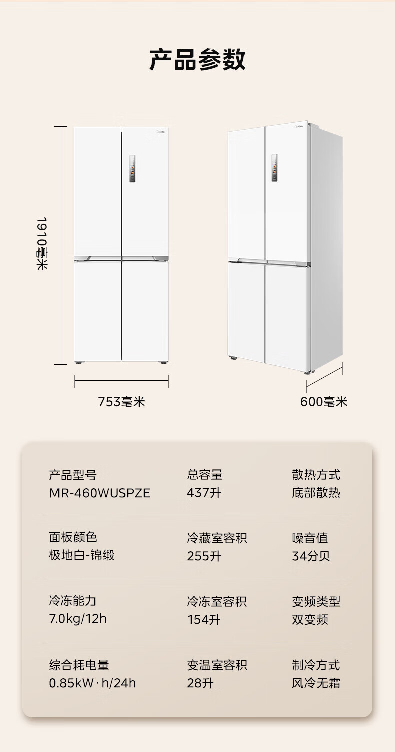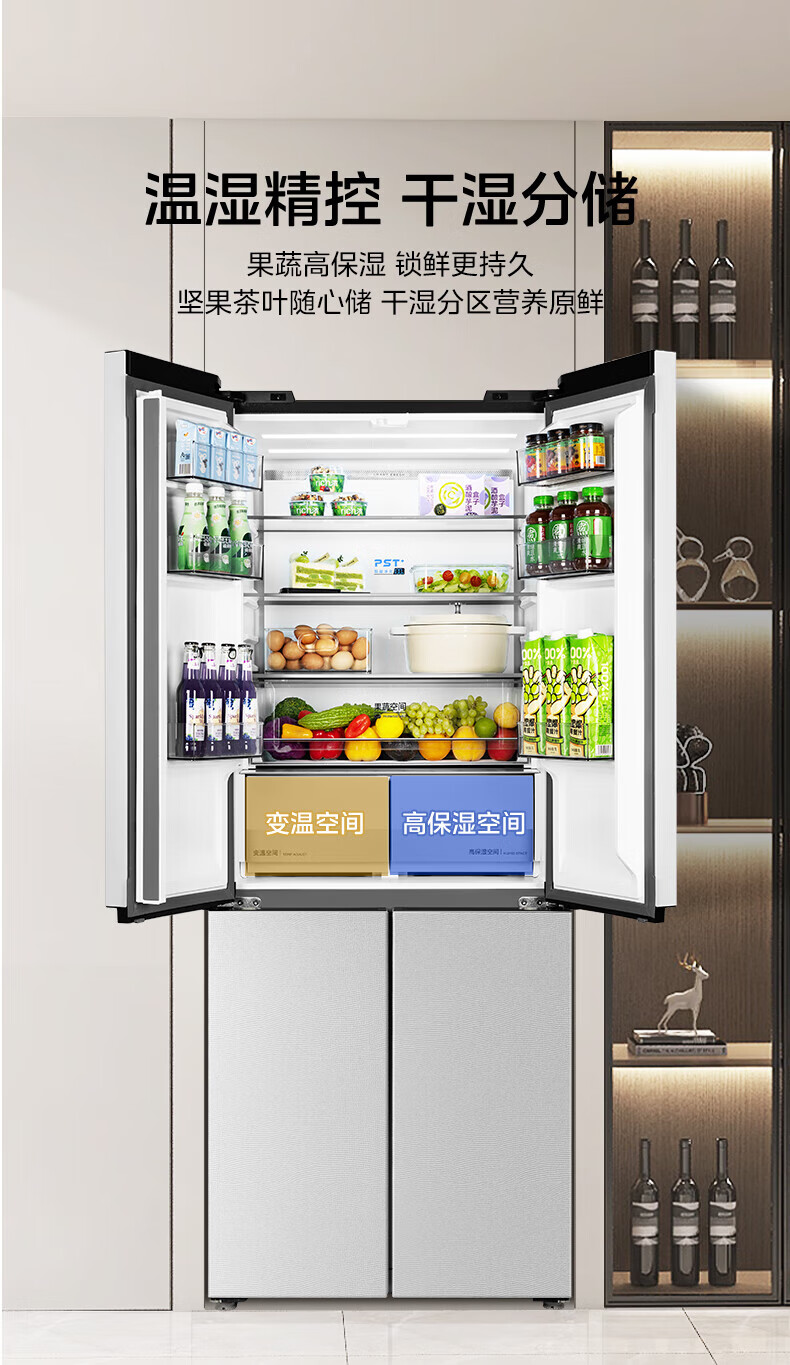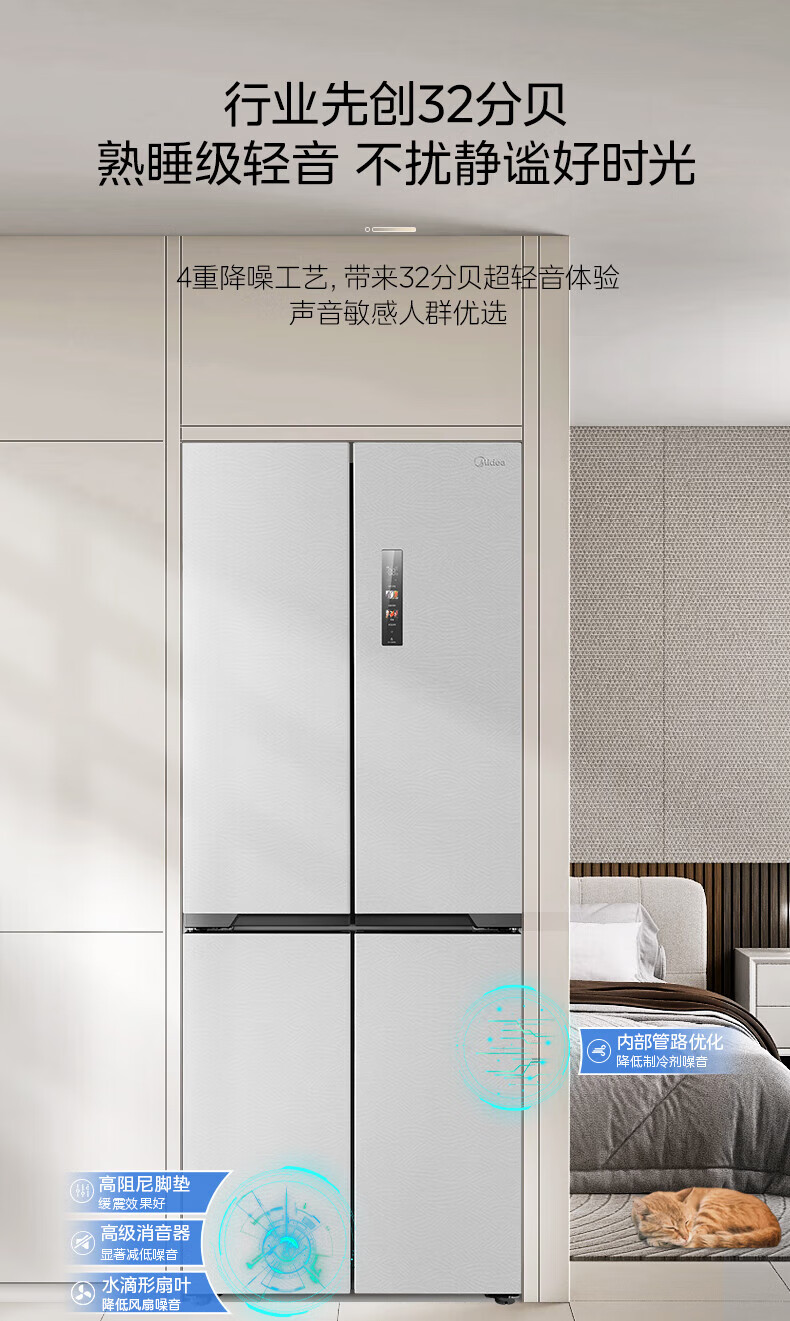 Midea Refrigerator 457 75.3cm wide 60cm ultra-thin flat embedded first-class energy efficiency air-cooled frost-free cross door four-door household odor-free large-capacity refrigerator subsidy discount 15% full space PT odor-free MR-457WUSPZE Sky Gray