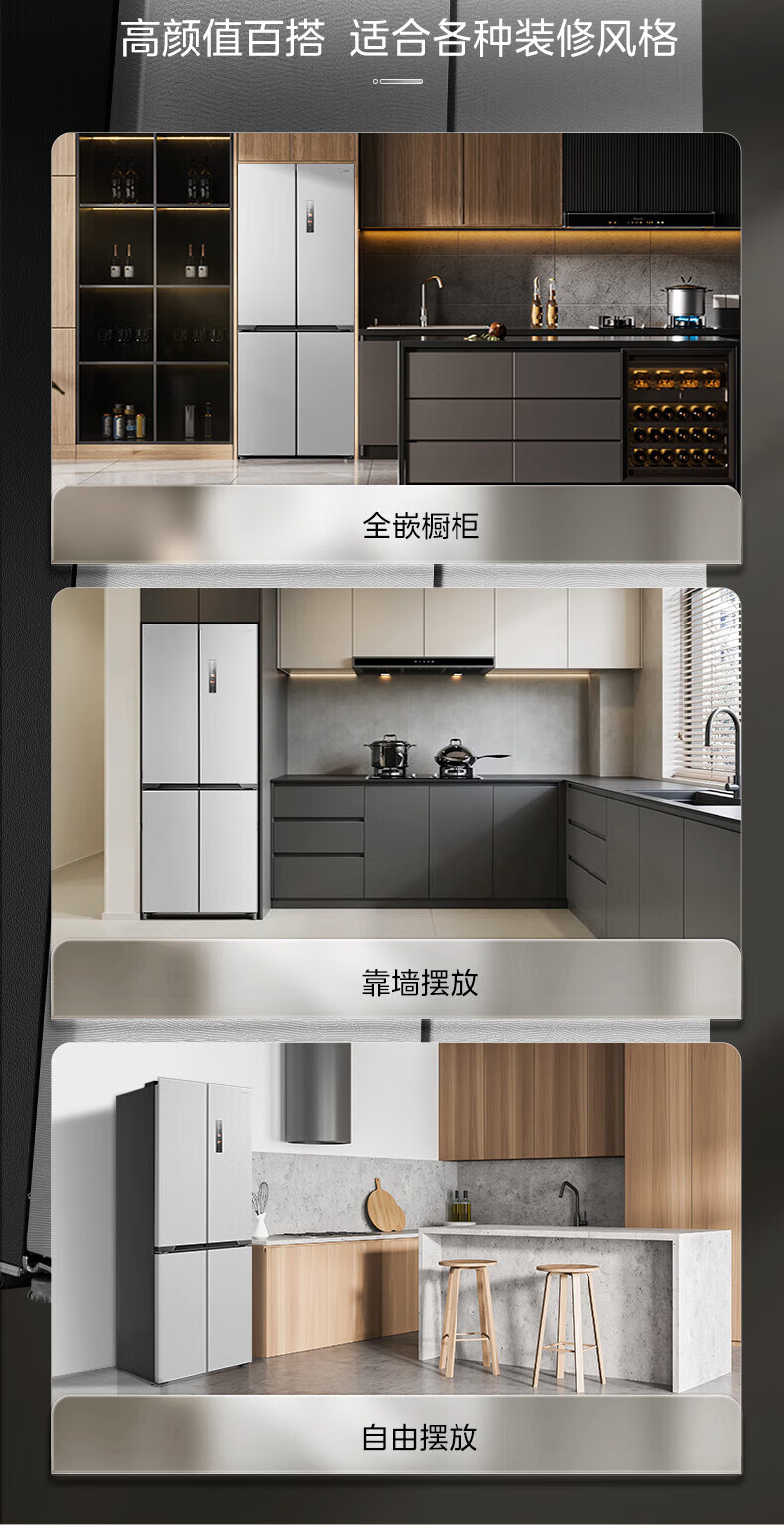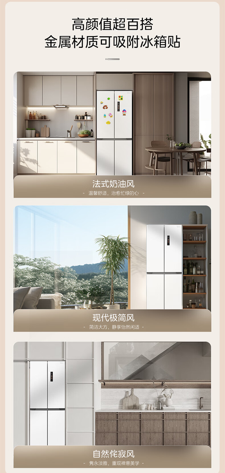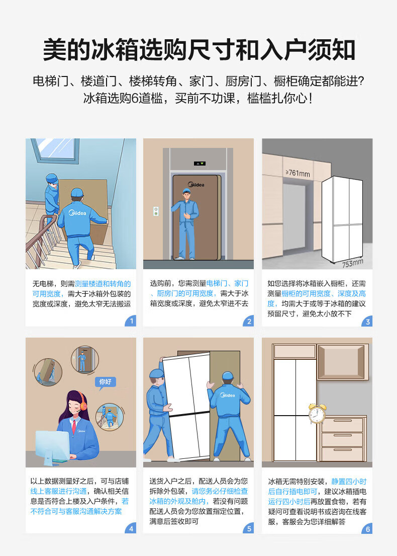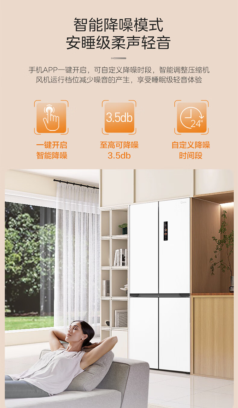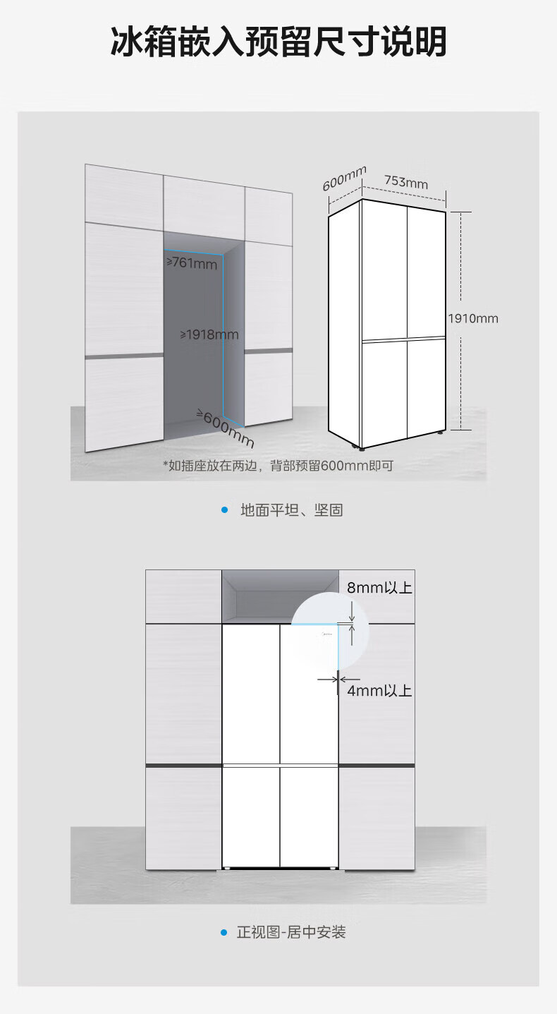 Midea Refrigerator 457 75.3cm wide 60cm ultra-thin flat embedded first-class energy efficiency air-cooled frost-free cross door four-door household odor-free large-capacity refrigerator subsidy discount 15% full space PT odor-free MR-457WUSPZE Sky Gray