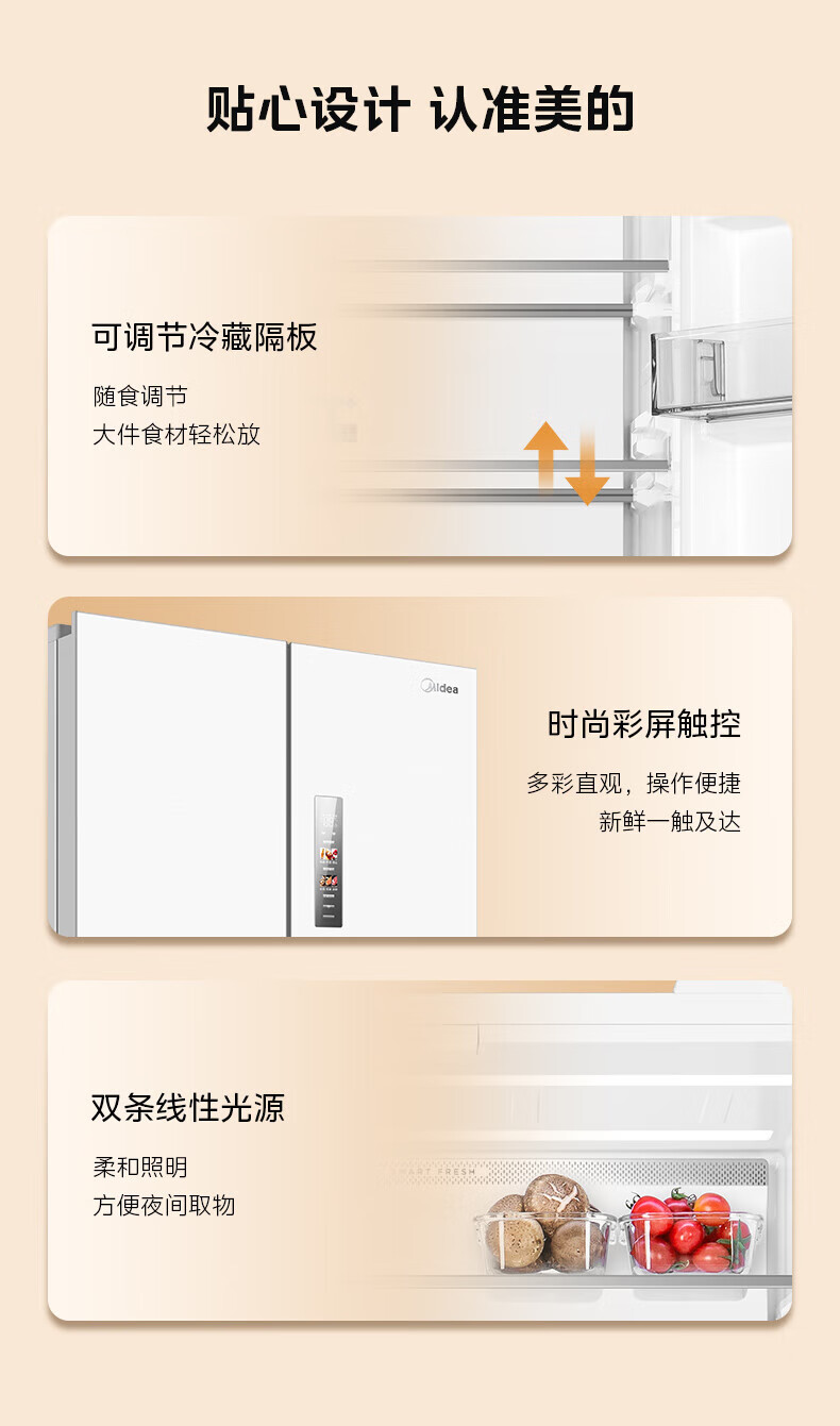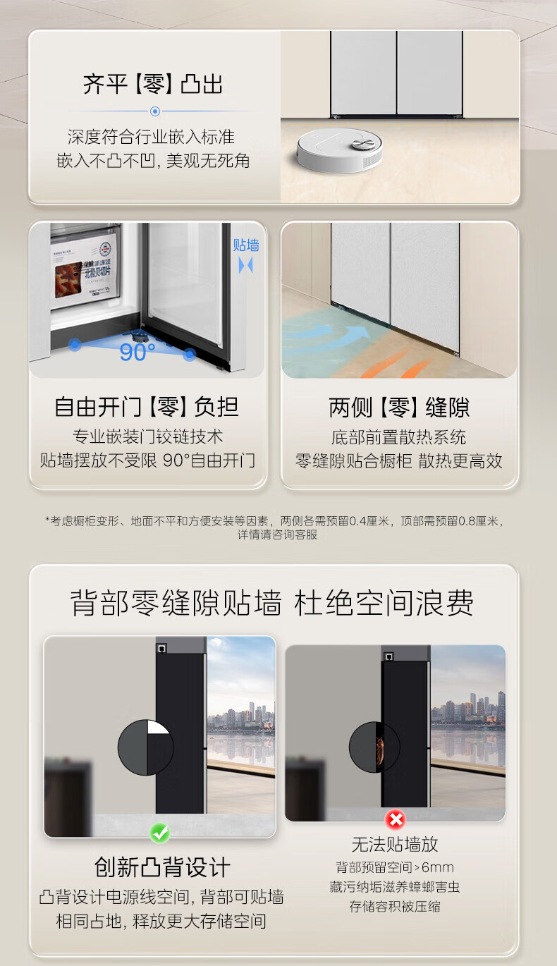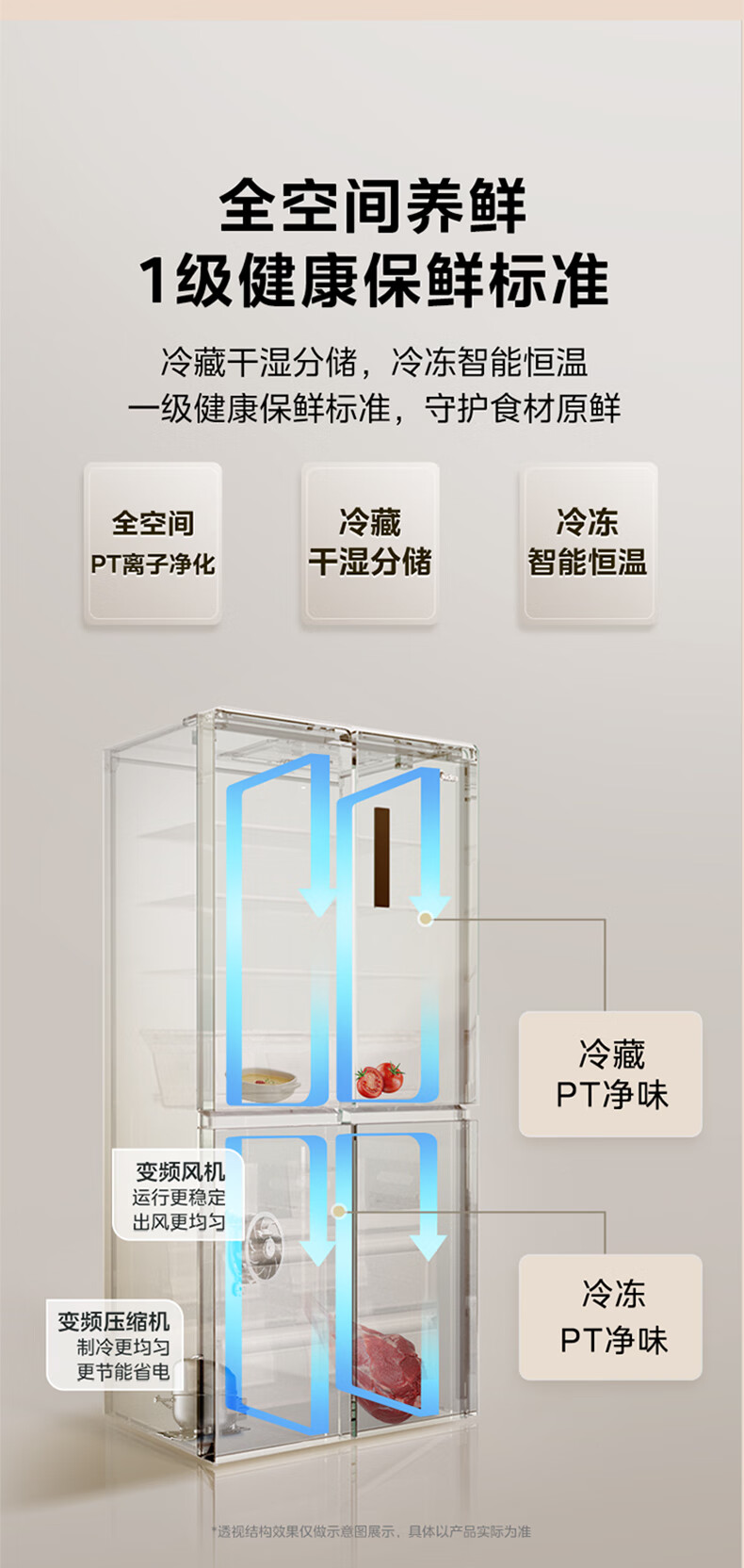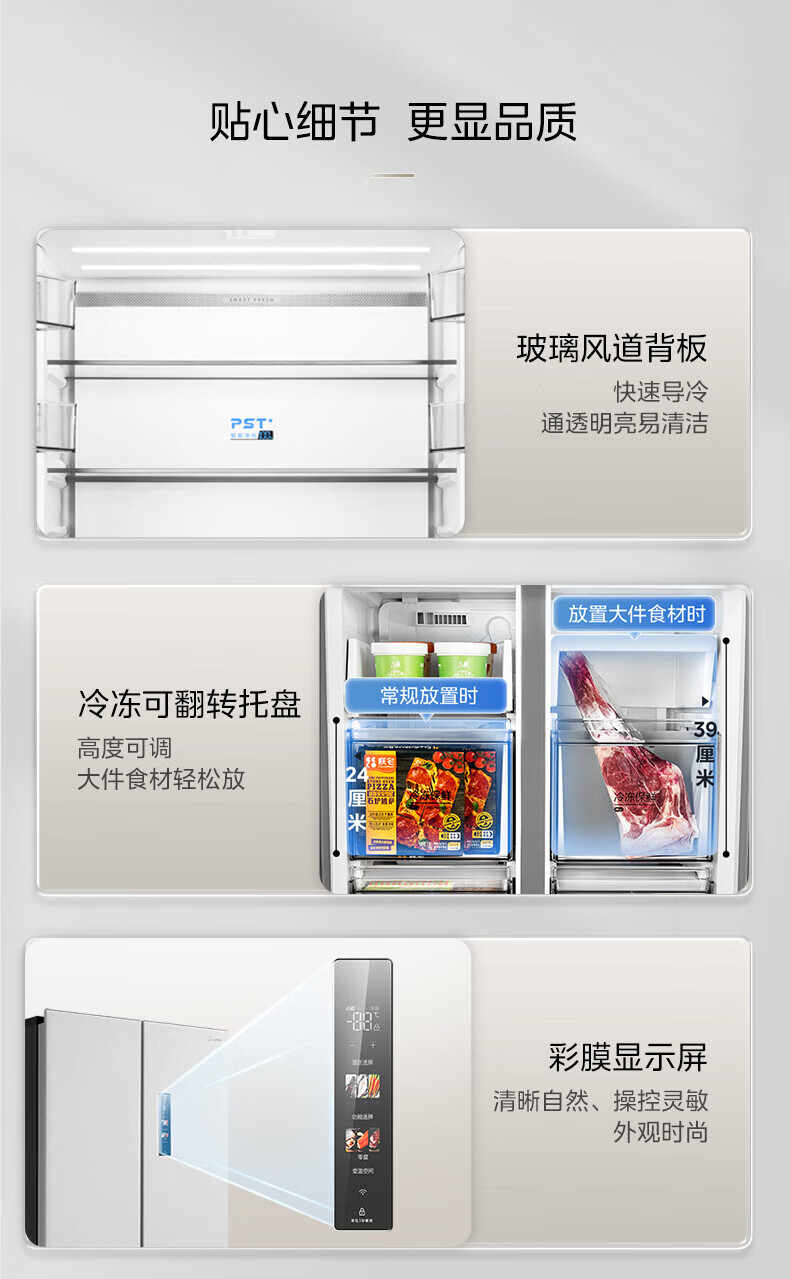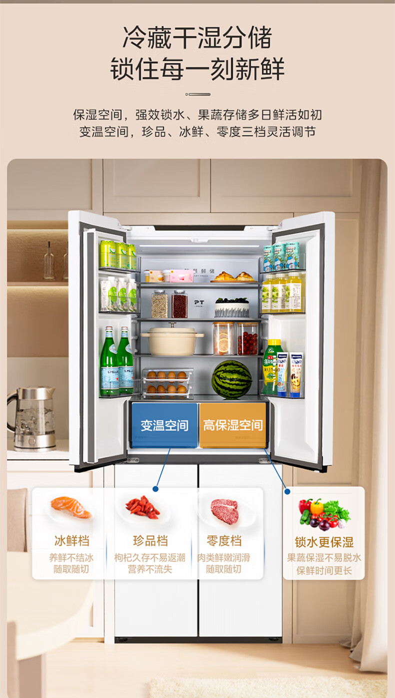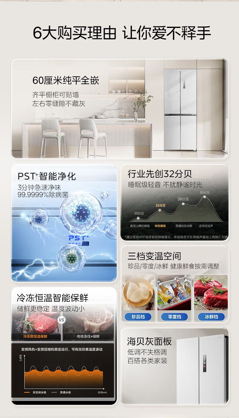 Midea Refrigerator 457 75.3cm wide 60cm ultra-thin flat embedded first-class energy efficiency air-cooled frost-free cross door four-door household odor-free large-capacity refrigerator subsidy discount 15% full space PT odor-free MR-457WUSPZE Sky Gray