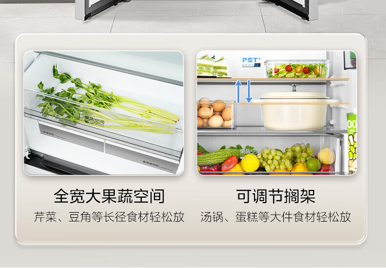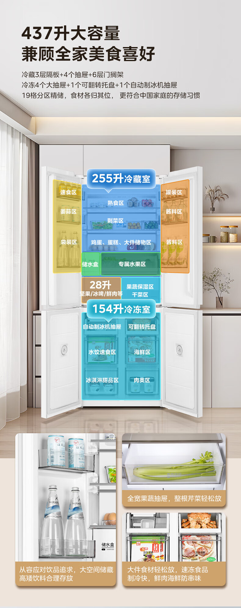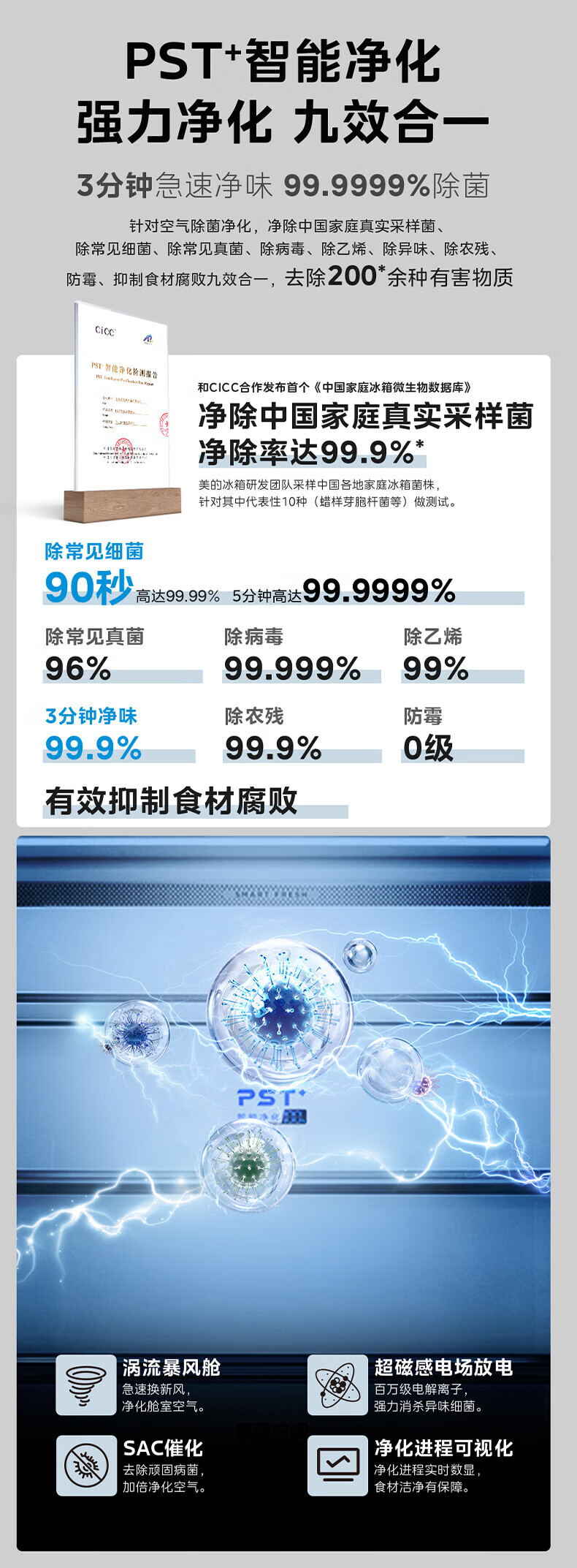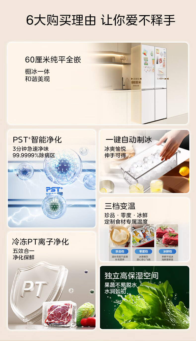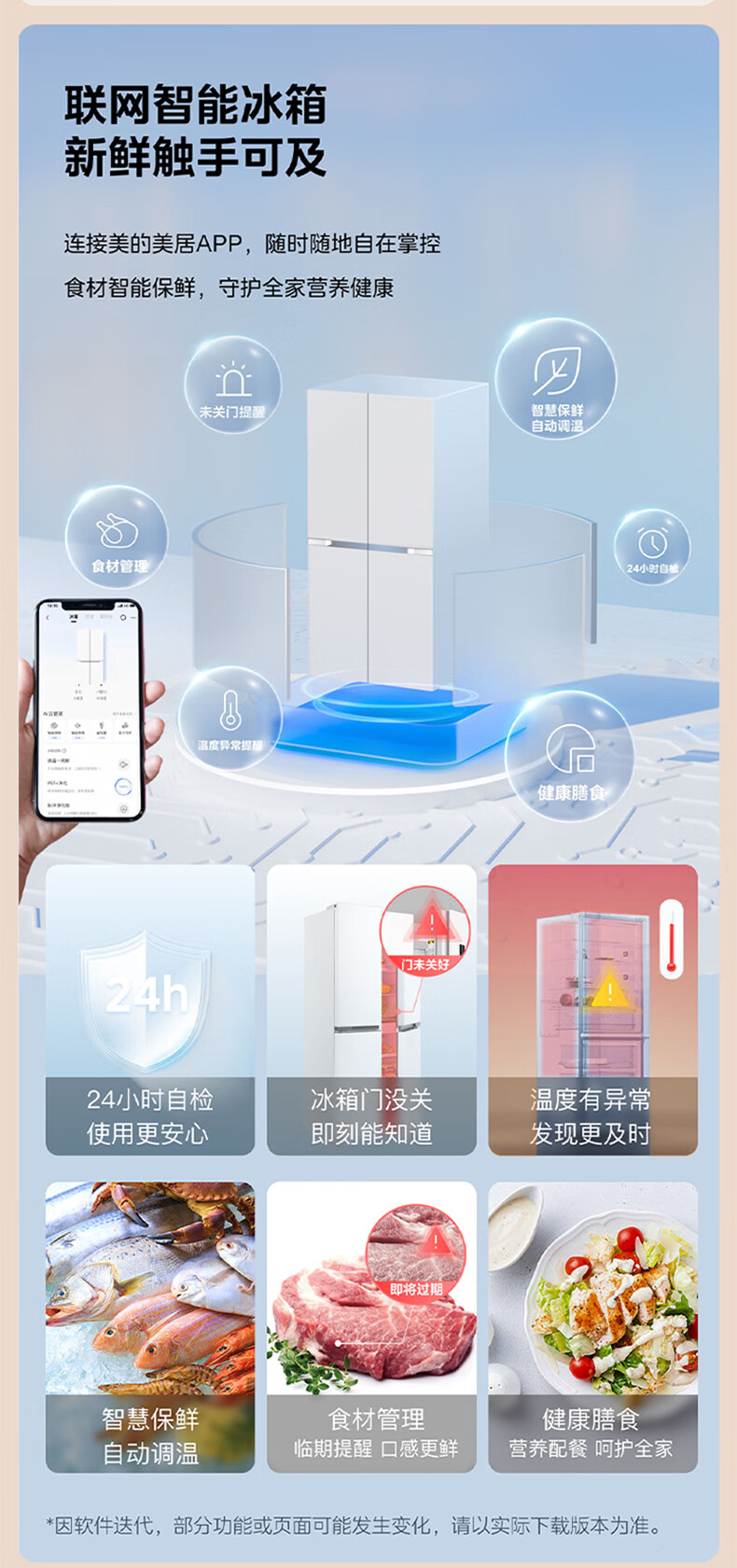 Midea Refrigerator 457 75.3cm wide 60cm ultra-thin flat embedded first-class energy efficiency air-cooled frost-free cross door four-door household odor-free large-capacity refrigerator subsidy discount 15% full space PT odor-free MR-457WUSPZE Sky Gray