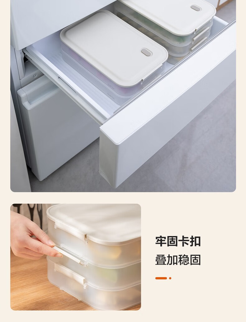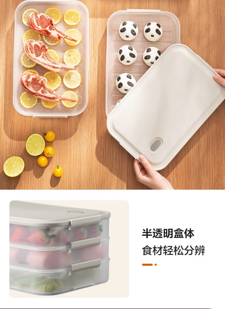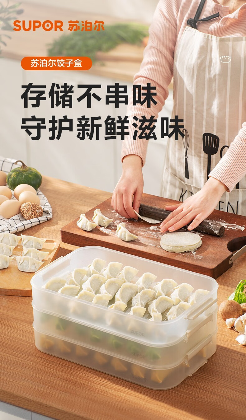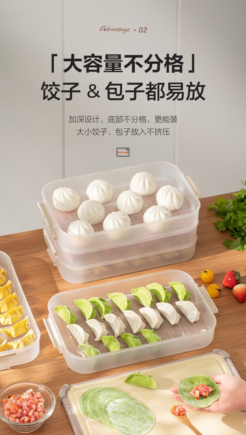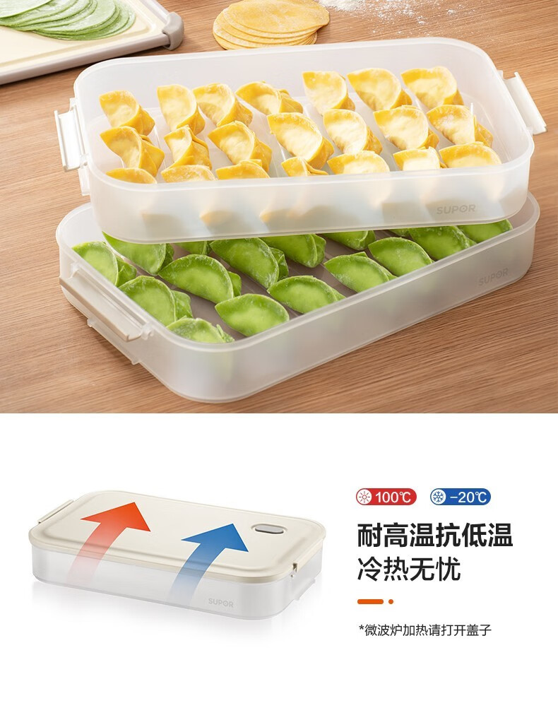 SUPOR food-grade crisper box, large-capacity refrigerator storage box, dumpling box, sealed box, quick-frozen frozen dumpling wonton box, multi-functional dumpling box, one cover, 2 layers