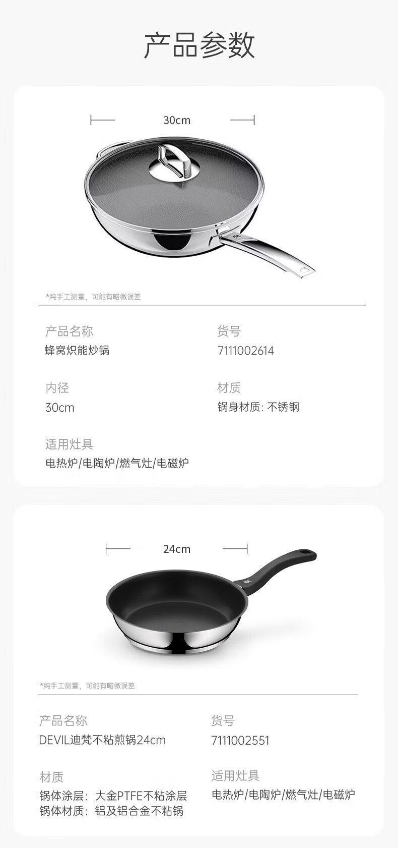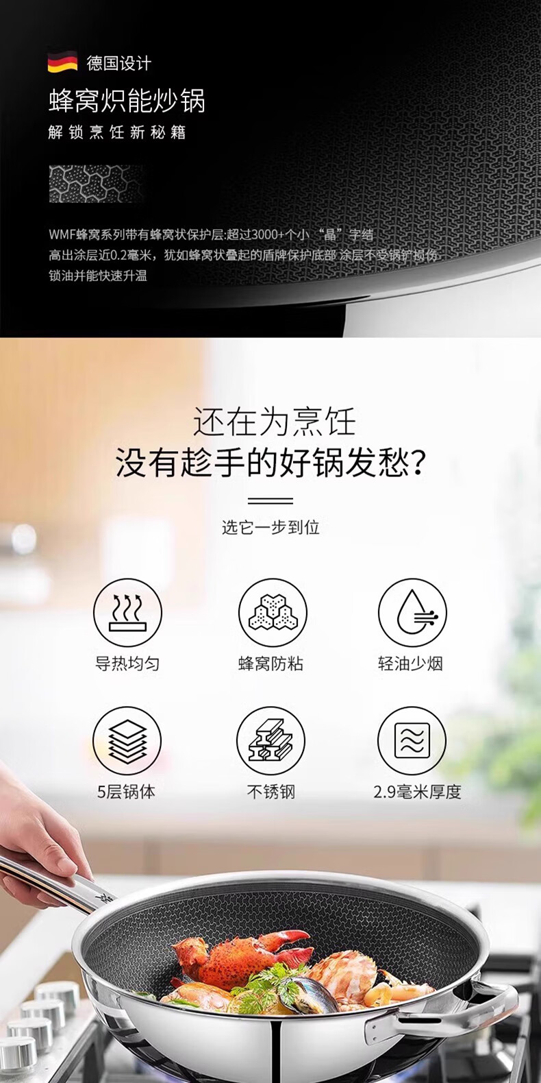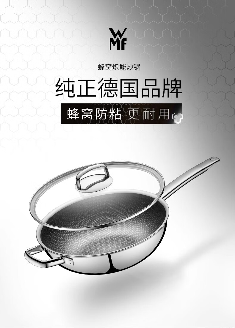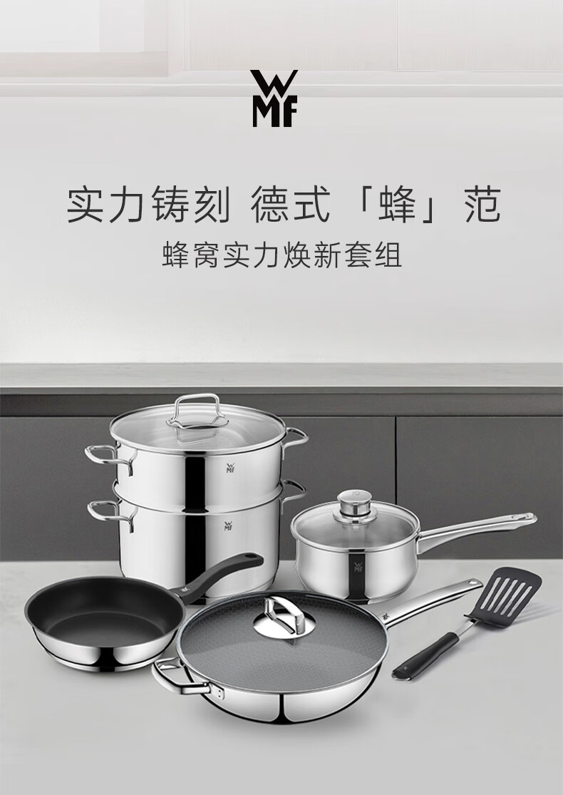 WMF Futengbao pot set combination stainless steel frying pan soup pot milk pot wok set induction cooker gas universal honeycomb combination set 5-piece set