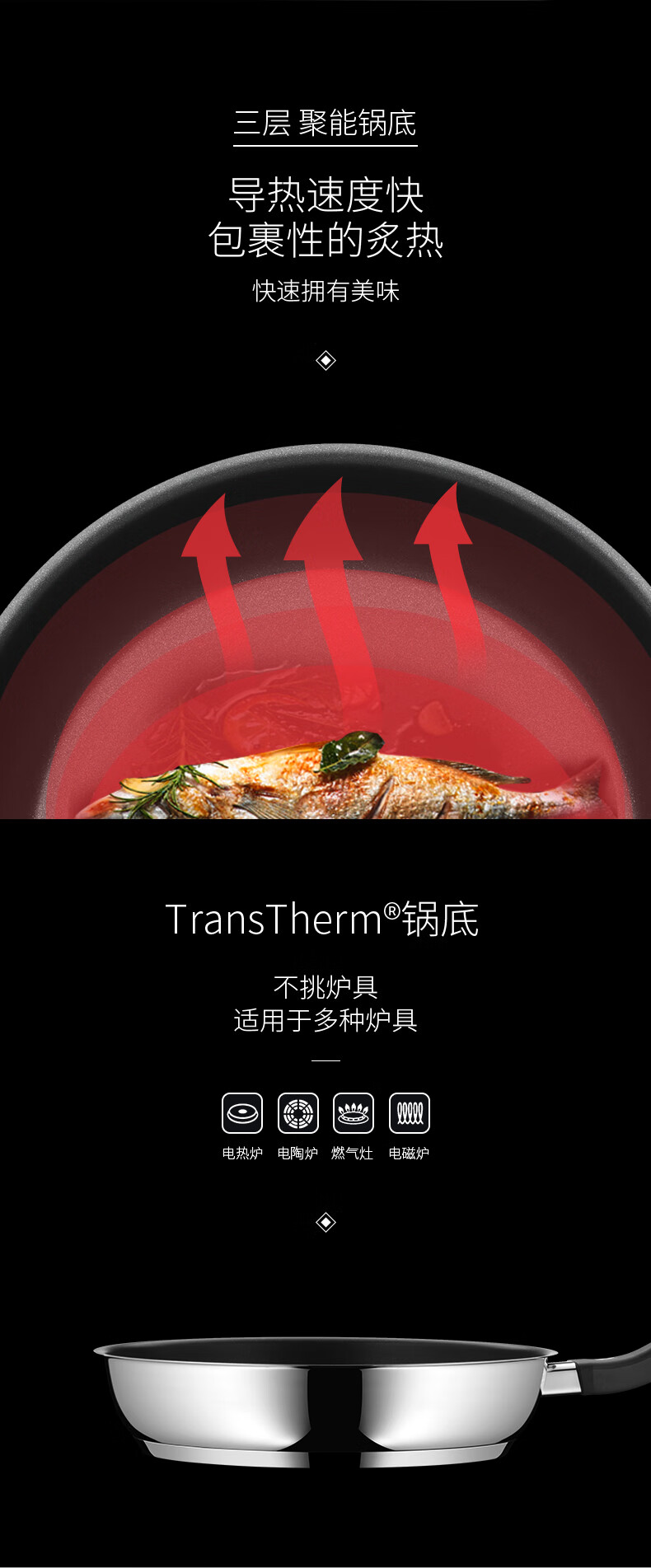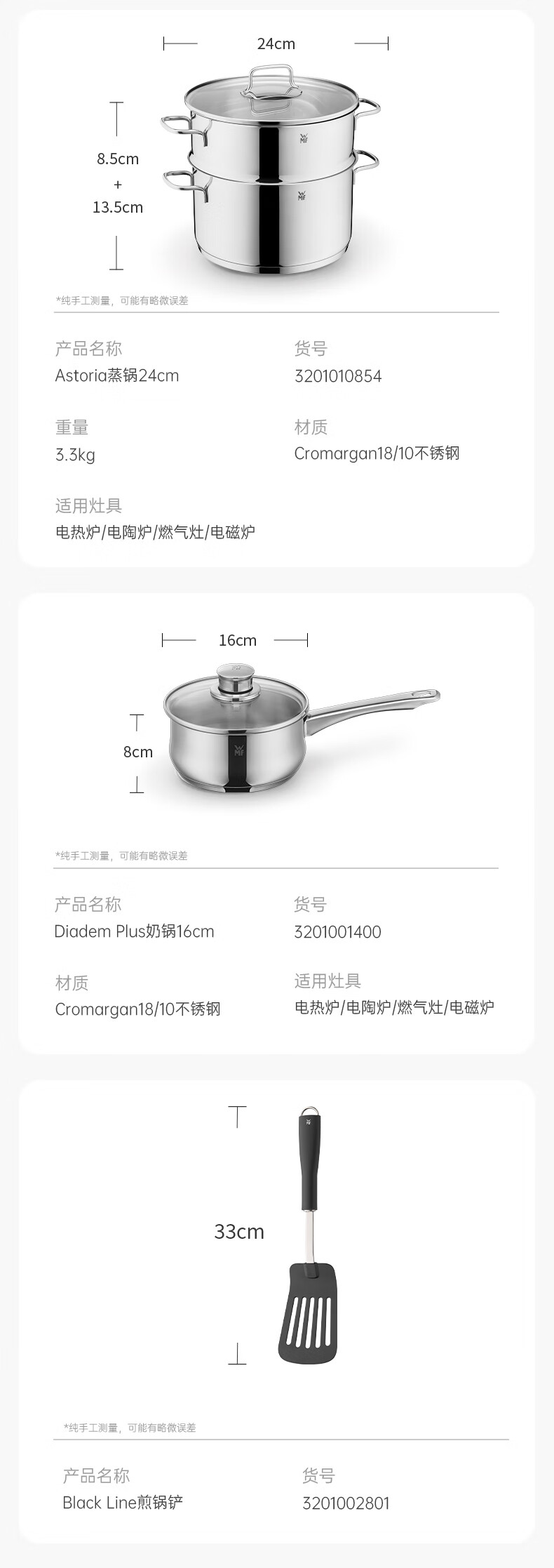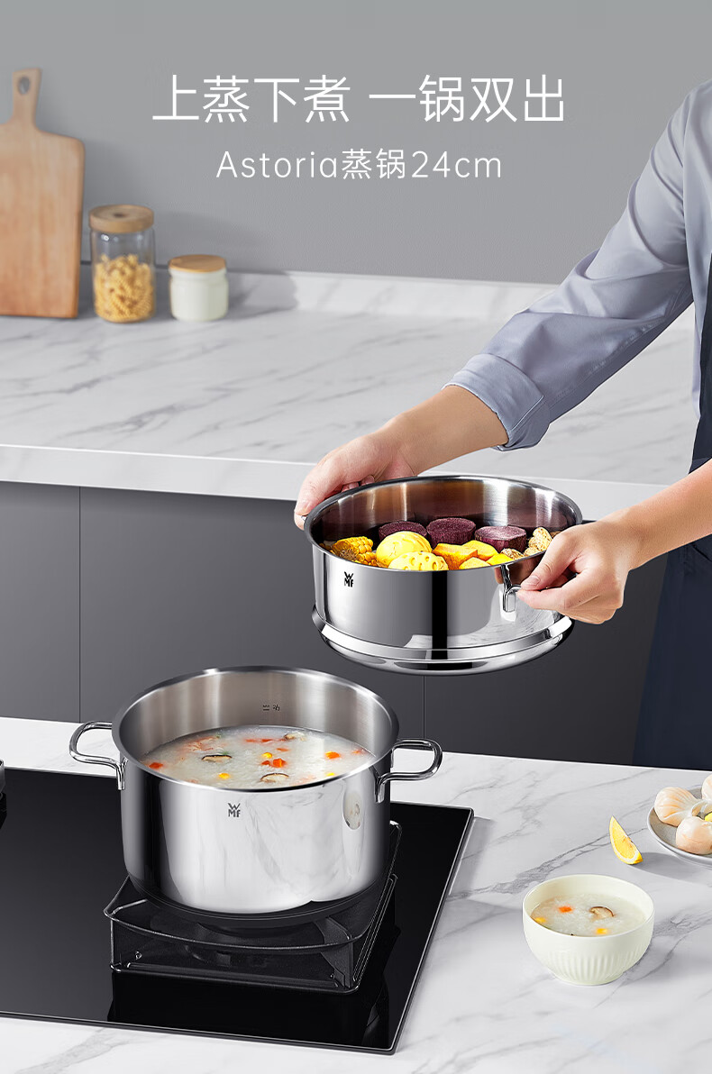 WMF Futengbao pot set combination stainless steel frying pan soup pot milk pot wok set induction cooker gas universal honeycomb combination set 5-piece set