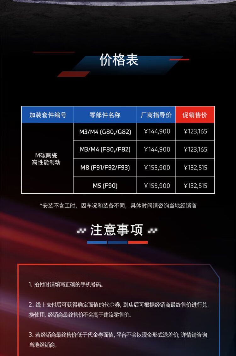 BMW official original M ceramic sports brake system high performance modified 4S store service voucher excluding labor time fee M3/M4 (F80/F82)
