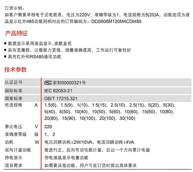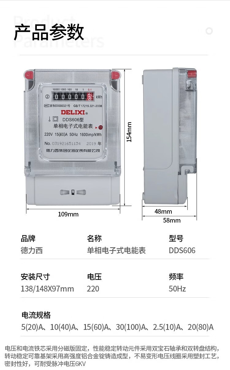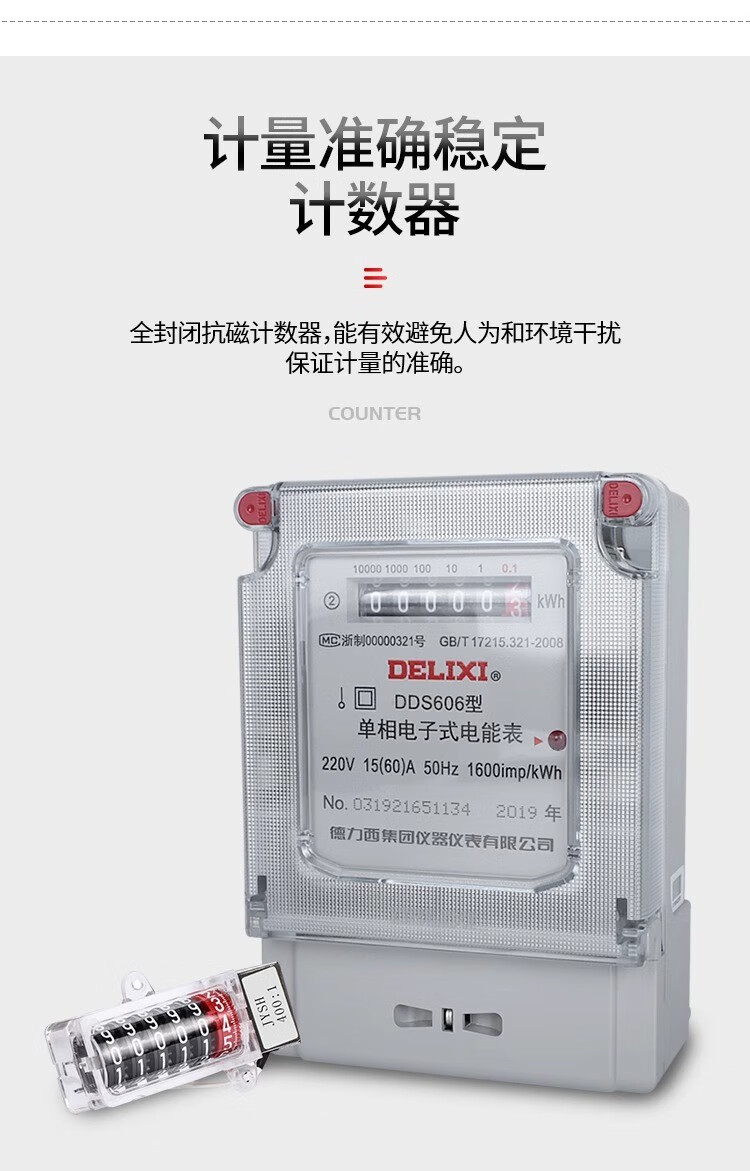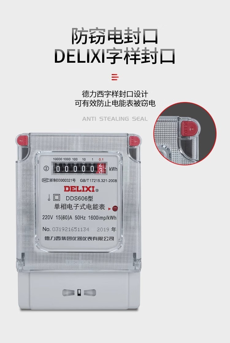 Delixi single-phase electricity meter DDS606 high-precision electronic energy meter household rental housing electricity meter fire meter 10*(40)A 8.8KW