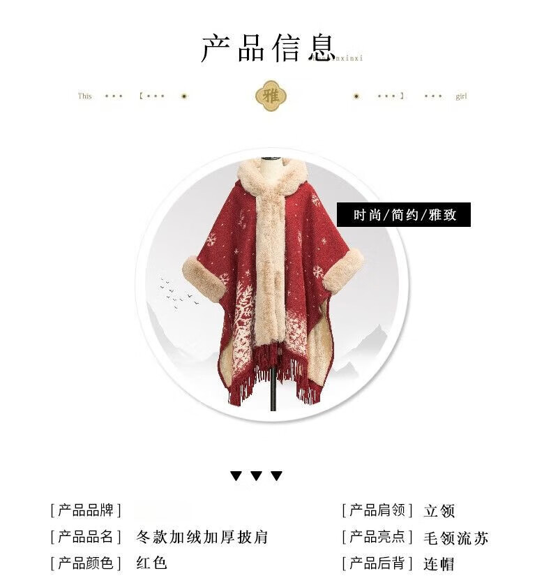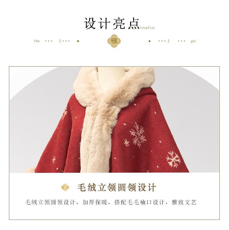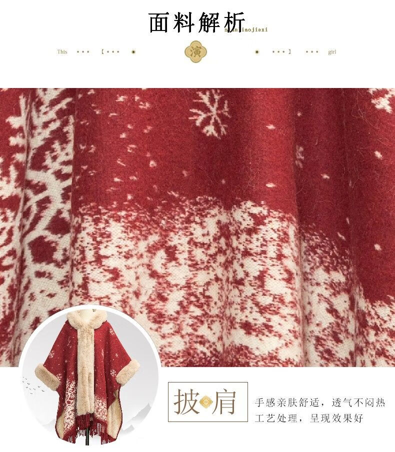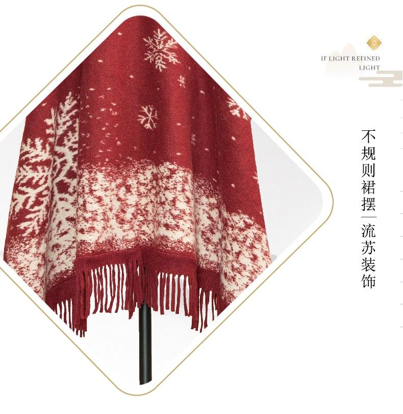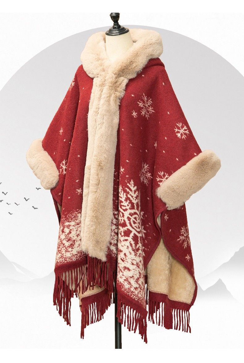LISCN Red Christmas Cape Shawl Coat Women's Autumn and Winter New New Year Mid-Length Velvet Thickened Coat Snowflake Shawl Thickened One Size 90 Jin About 170 Jin