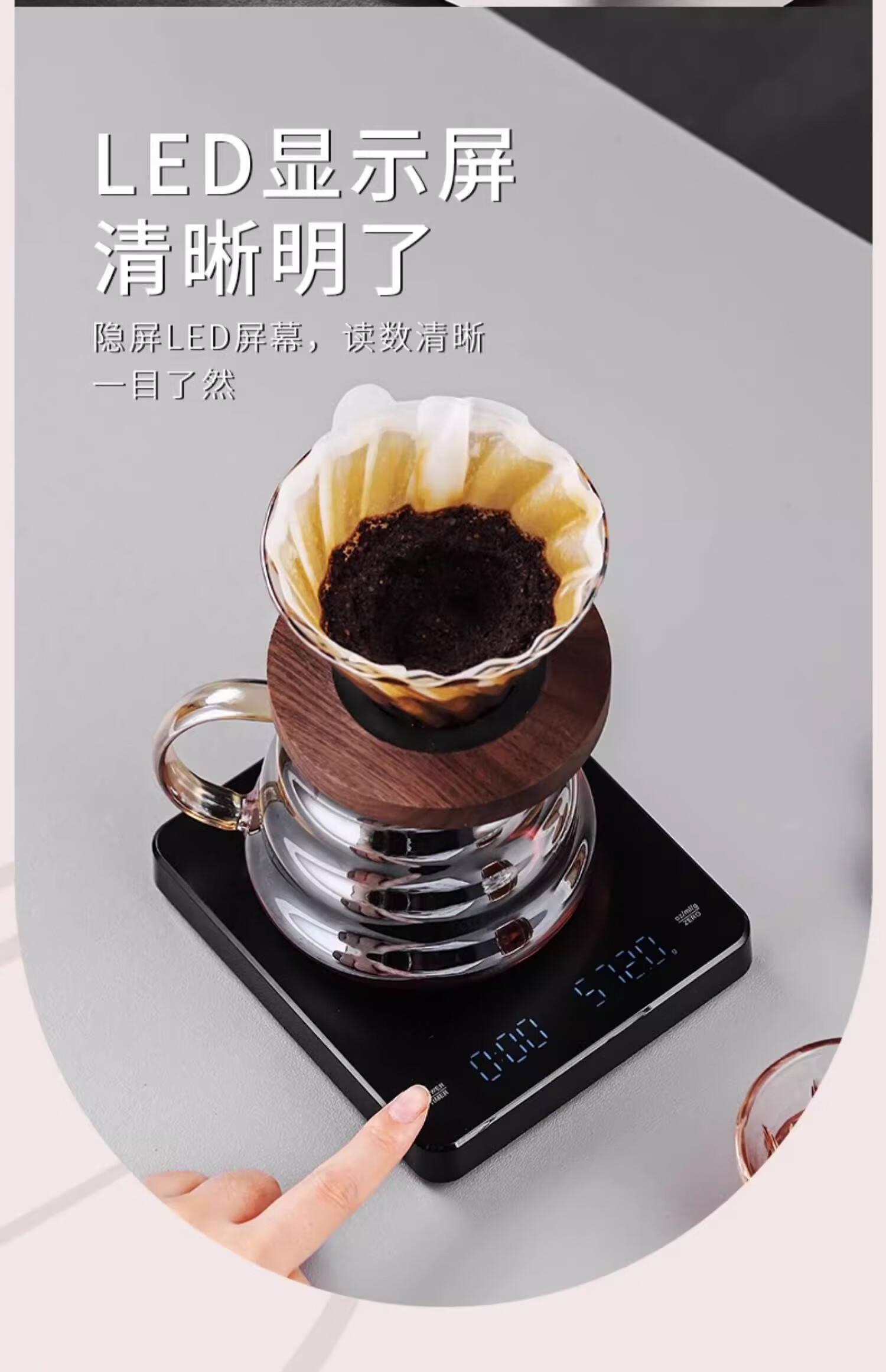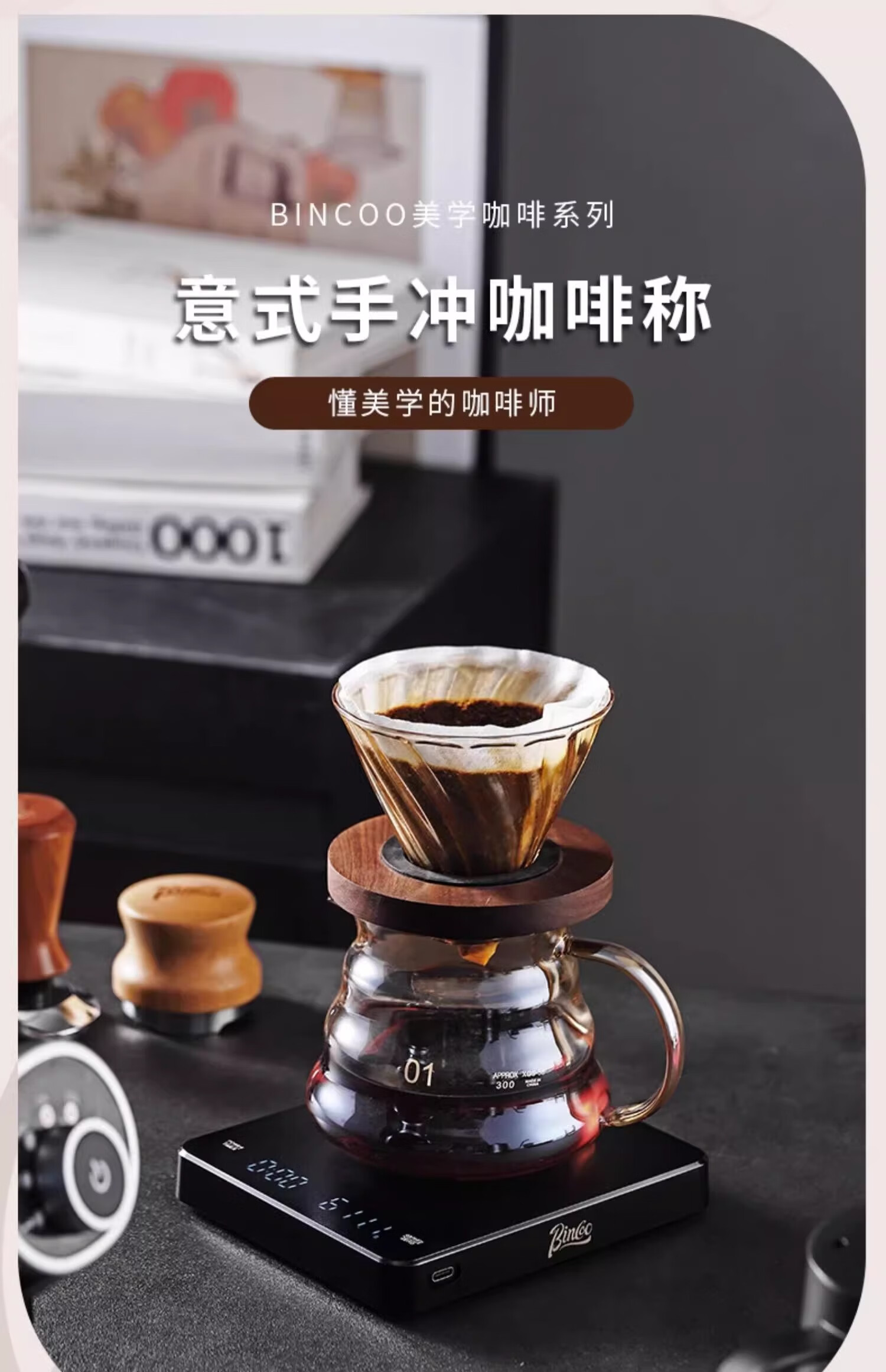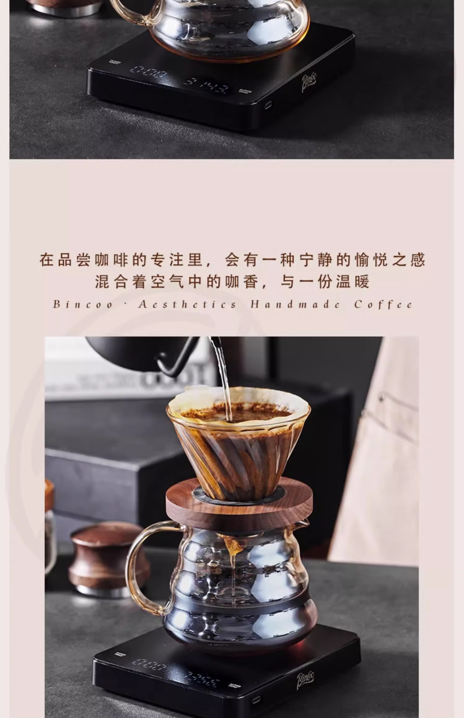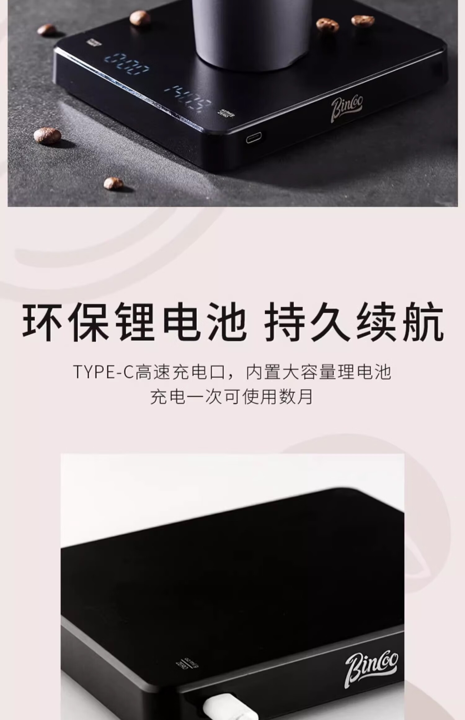 Bincoo coffee scale smart home kitchen scale Italian coffee bean electronic scale charging with timing scale small high-precision scale black-smart electronic scale 3kg 0.1g