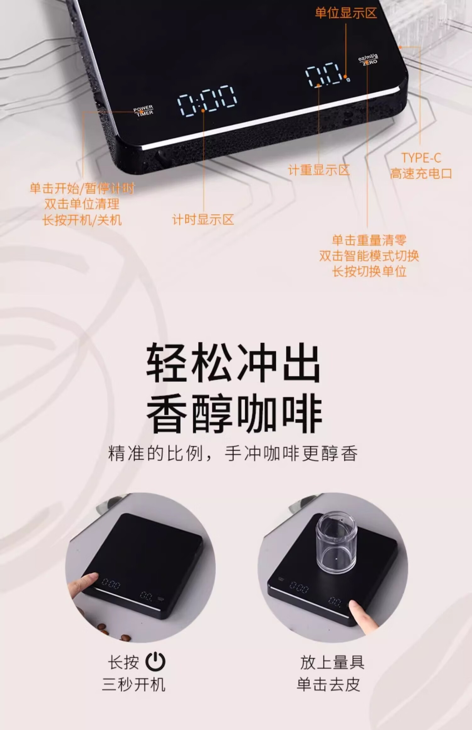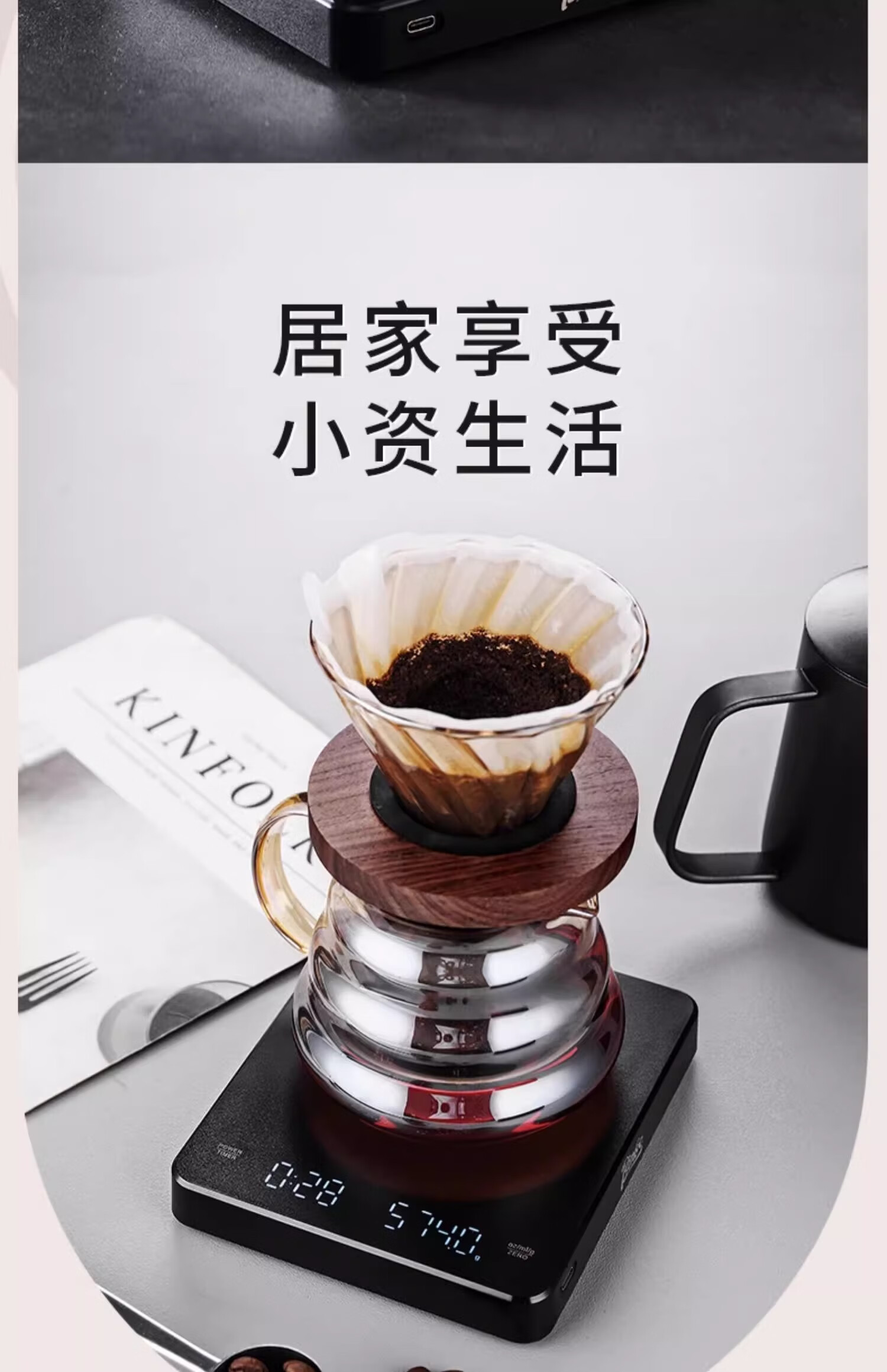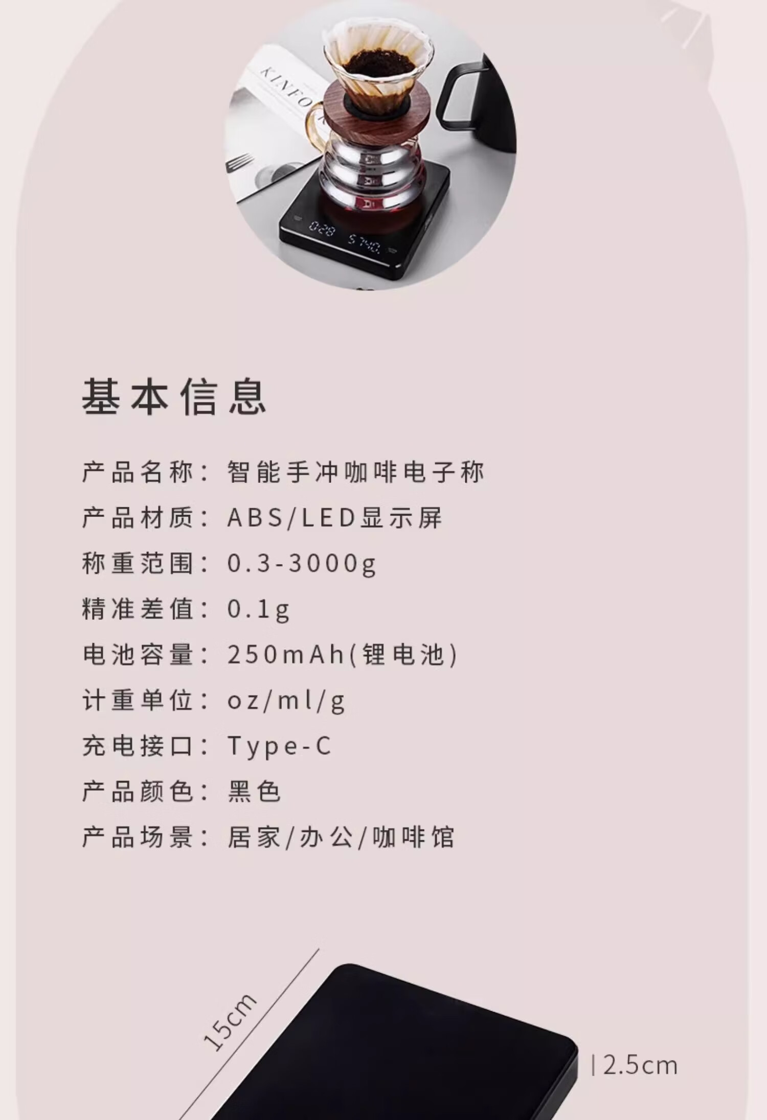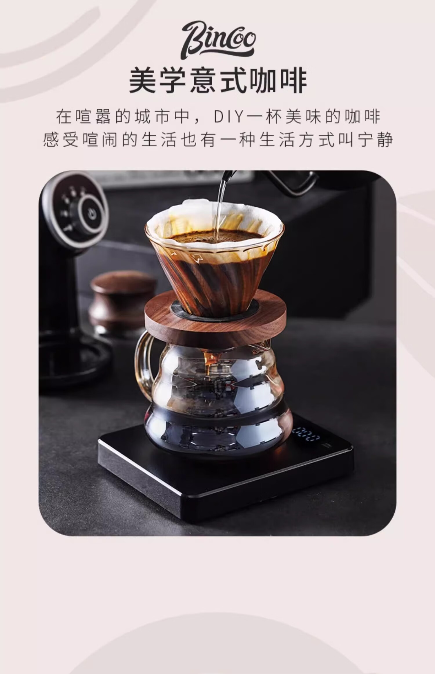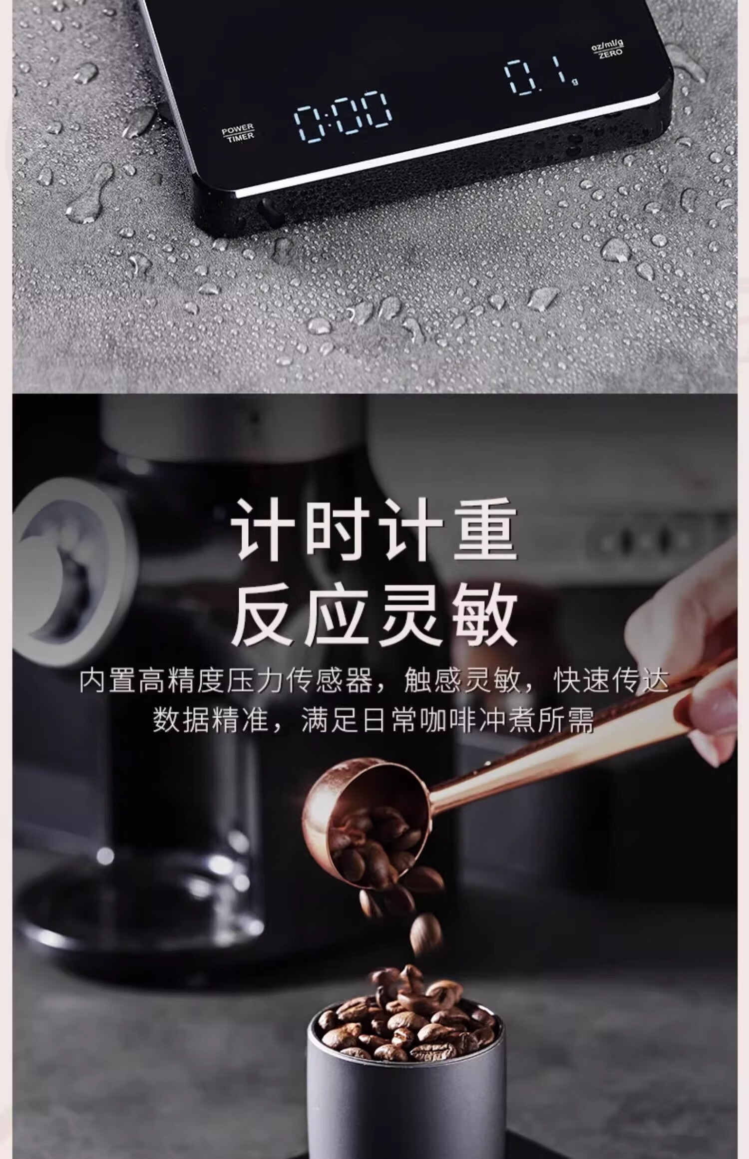 Bincoo coffee scale smart home kitchen scale Italian coffee bean electronic scale charging with timing scale small high-precision scale black-smart electronic scale 3kg 0.1g