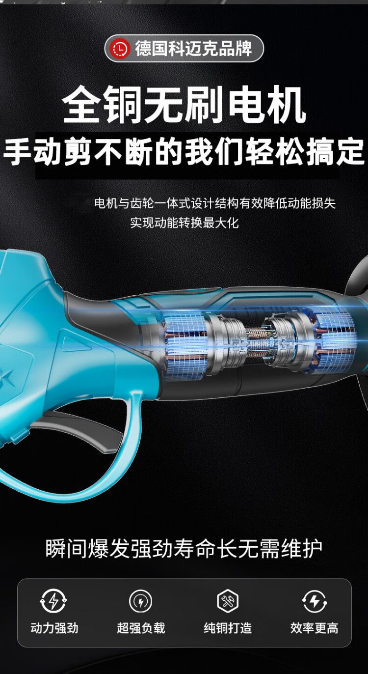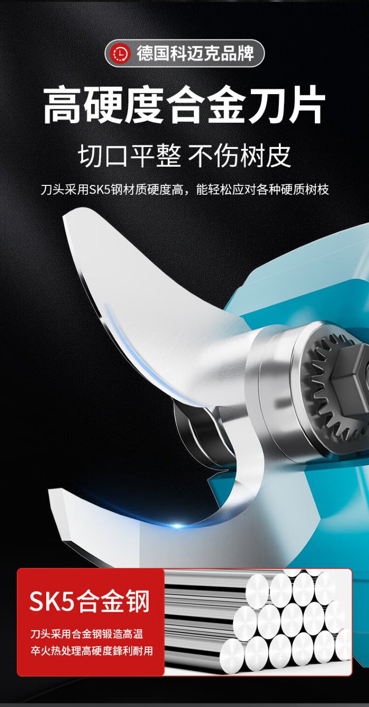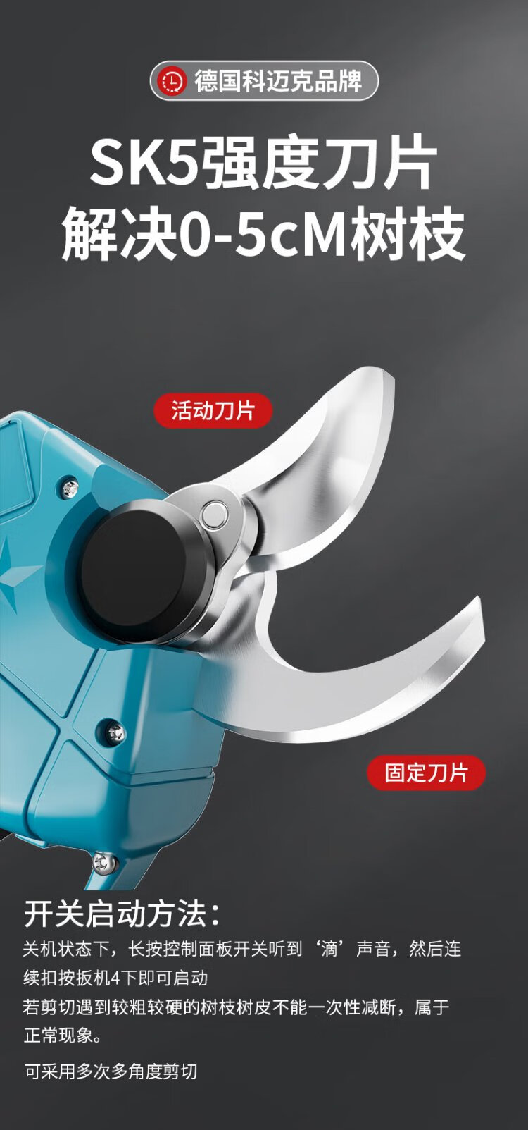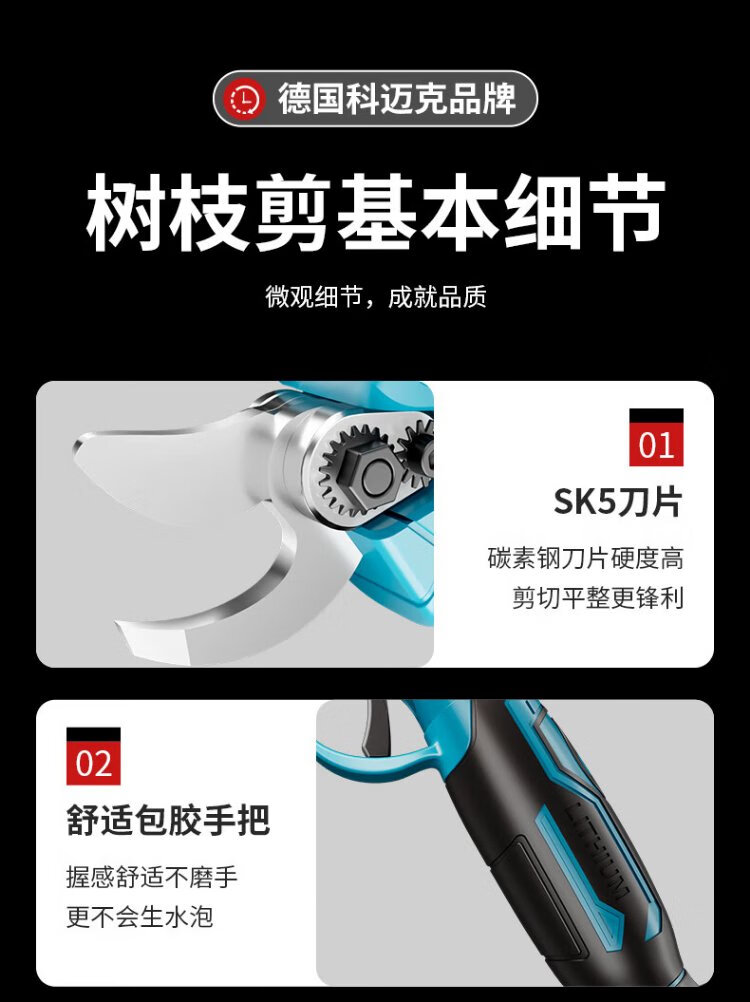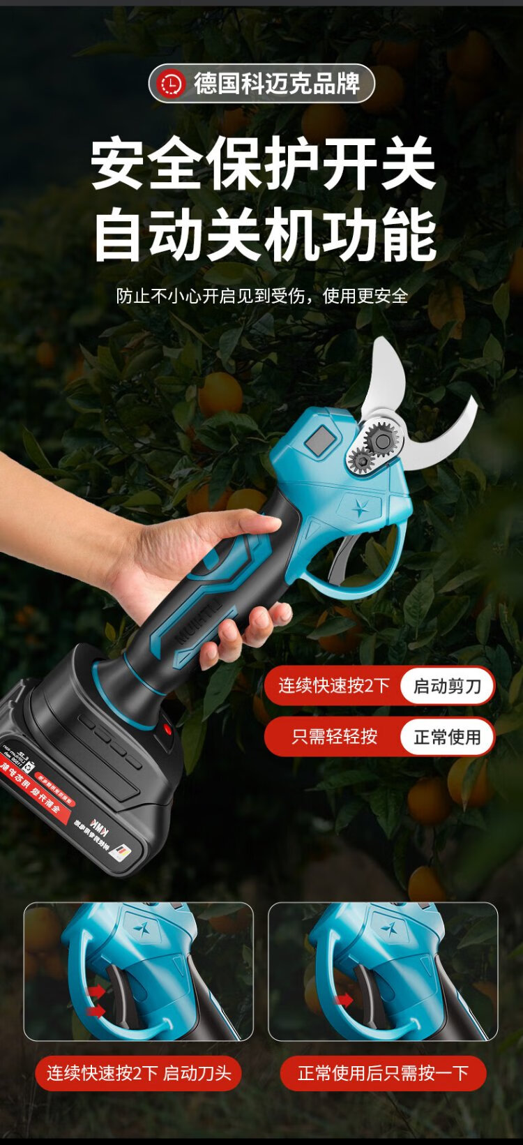 Komak electric pruning shears rechargeable garden fruit tree pruning shears to cut branches lithium-ion branch special shears and pruning artifact 988TV speed shear king model two batteries and two charges
