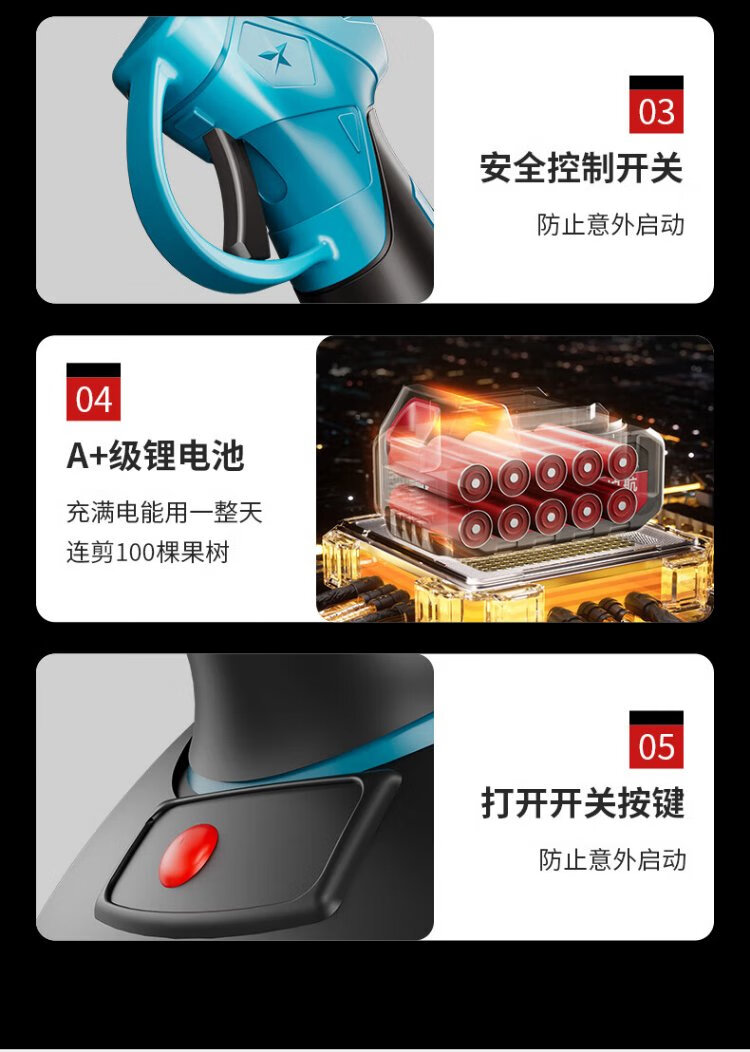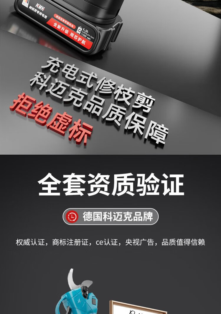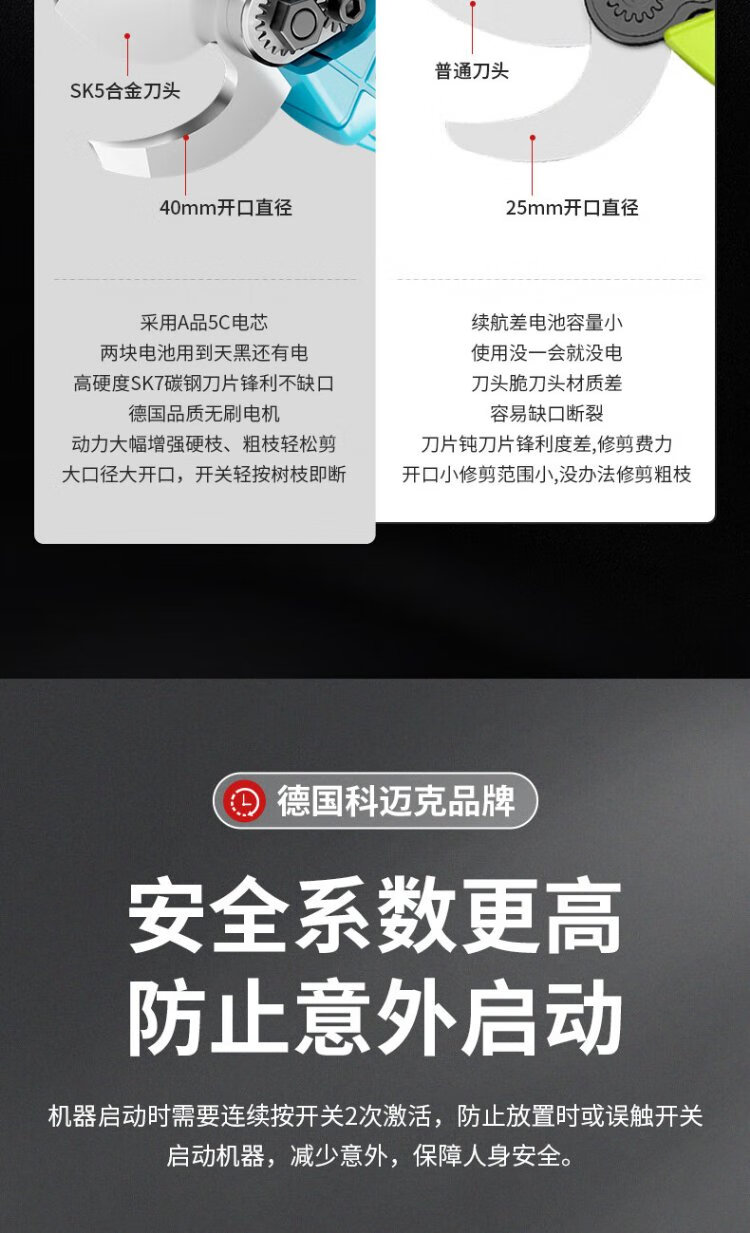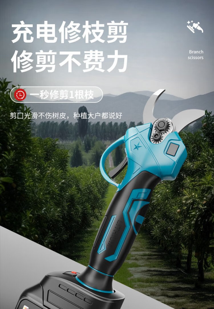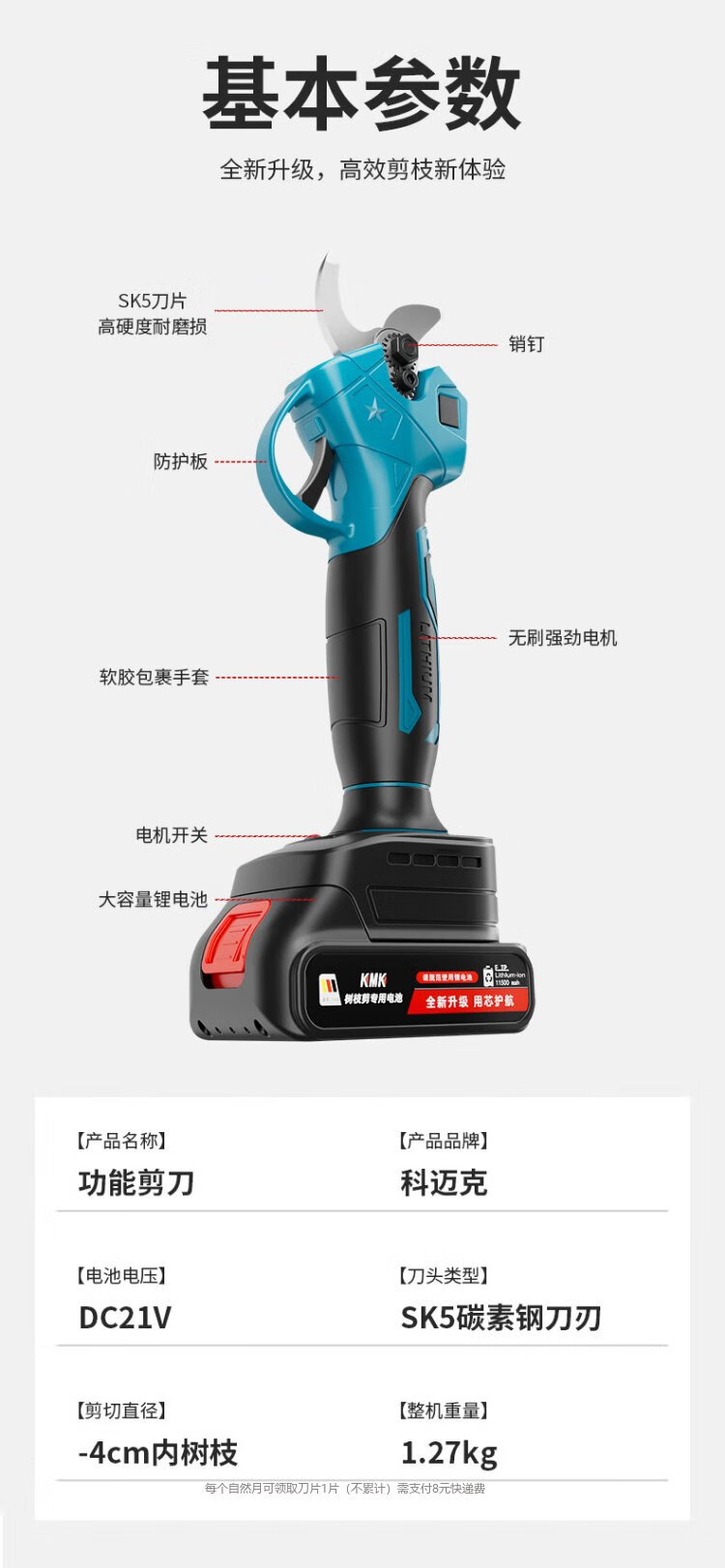 Komak electric pruning shears rechargeable garden fruit tree pruning shears to cut branches lithium-ion branch special shears and pruning artifact 988TV speed shear king model two batteries and two charges