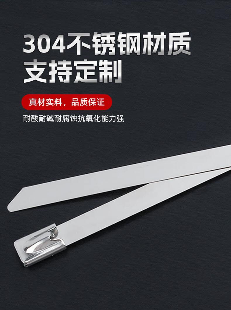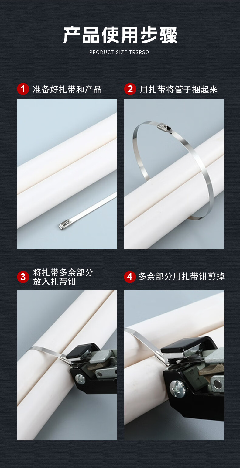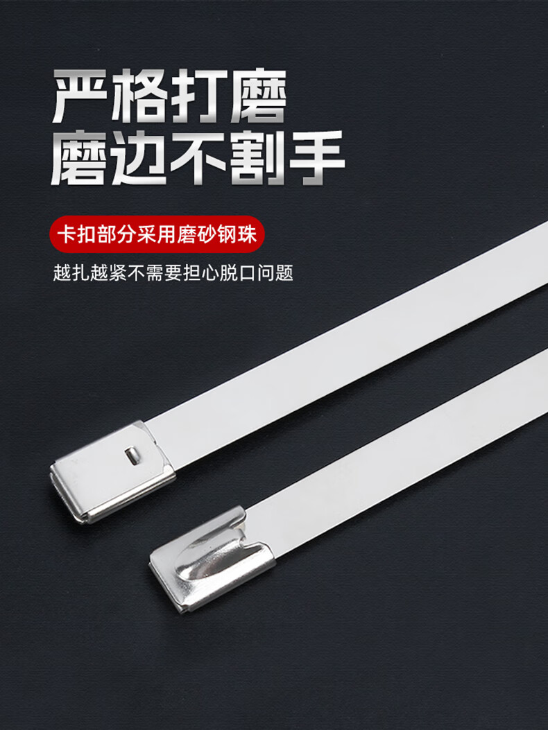 Guwanji 304 stainless steel cable tie self-locking 4.6MM wire bridge metal strap outdoor anti-oxidation marine cable tie 4.6x300mm (20 pieces)