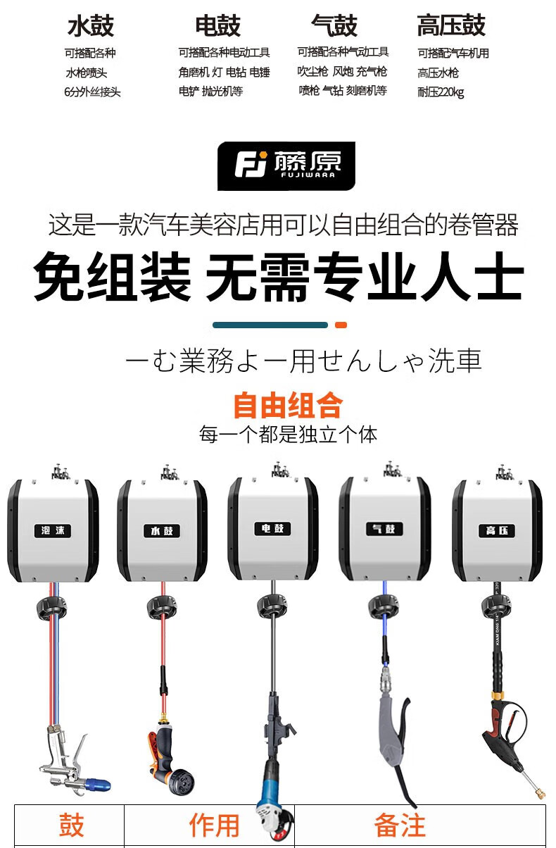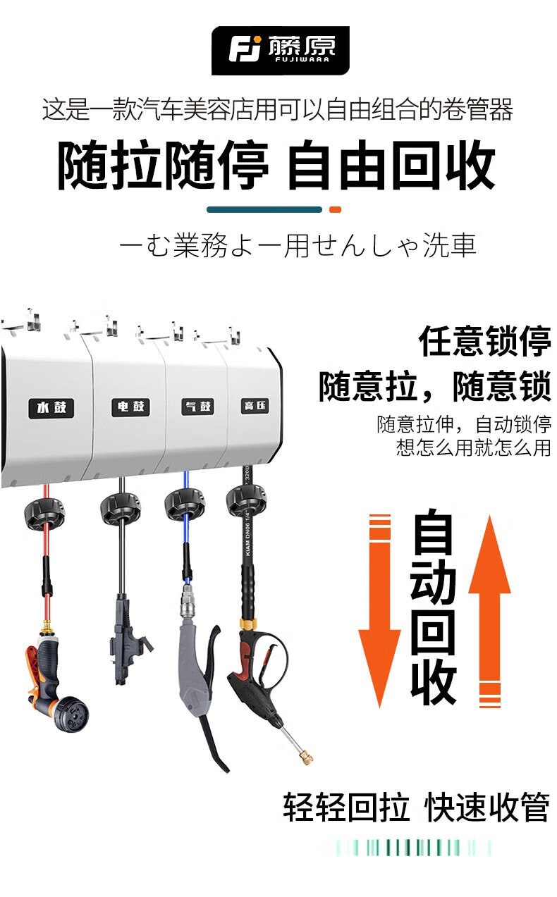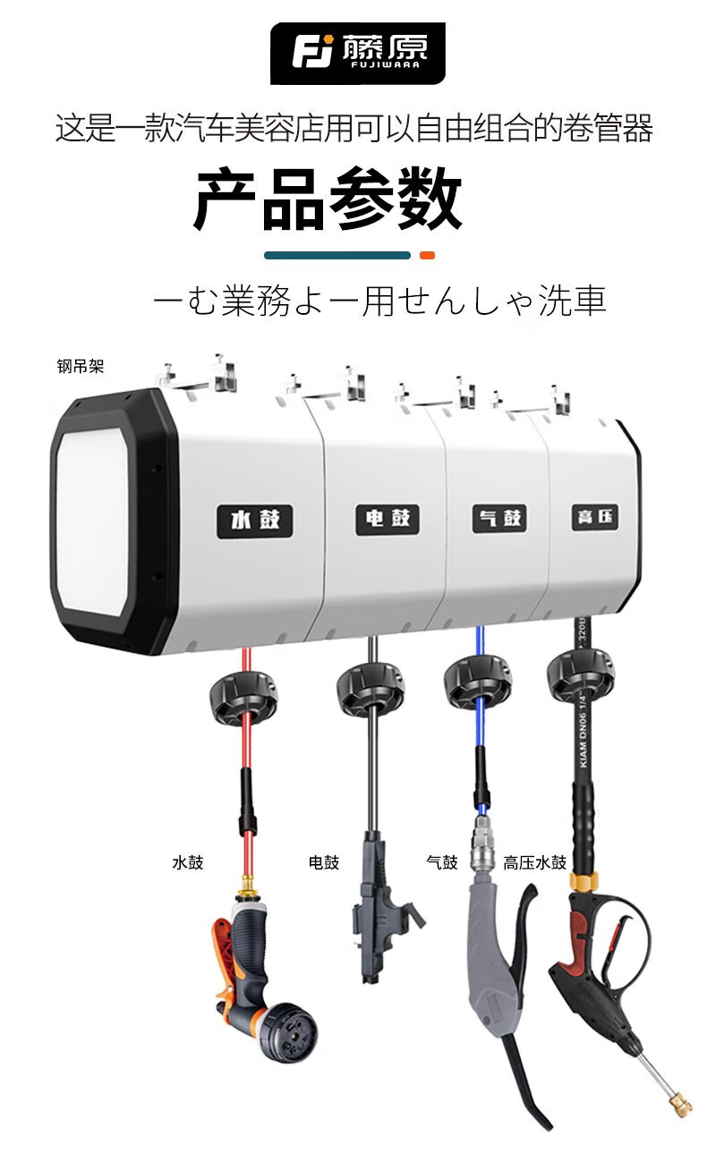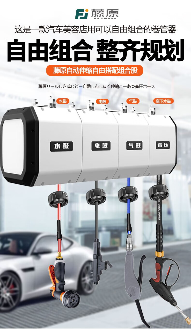 Fujiwara car wash combination air drum high-pressure water and electric drum car wash shop car beauty foam equipment automatic telescopic hose reel three-in-one combination drum (water, gas and electricity combination)