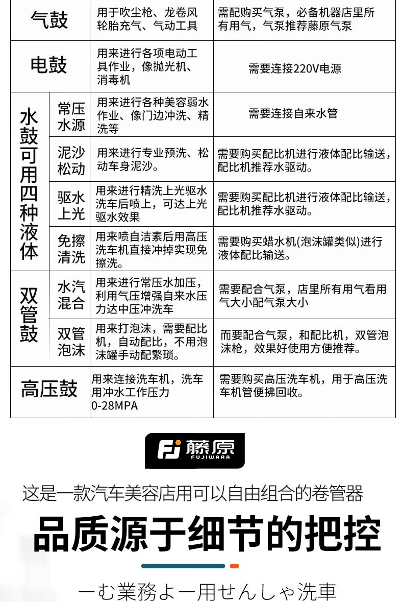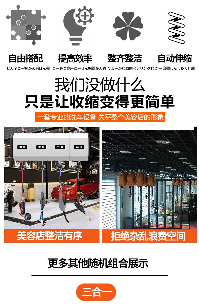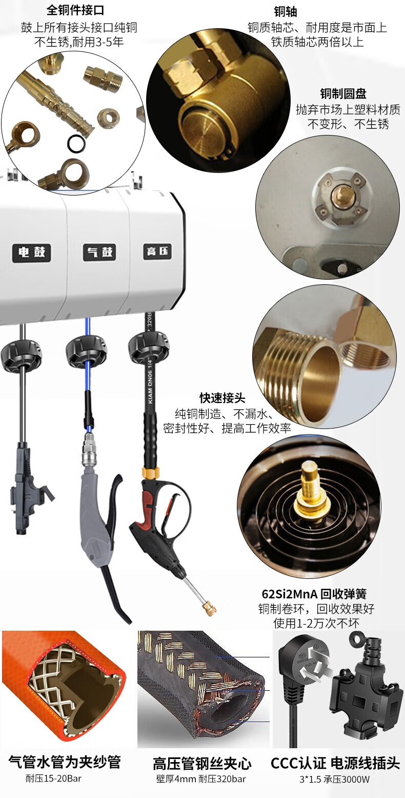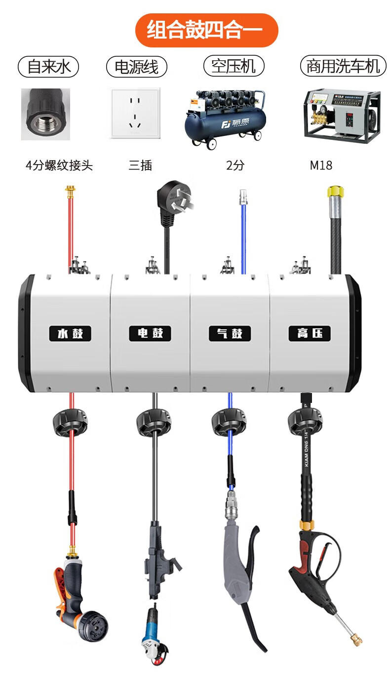 Fujiwara car wash combination air drum high-pressure water and electric drum car wash shop car beauty foam equipment automatic telescopic hose reel three-in-one combination drum (water, gas and electricity combination)