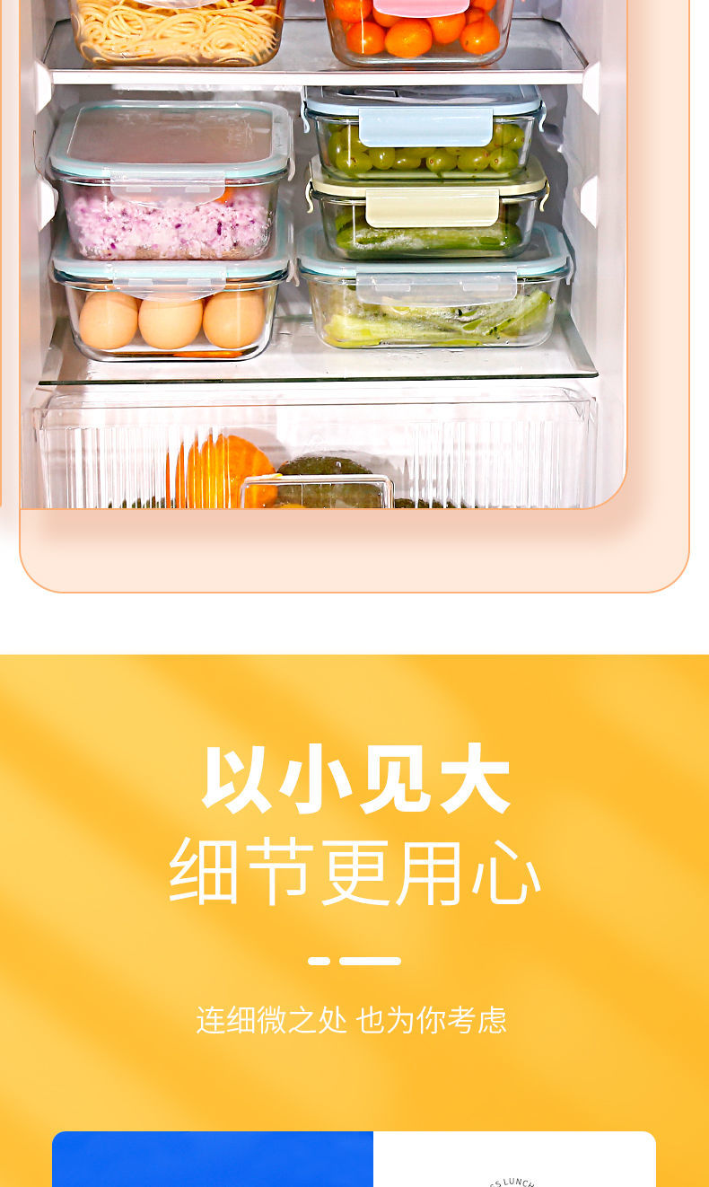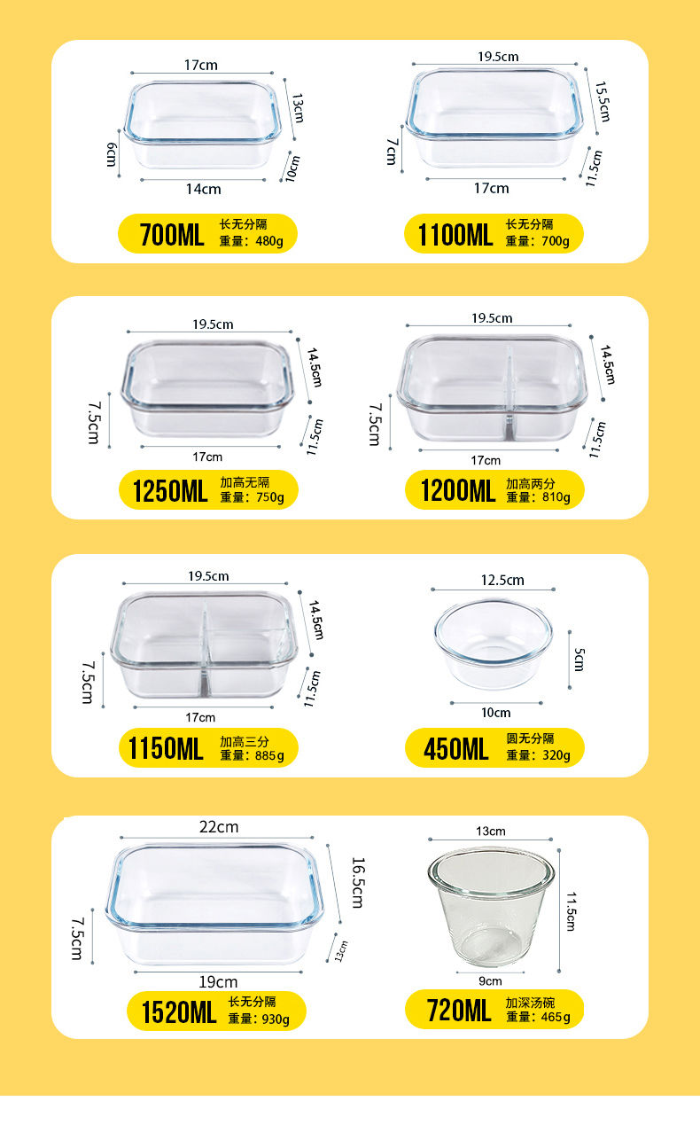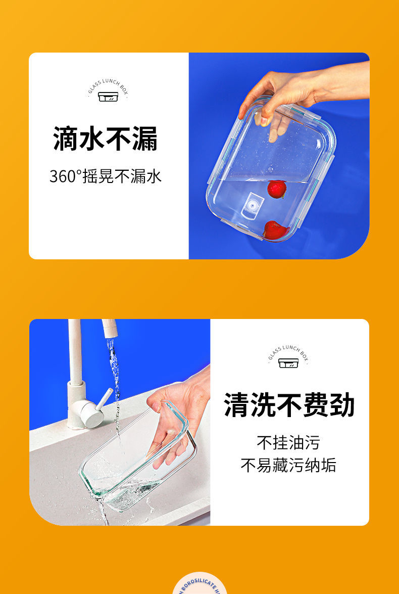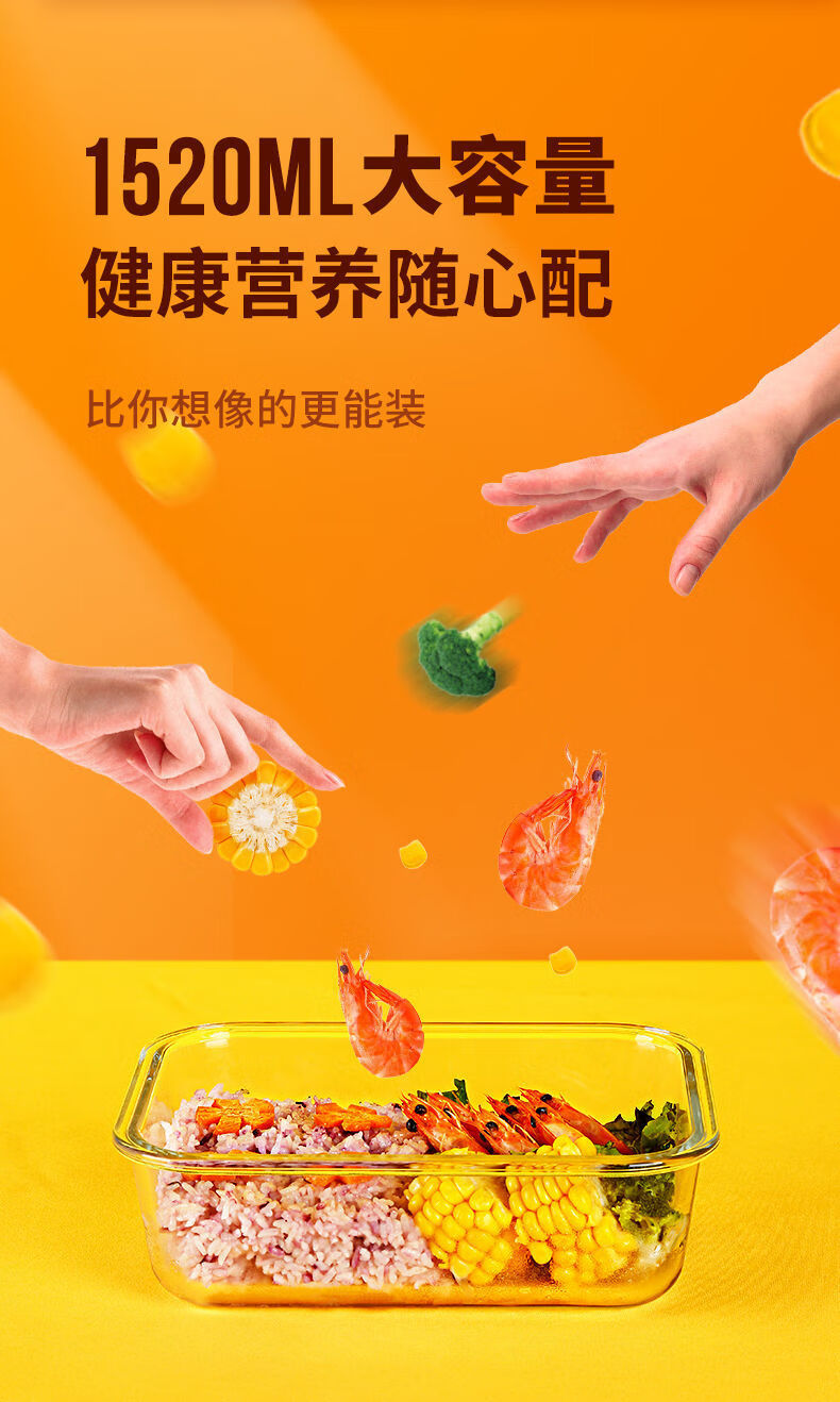 Baichunbao ultra-large capacity glass lunch box for office workers with meals that can be heated in the microwave, special lunch box with separate lunch boxes, transparent two-partition 1520 ml