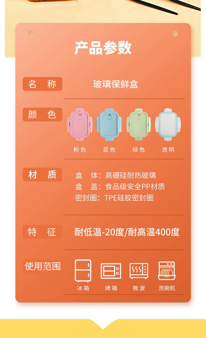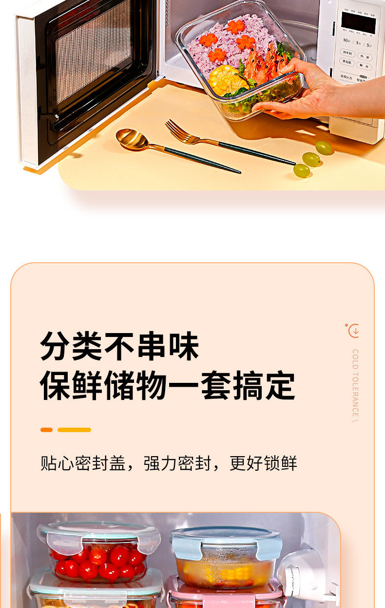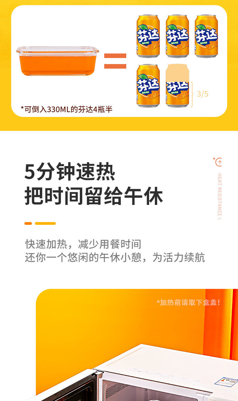 Baichunbao ultra-large capacity glass lunch box for office workers with meals that can be heated in the microwave, special lunch box with separate lunch boxes, transparent two-partition 1520 ml