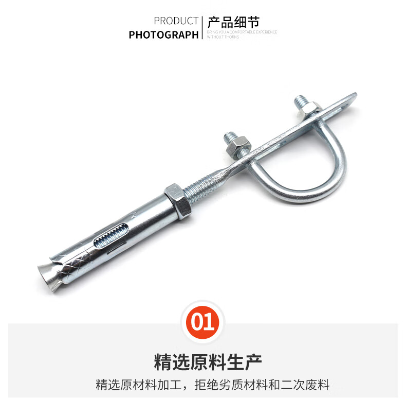 XMSJ expansion support rod U-shaped hoop pipe clamp fixed pipe clamp natural gas pipeline water pipe fixed bracket fishtail card U-shaped card expansion 8*150 card 4 points (punch 12)
