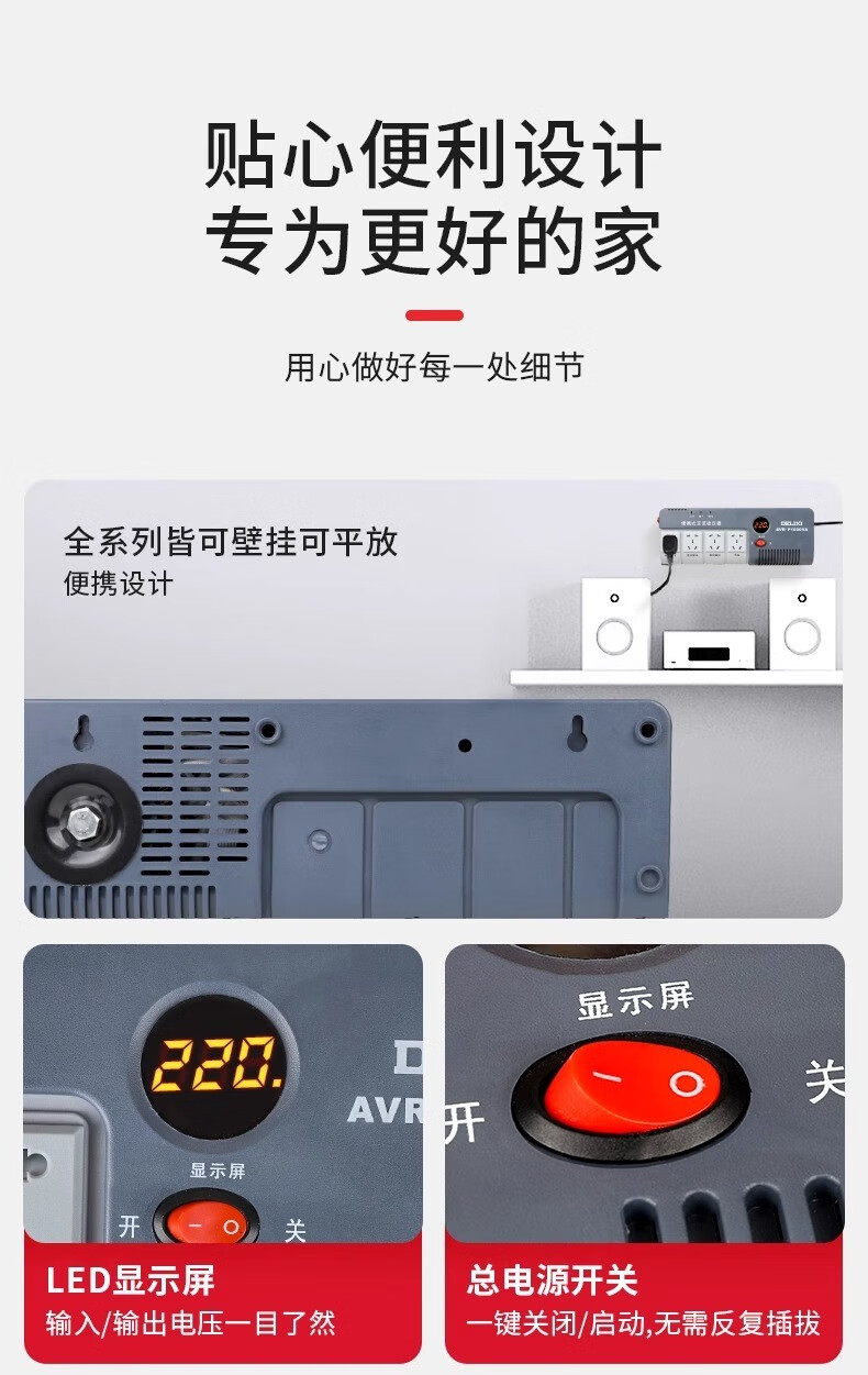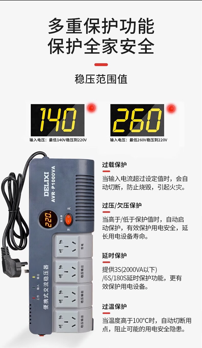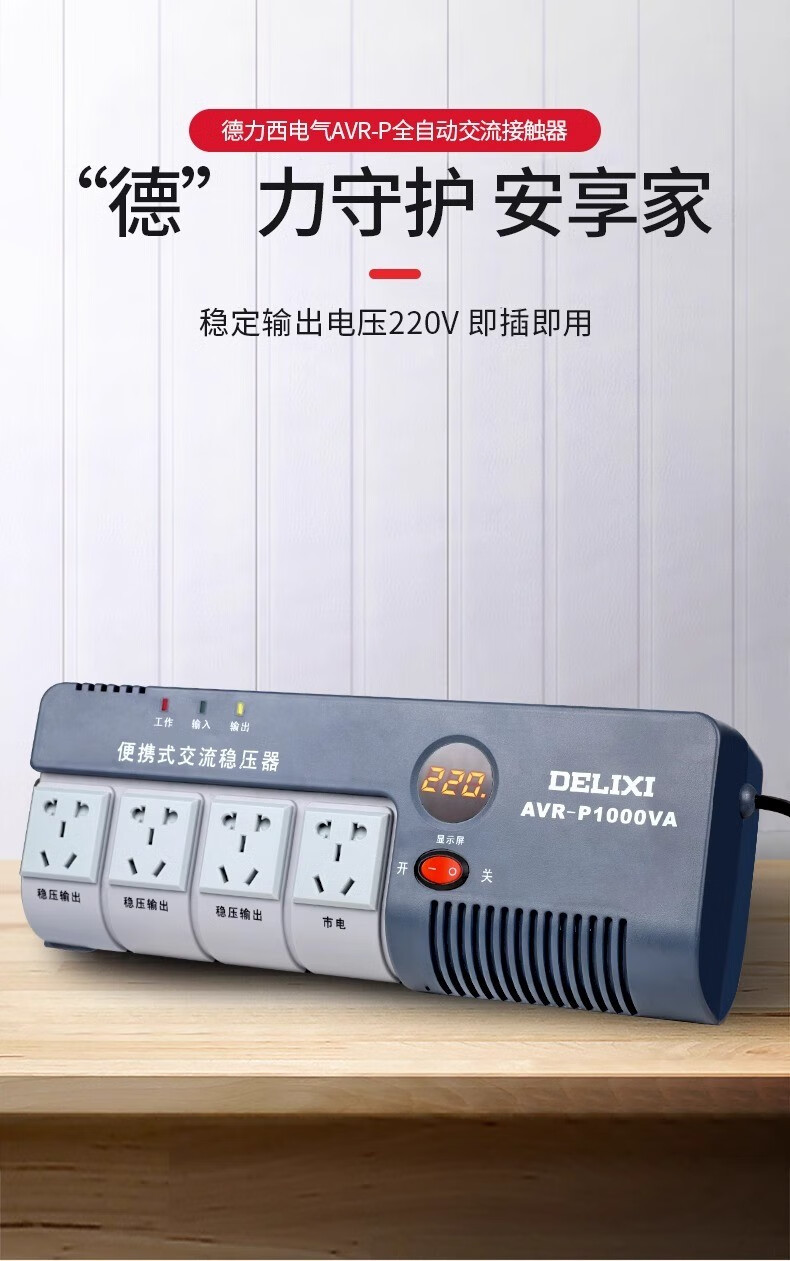 Delixi voltage regulator computer refrigerator small socket type fully automatic portable wall-mountable single-phase AVR-P1000VA