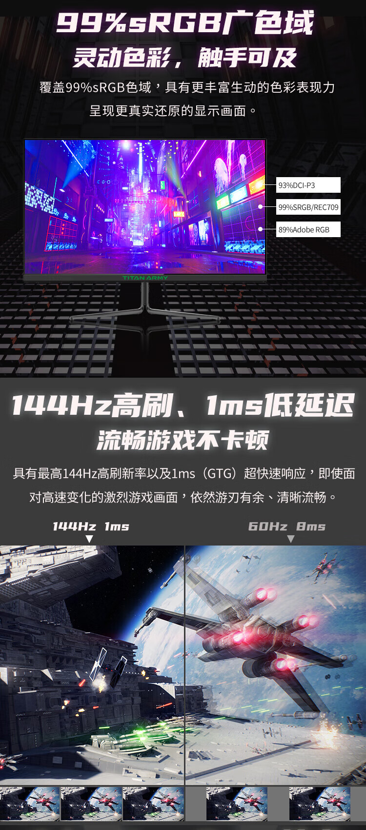 Titan Legion 24.5-inch 144Hz e-sports game monitor IPS desktop screen P25A2G external N27SQPLUS27-inch/2K/144Hz/ official standard