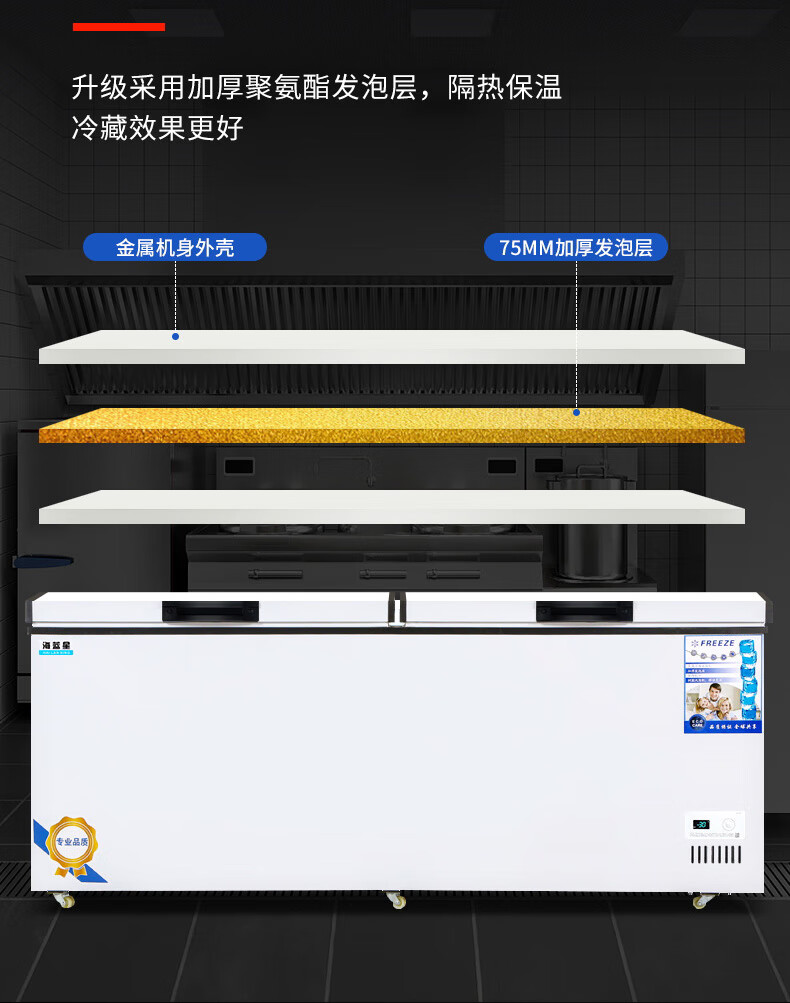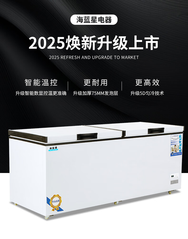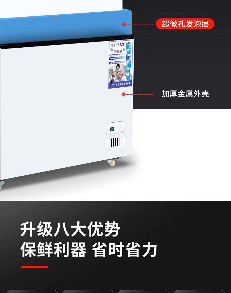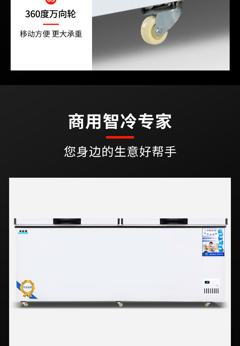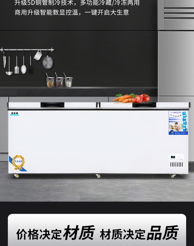 Aquamarine Freezer Commercial Large Capacity Refrigerated Freezer Horizontal Freezer Full Freezer Single and Double Temperature Household Display Cabinet Commercial Large Freezer Energy Saving Fresh Cabinet 1888 Single Temperature Copper Tube Upgrade (2.2 Meters Long) Energy Saving 60%