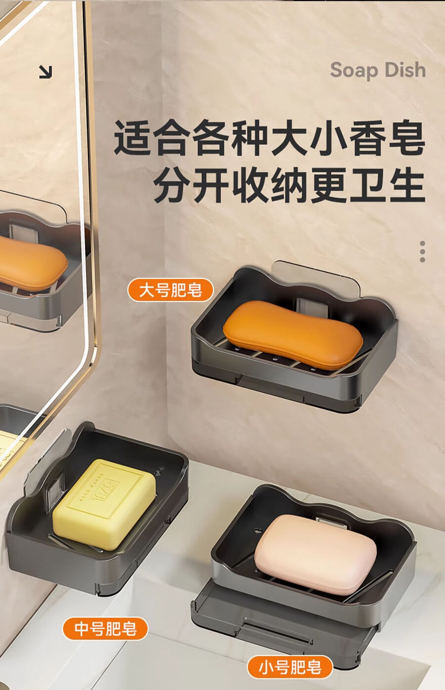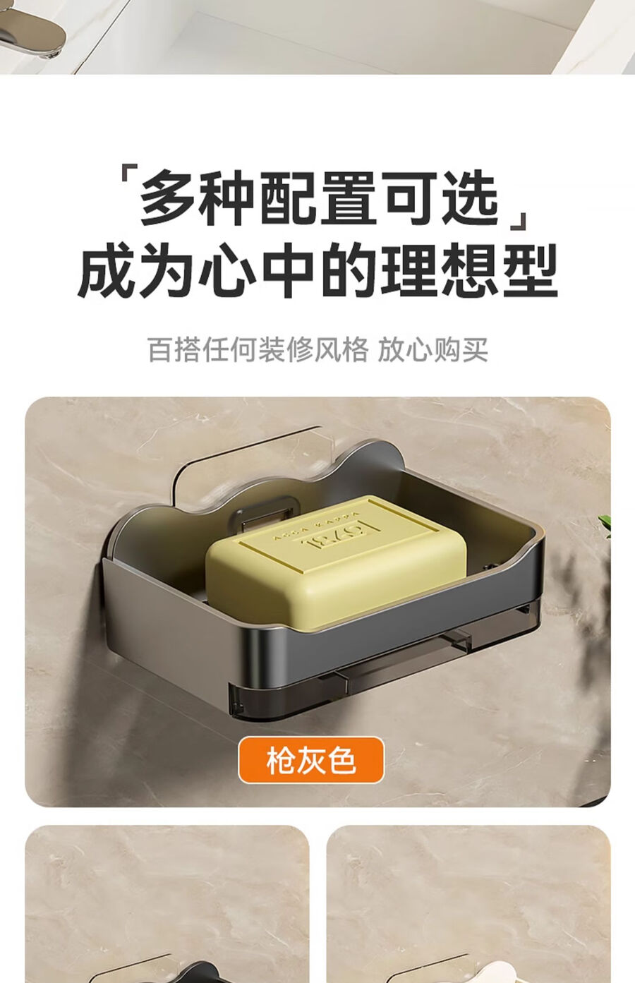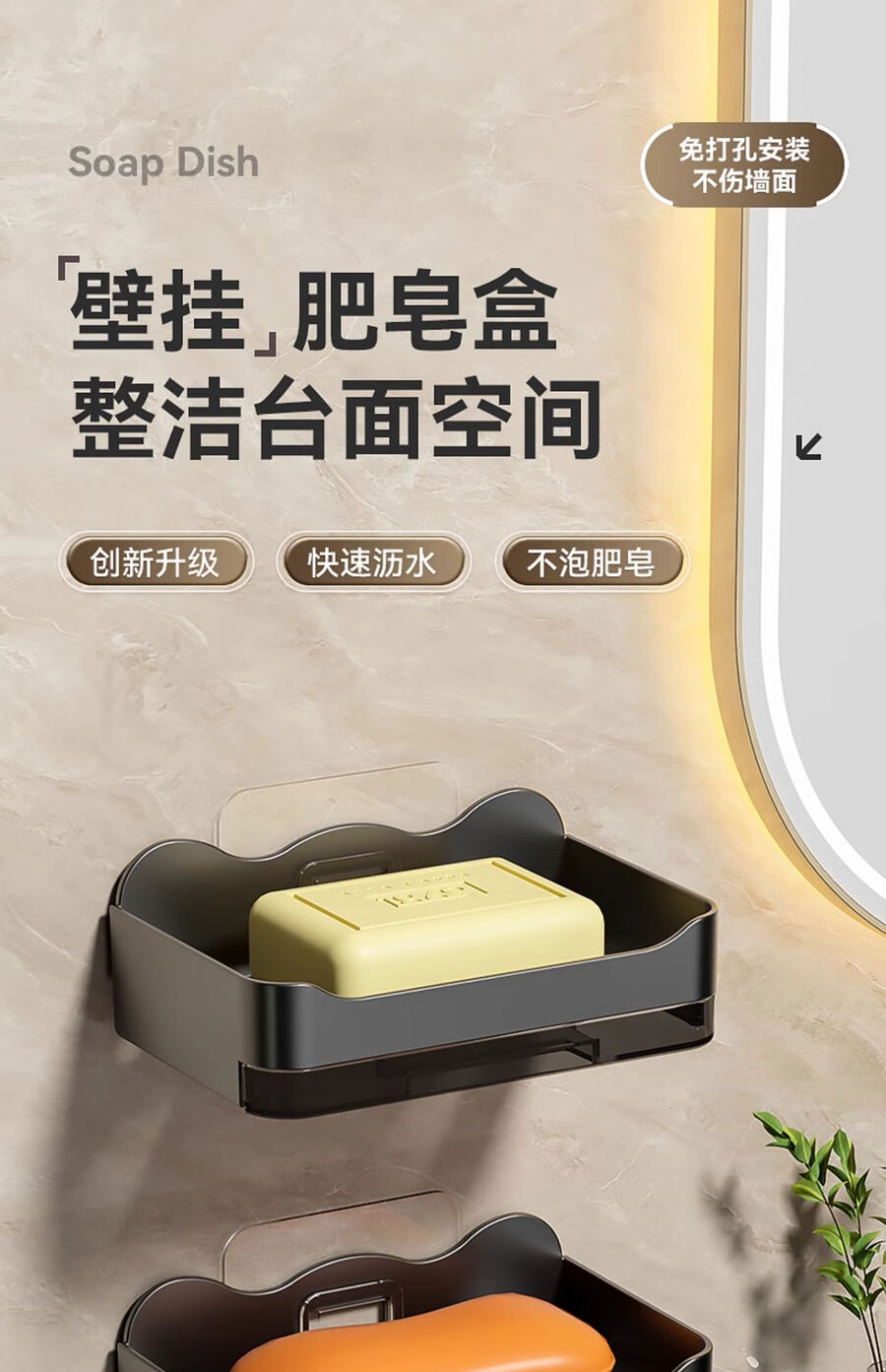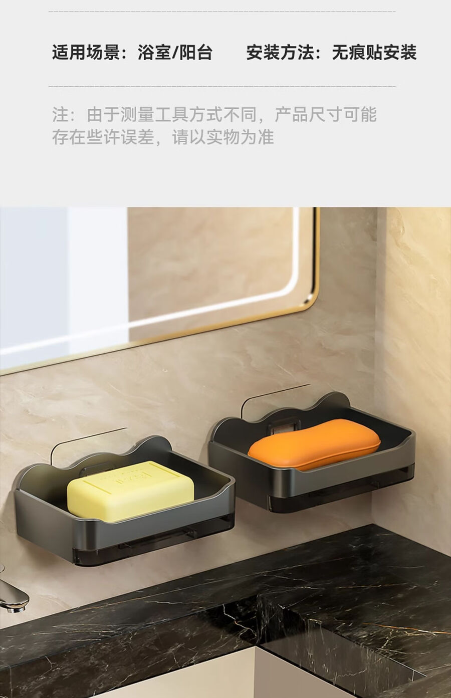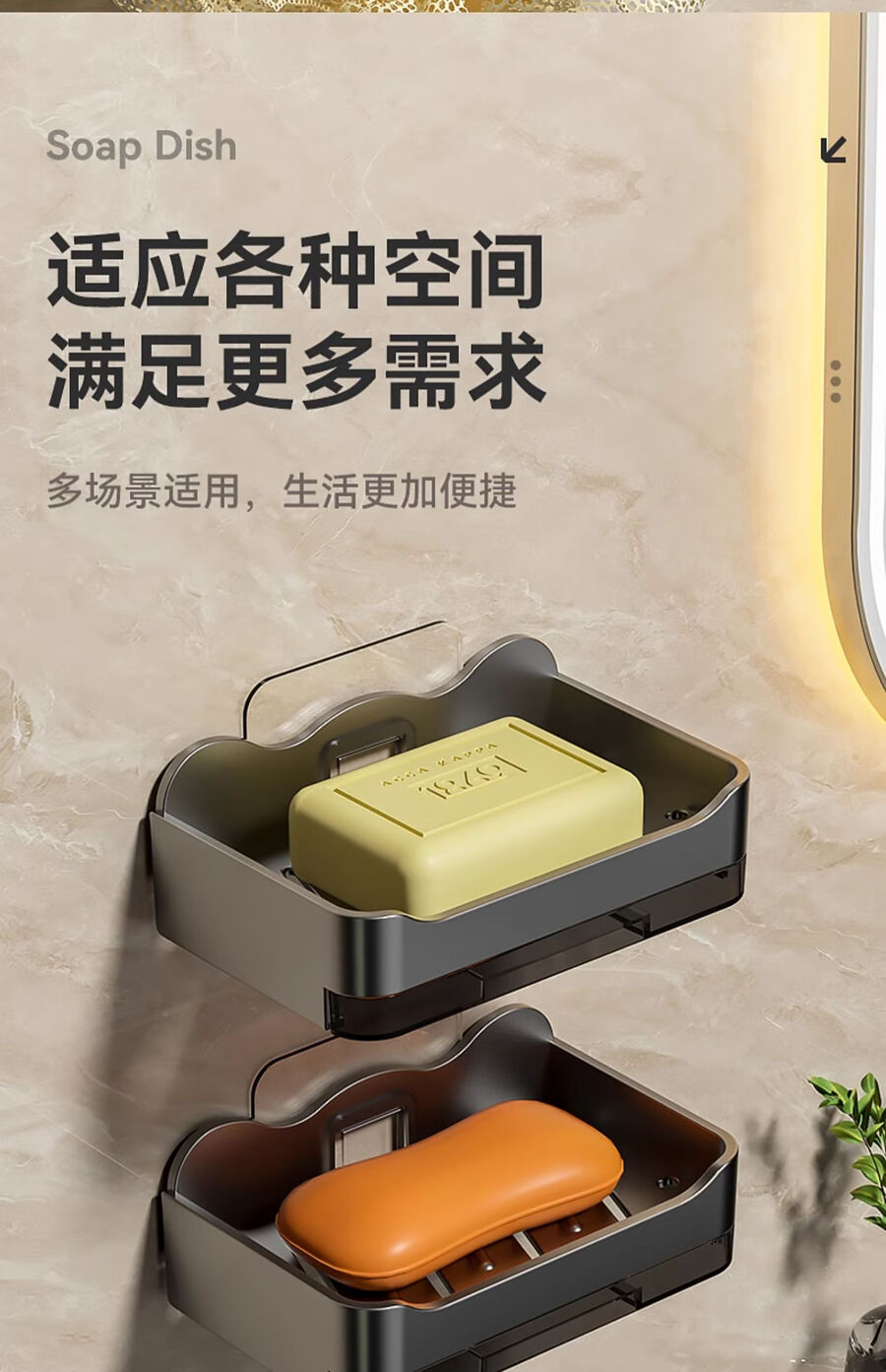 Gu Ruiniao punch-free soap dish wall-mounted bathroom double-layer soap drain box home bathroom wall soap shelf gray 2 pieces (with drain tray) no specifications