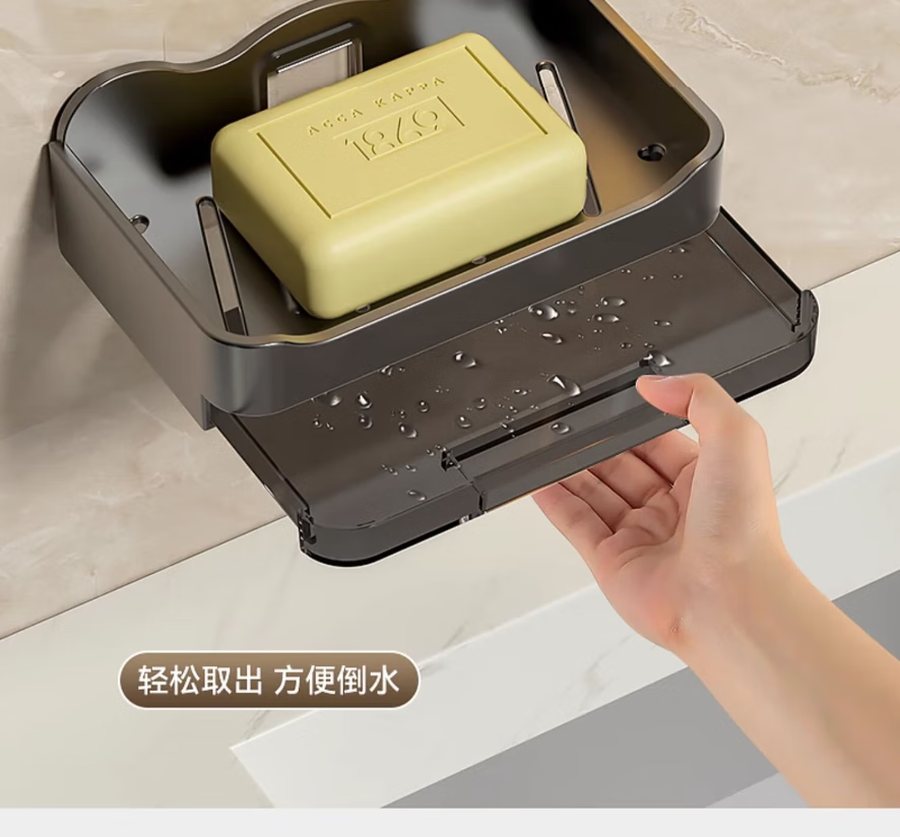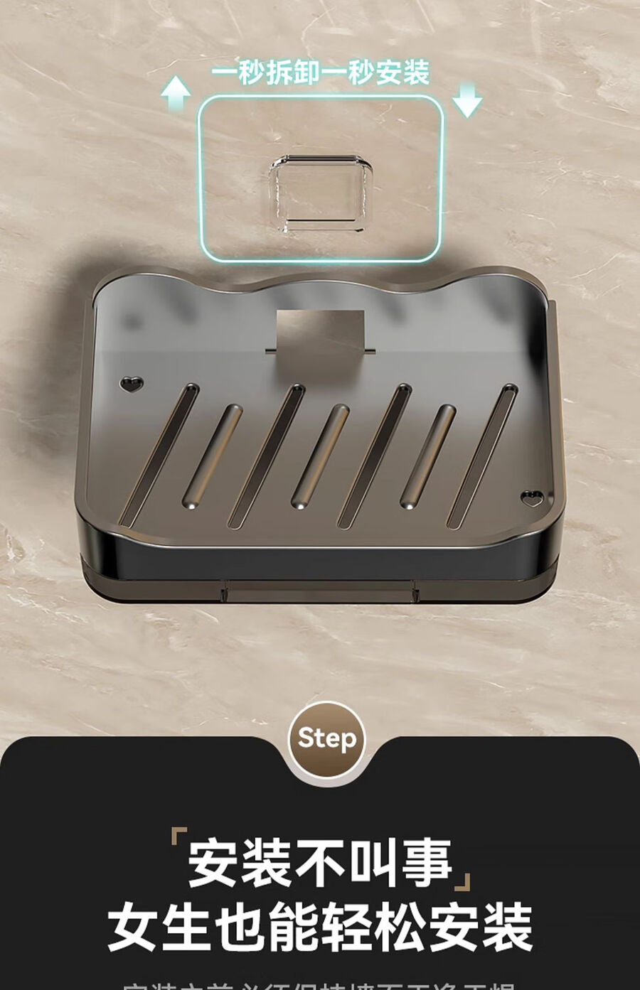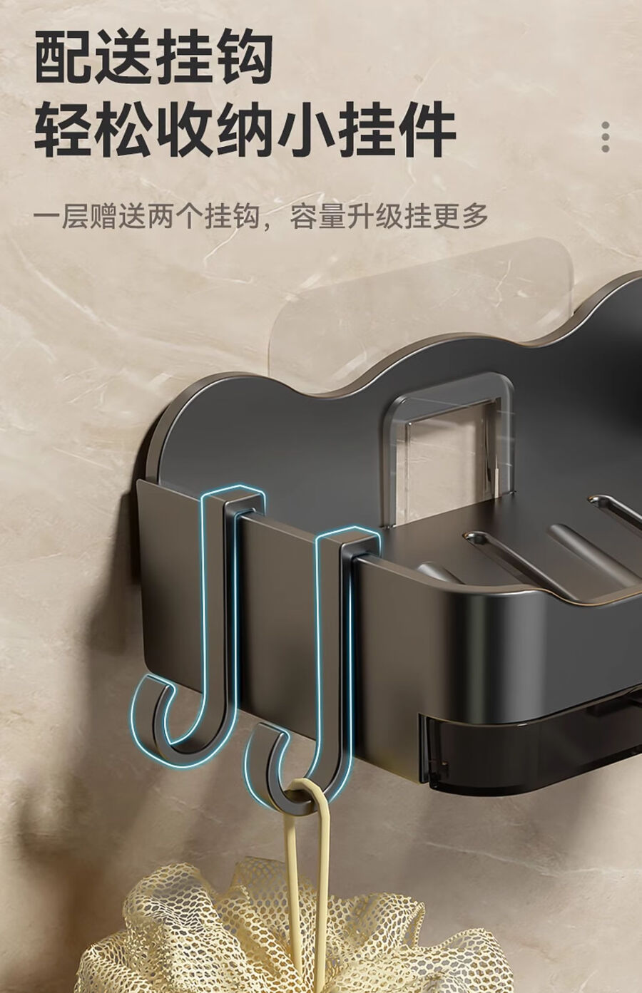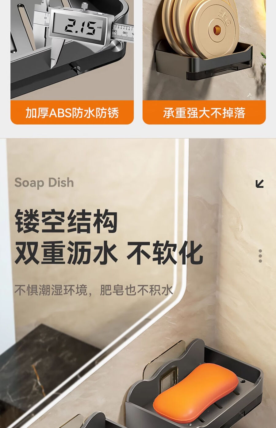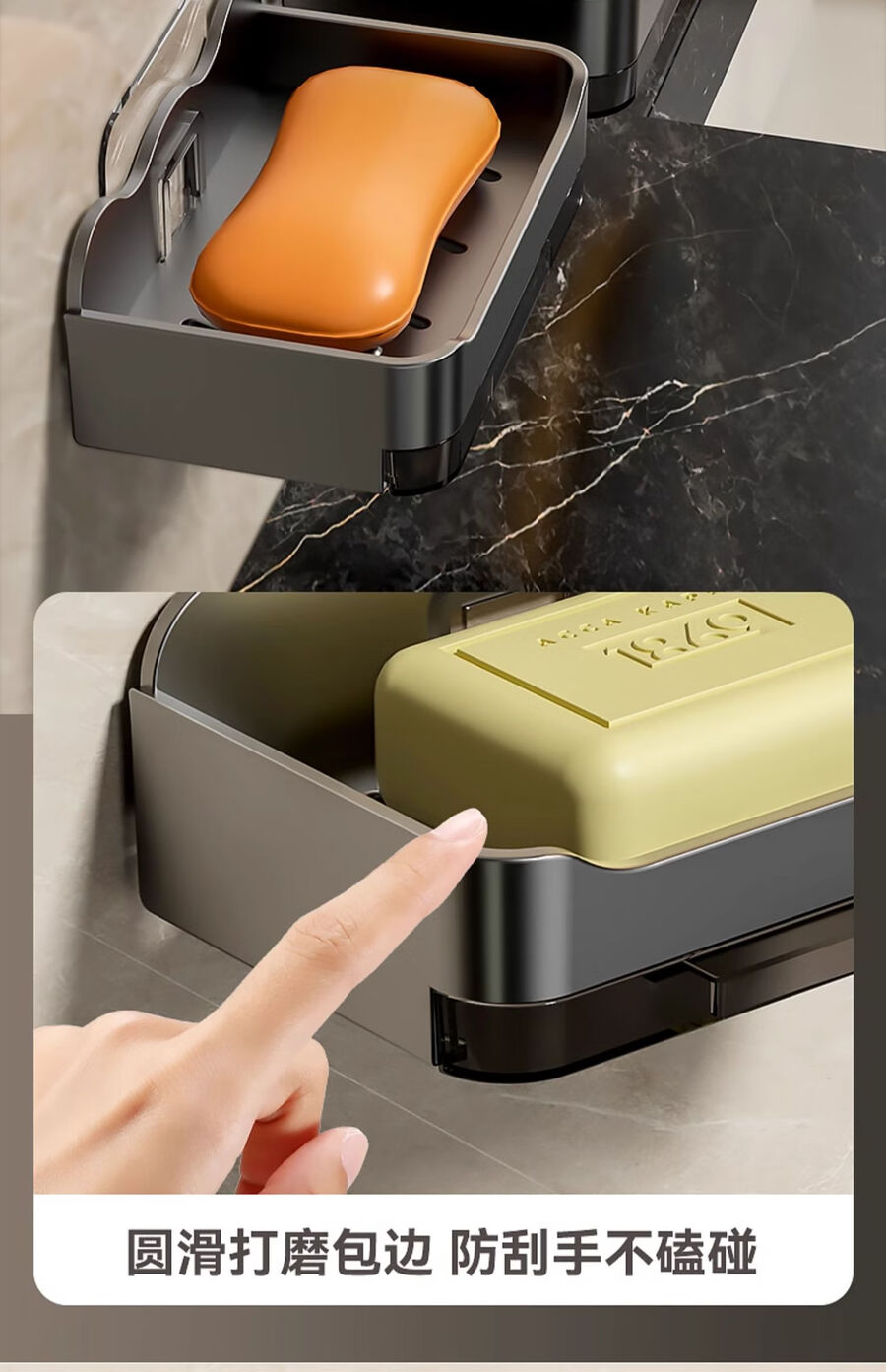 Gu Ruiniao punch-free soap dish wall-mounted bathroom double-layer soap drain box home bathroom wall soap shelf gray 2 pieces (with drain tray) no specifications