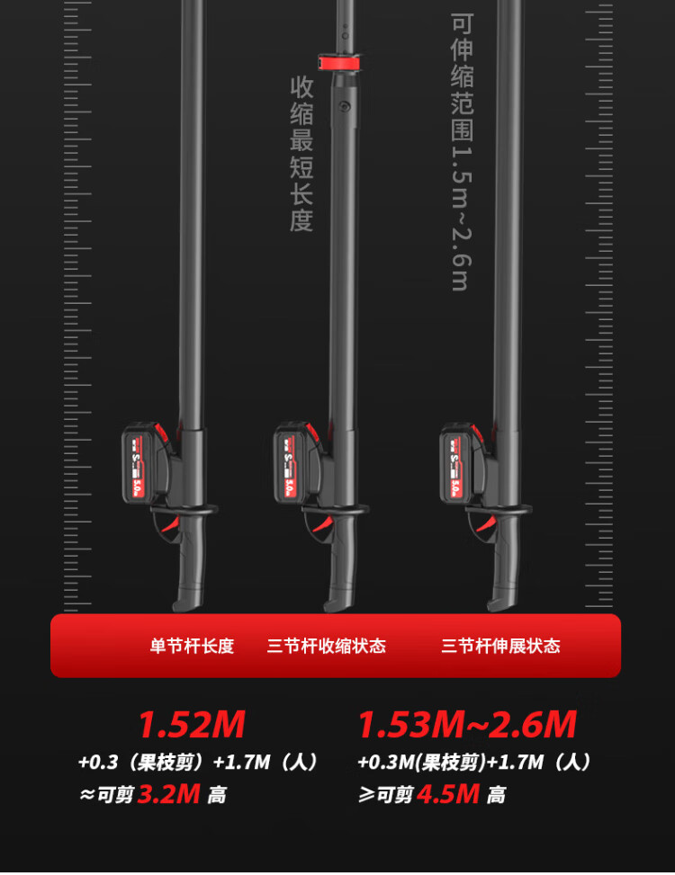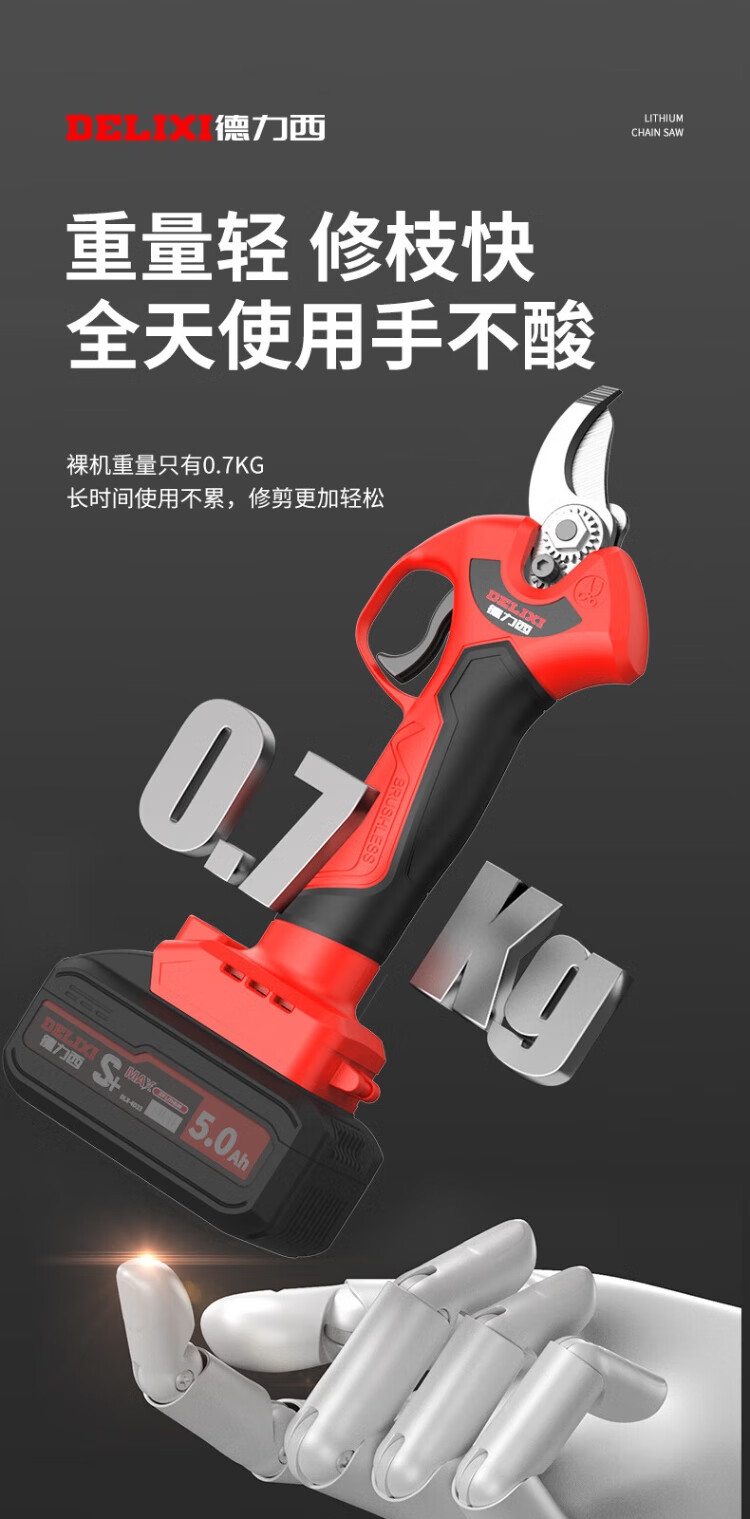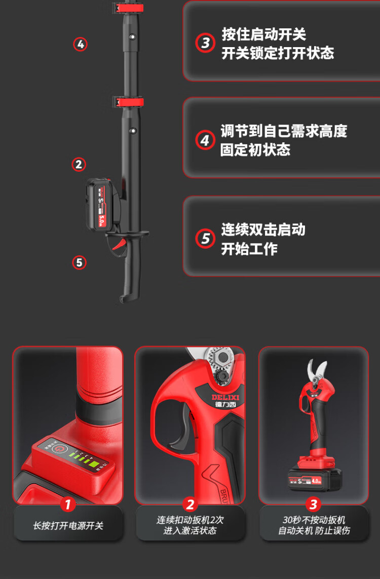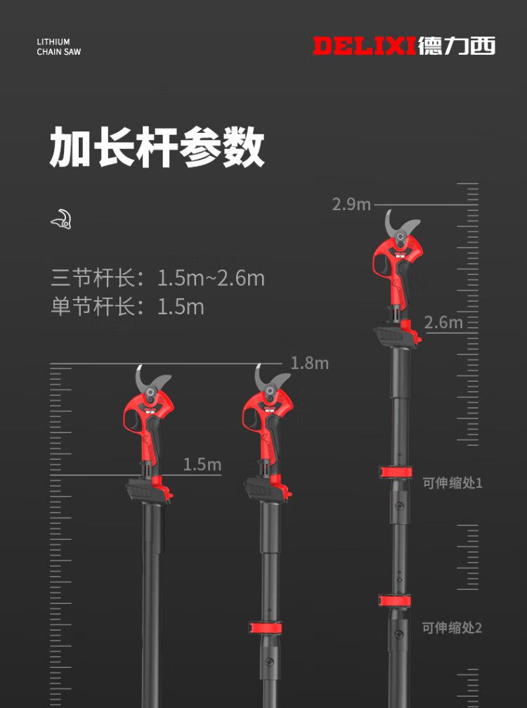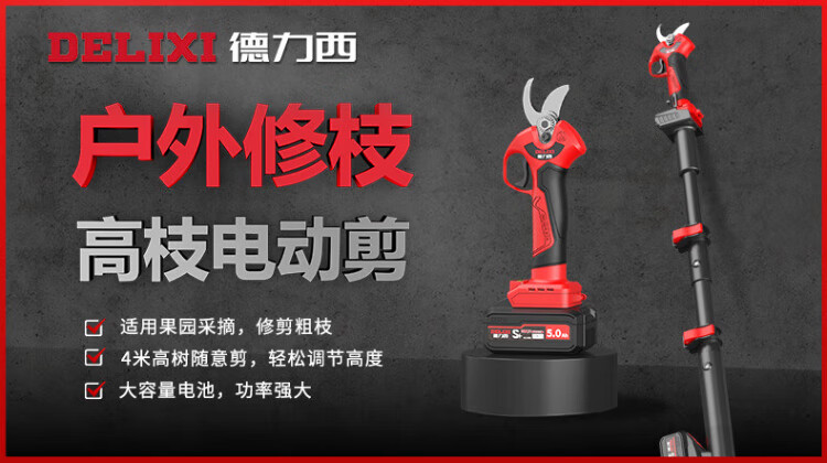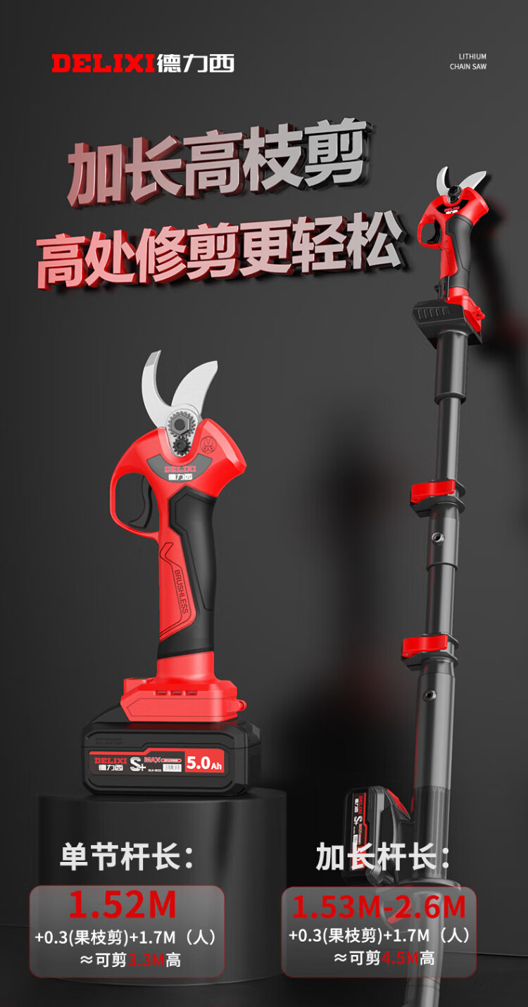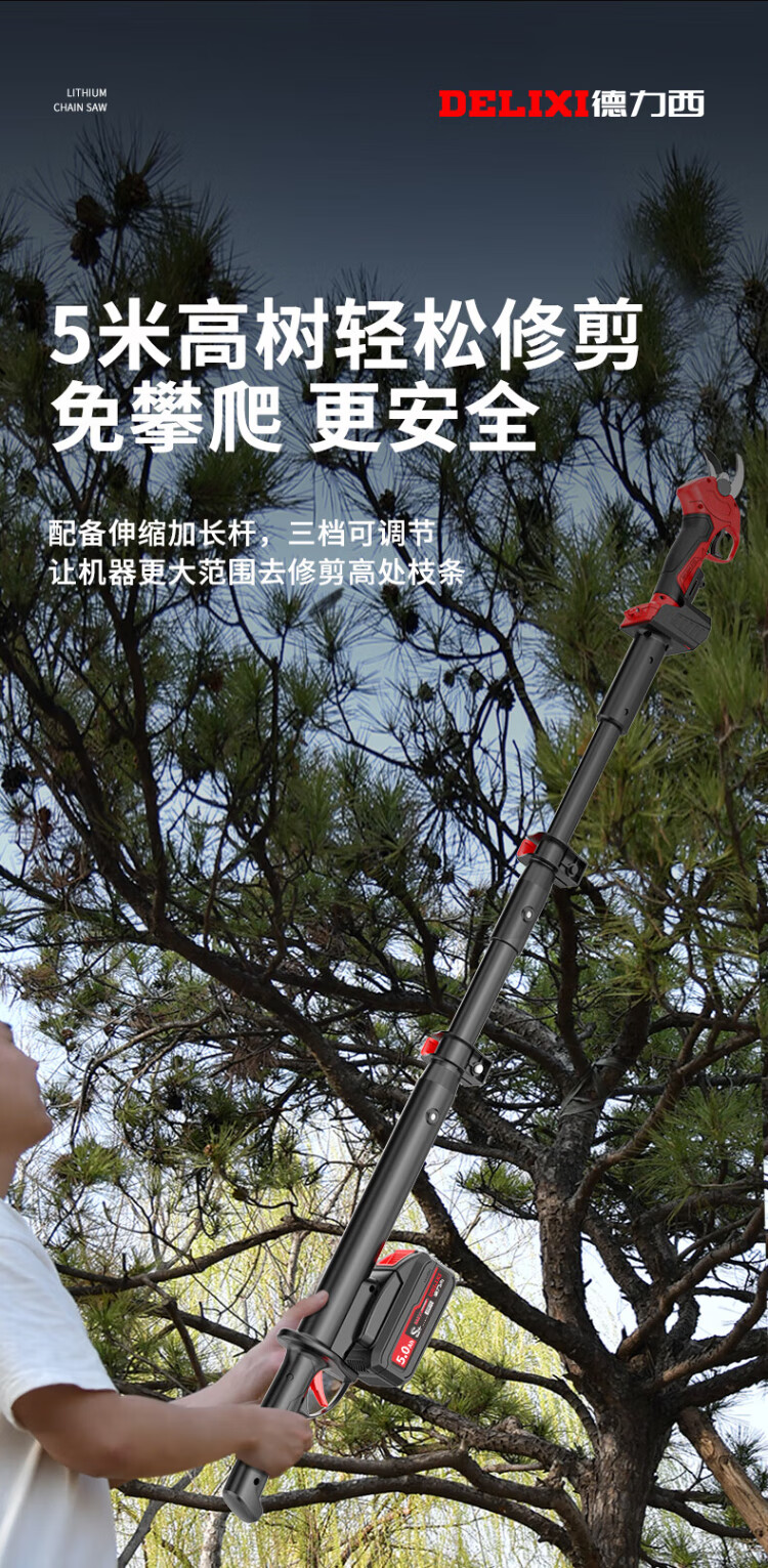 Delixi Electric Electric Scissors Fruit Tree High-altitude Pruning Shears Rechargeable Telescopic Pole Pruning Shears Tree Scissors Gardening Scissors Electric Agricultural Tools Can Cut 3.3 Meters High 4.0 Brushless One Electric