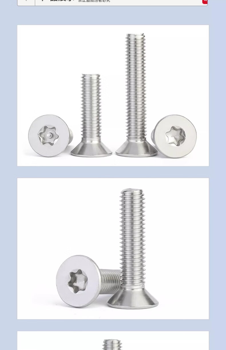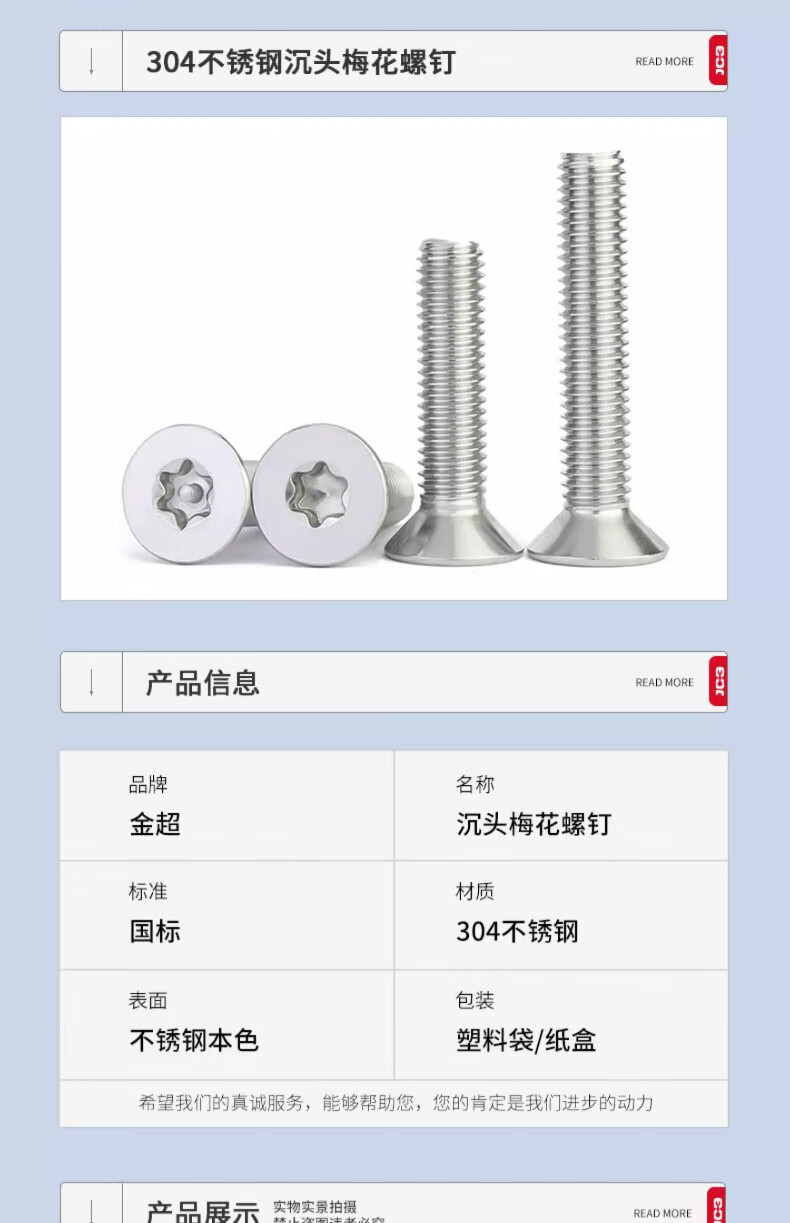 Jinchao 304 stainless steel screws countersunk head flat head plum blossom without column anti-theft screw M2M2.5M3M4M5M6M8 M4*12 (50 pieces) without column