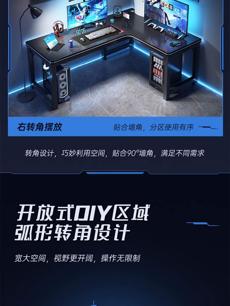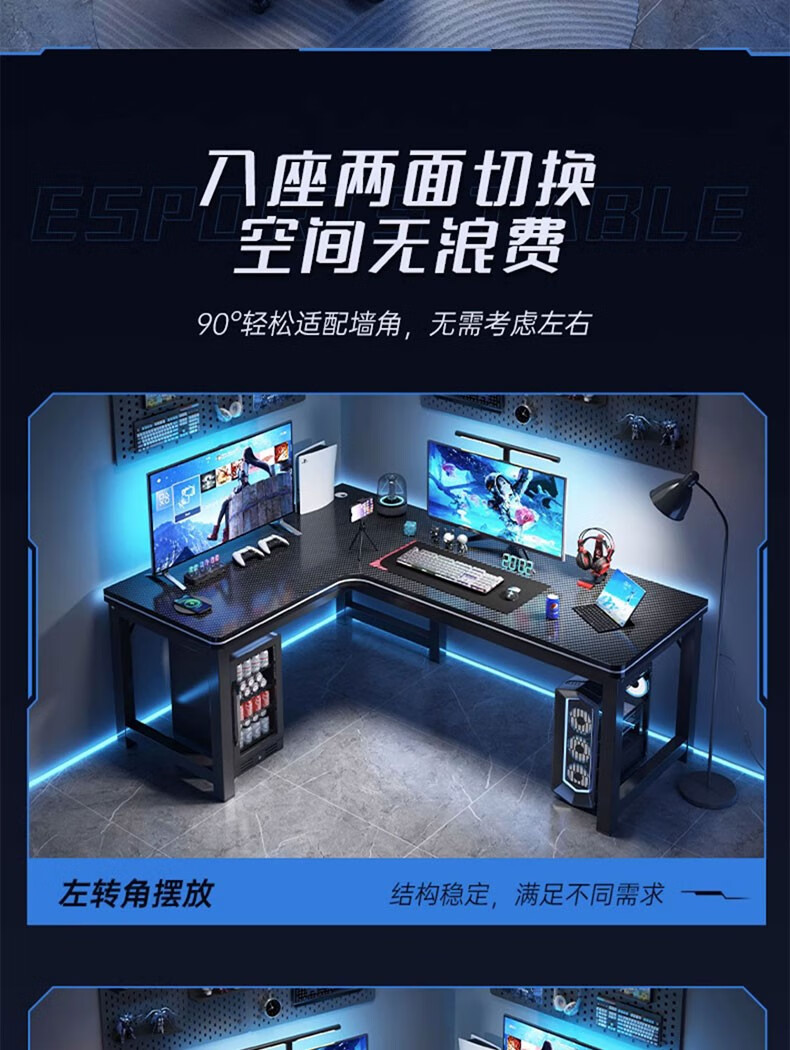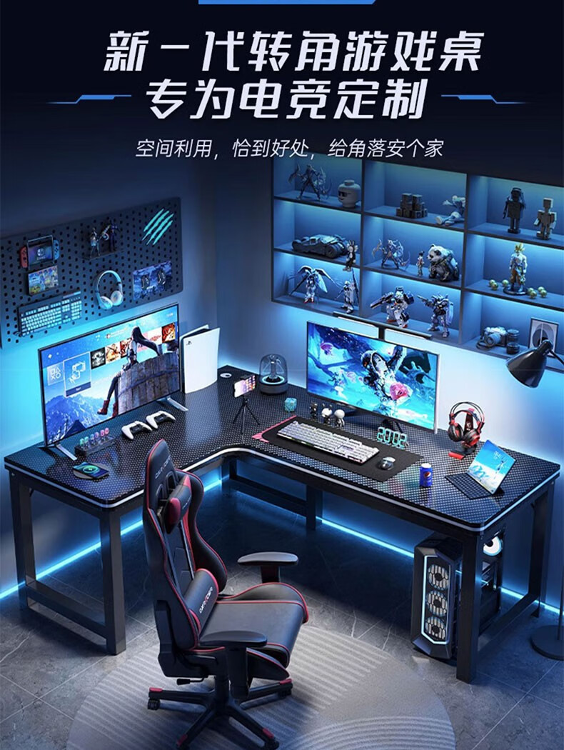 Hesheng Corner Computer Desk Corner Corner Office Writing Study Table Home Bedroom E-Sports Double Desk Writing Table Left and Right Interchangeable - 180*120 Storage Rack 100CM