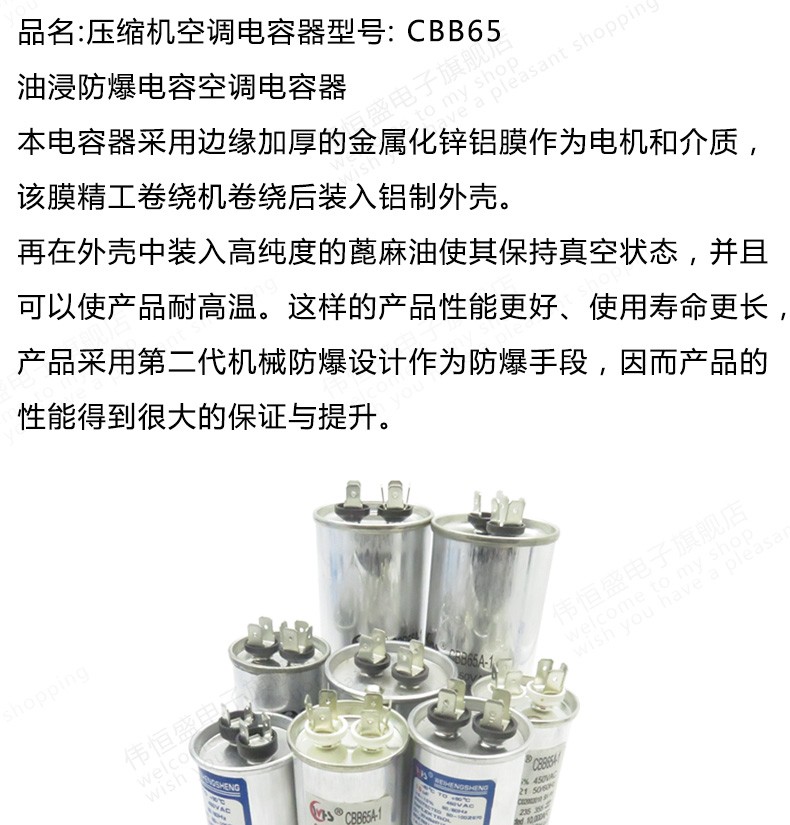 CBB65 air conditioning compressor starting capacitor 25/30/35/40/45/50/55/60/70UF450V CBB65 35UF high quality explosion-proof HG