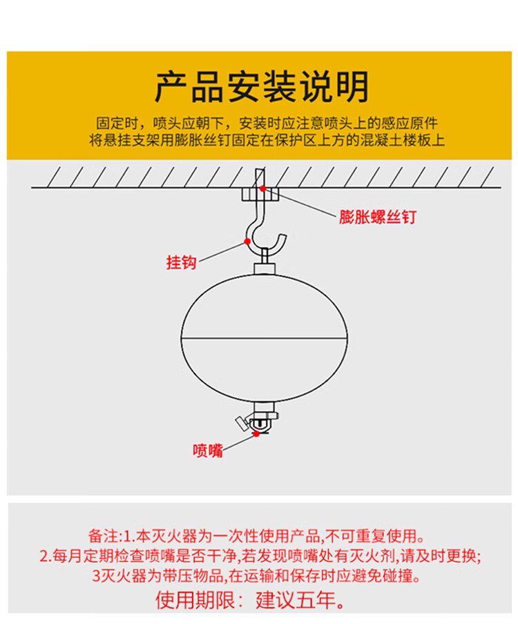 Huanghaixiao hanging heptafluoropropane fire extinguisher/heptafluoropropane automatic fire extinguishing gas device containing agent 10kg 10L heptafluoropropane