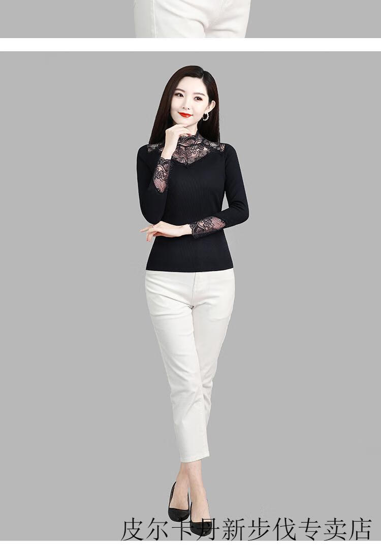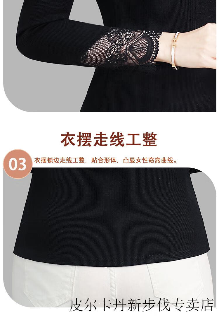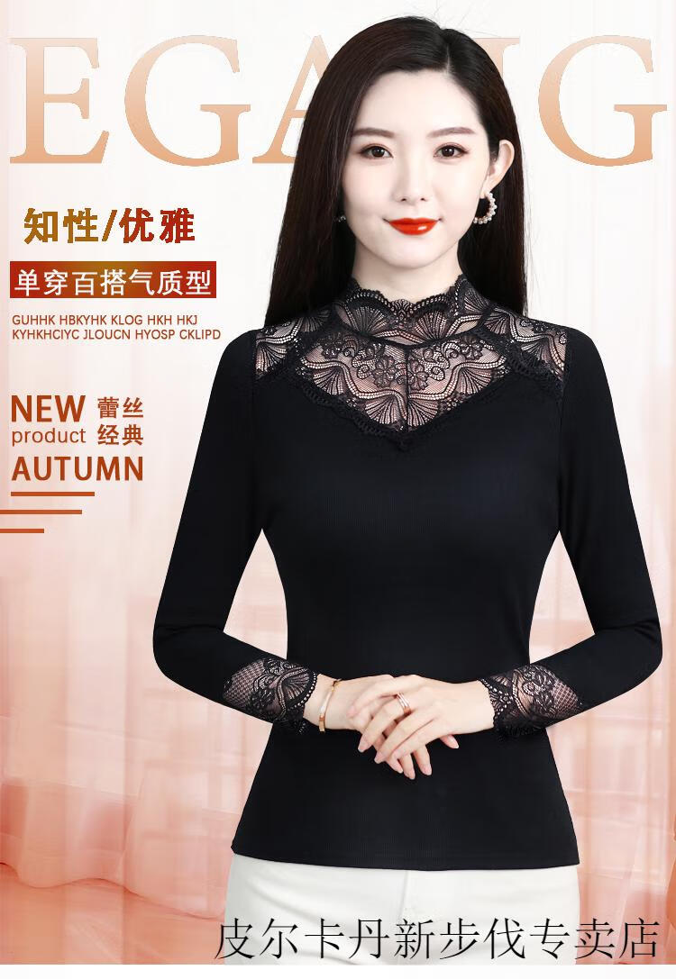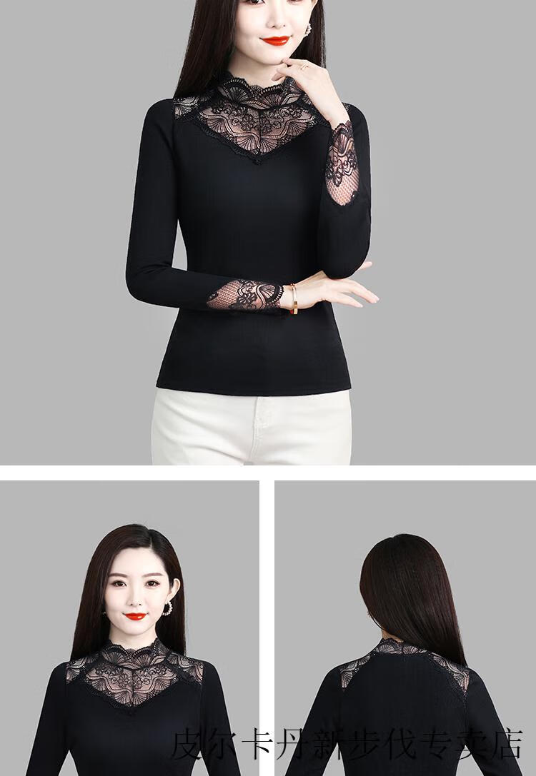 Woodpecker (TUCANO) Lace Bottoming Shirt Women's Autumn and Winter Fashionable and Western 2025 New Long-Sleeved Inner Warm Shirt Plus Velvet Thickened Top Black Lace Plus Velvet L