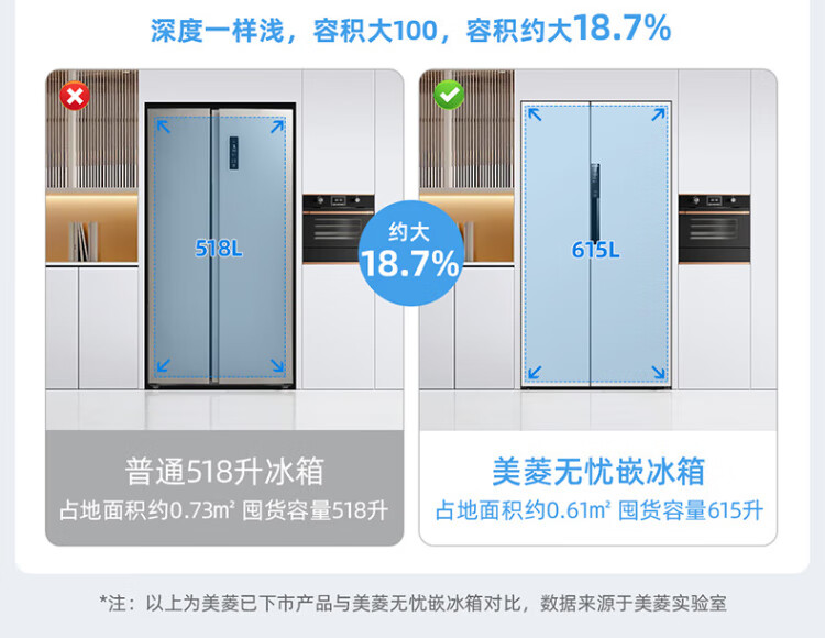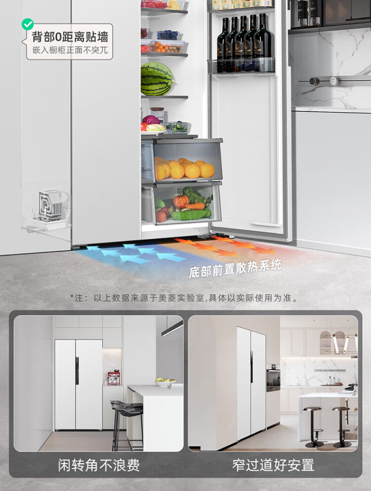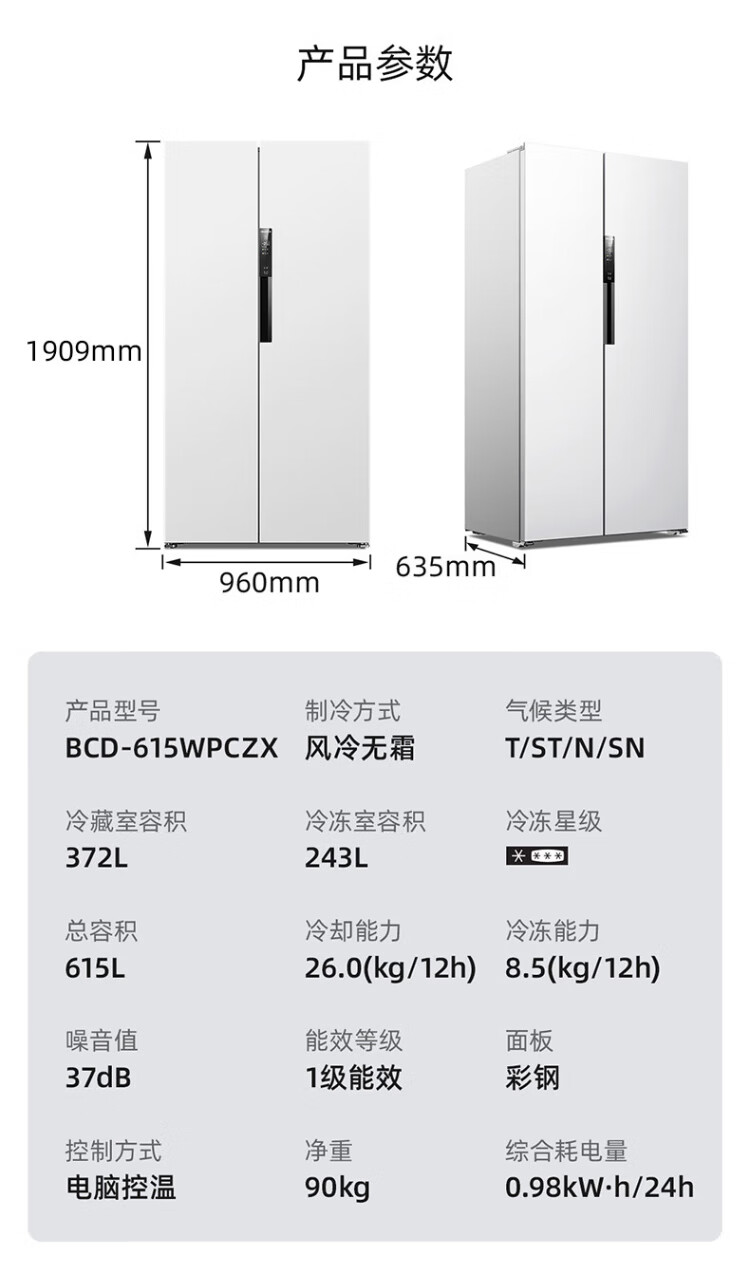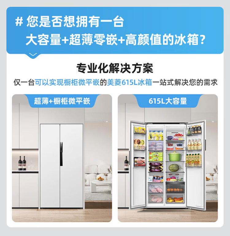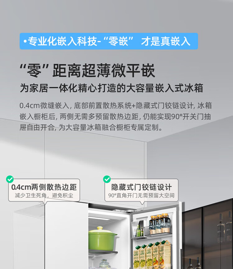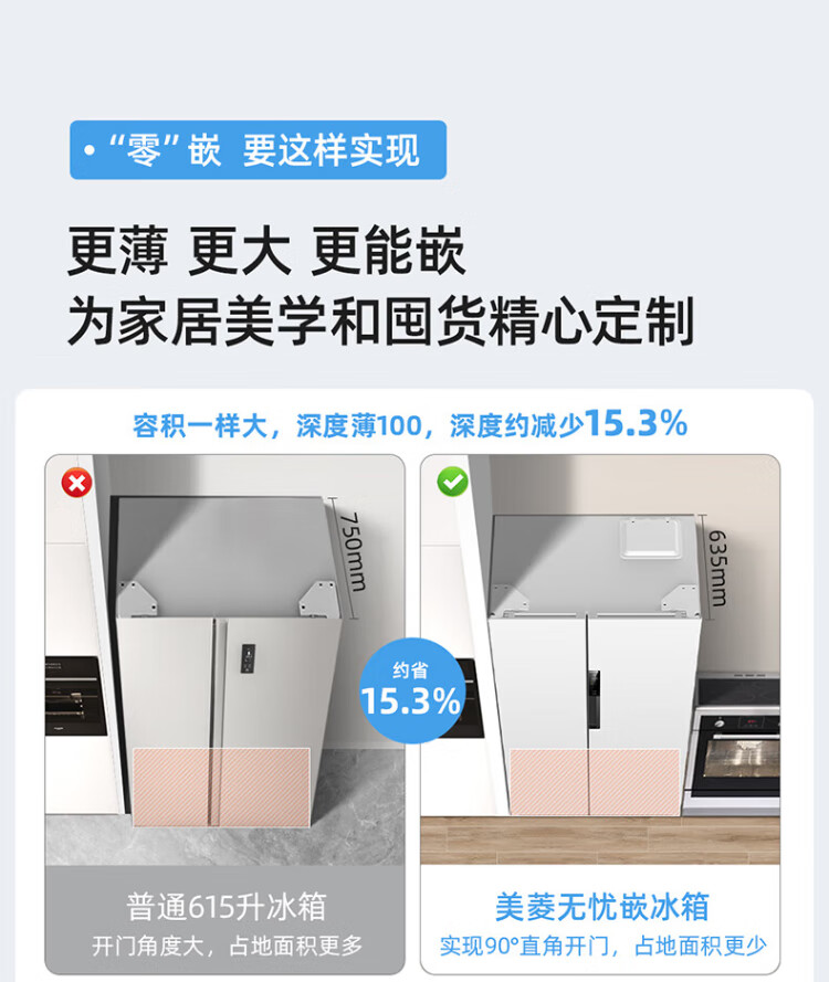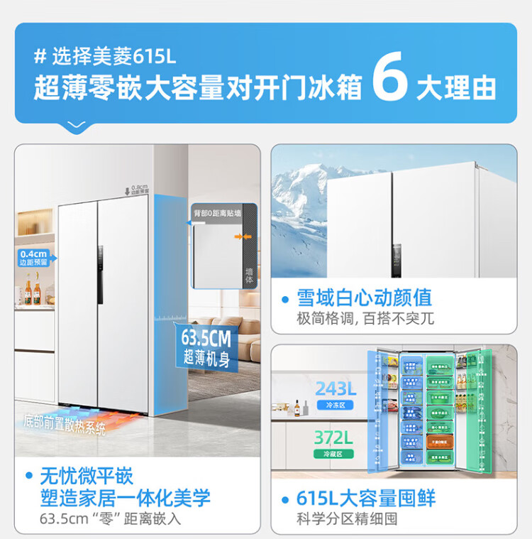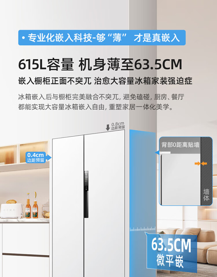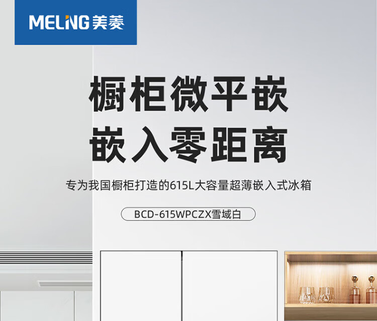 MeiLing worry-free embedded refrigerator 615 liters double-door household ultra-thin zero-embedded ultra-large capacity first-class energy efficiency air-cooled frost-free bottom cooling subsidy refrigerator white worry-free embedded BCD-615WPCZX snowy white