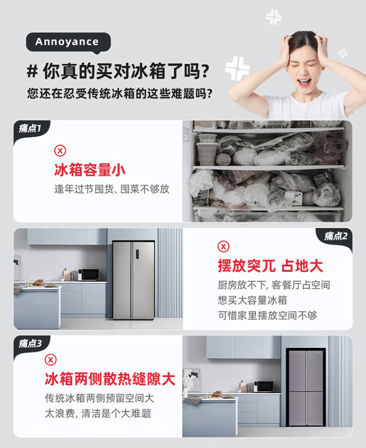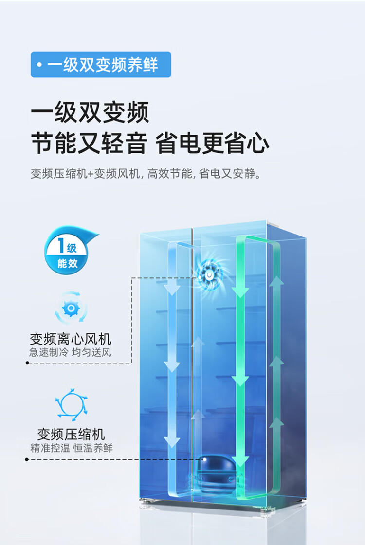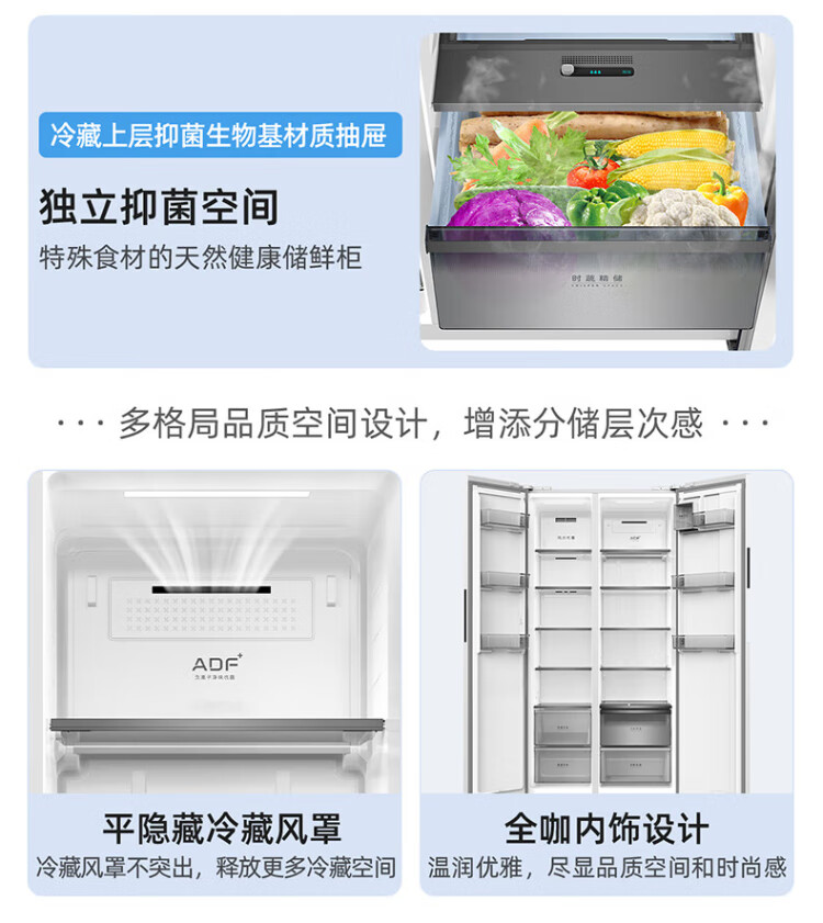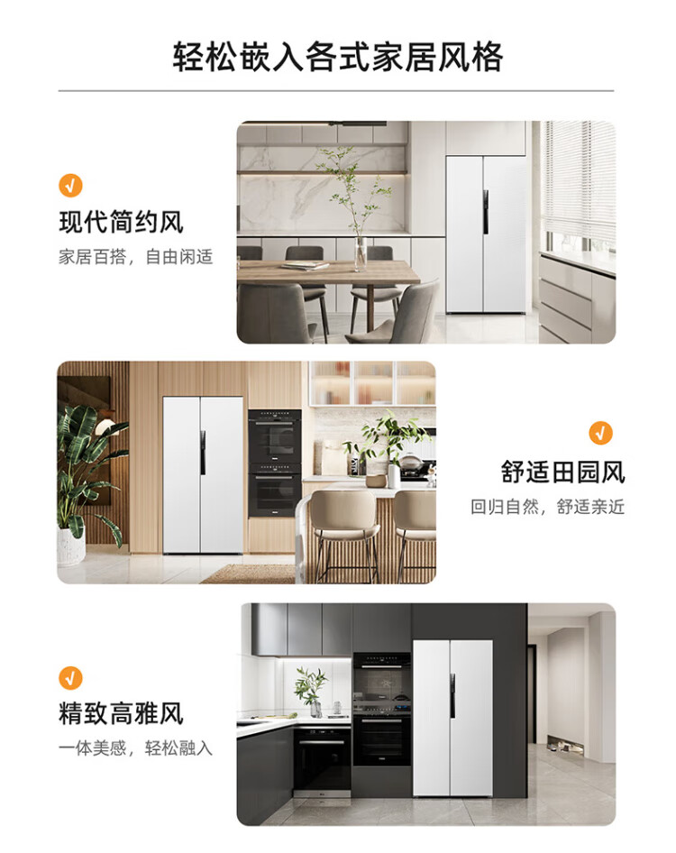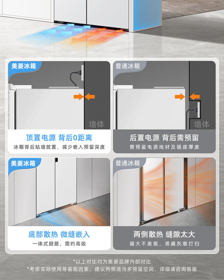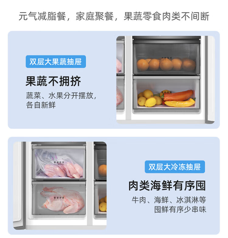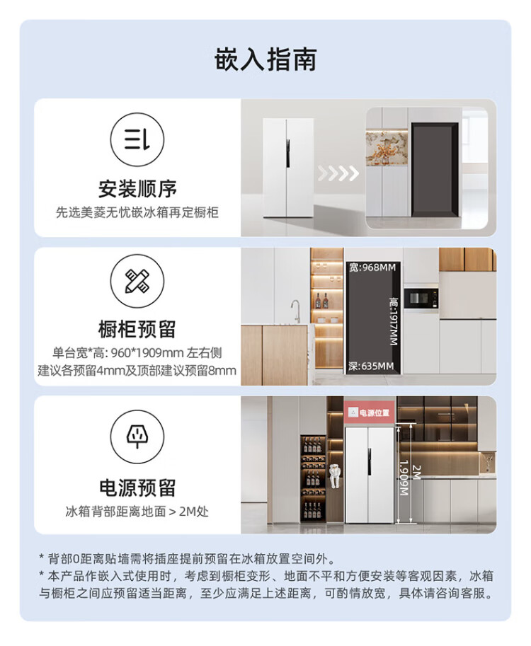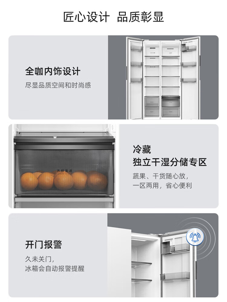 MeiLing worry-free embedded refrigerator 615 liters double-door household ultra-thin zero-embedded ultra-large capacity first-class energy efficiency air-cooled frost-free bottom cooling subsidy refrigerator white worry-free embedded BCD-615WPCZX snowy white