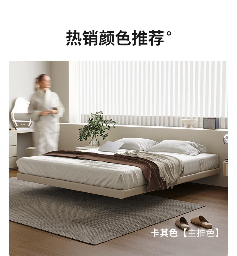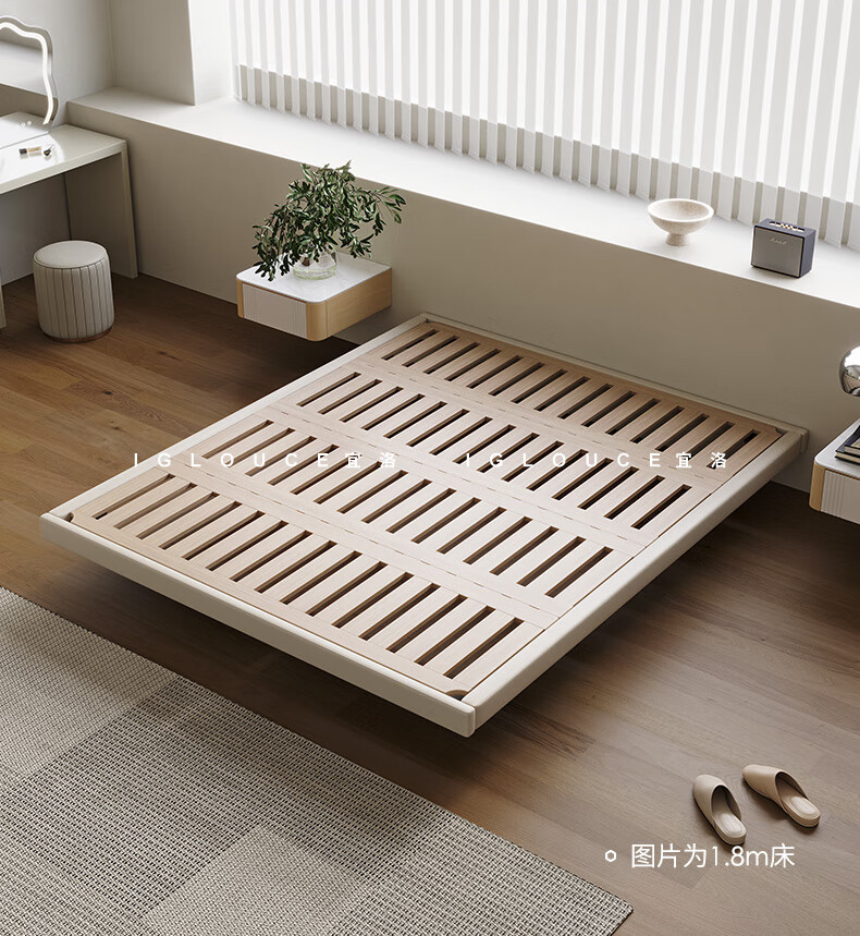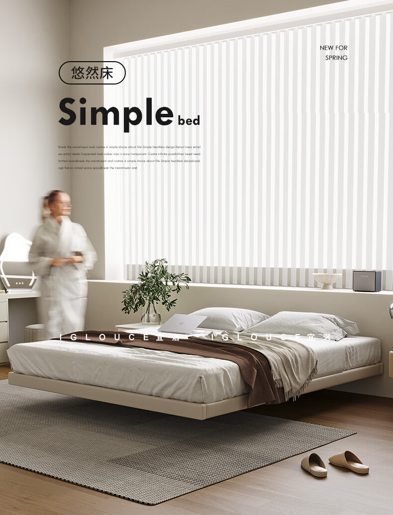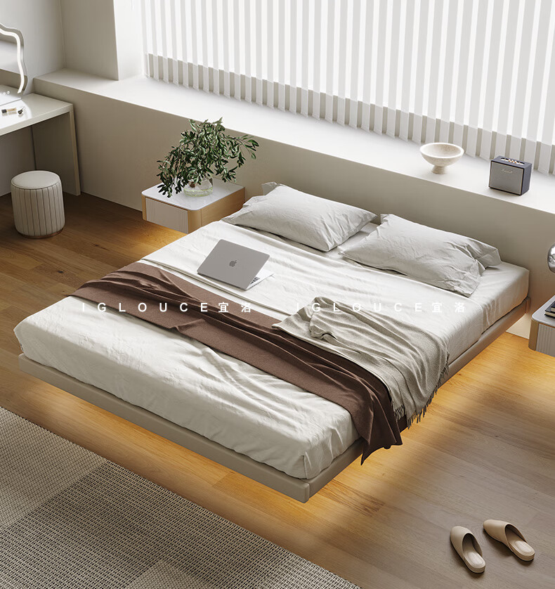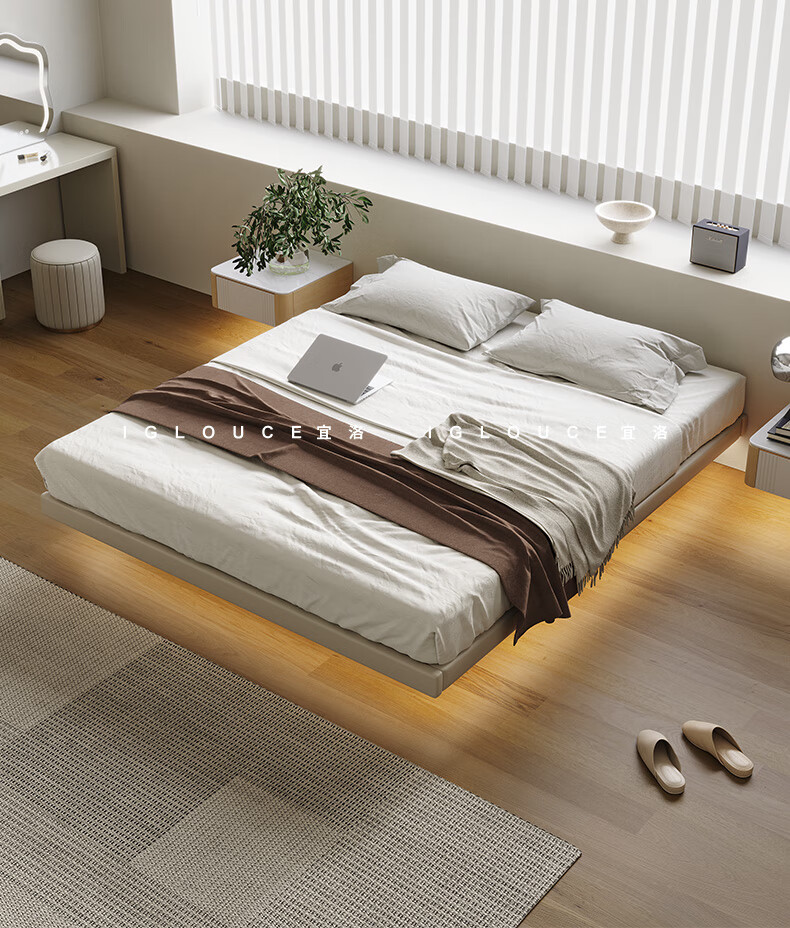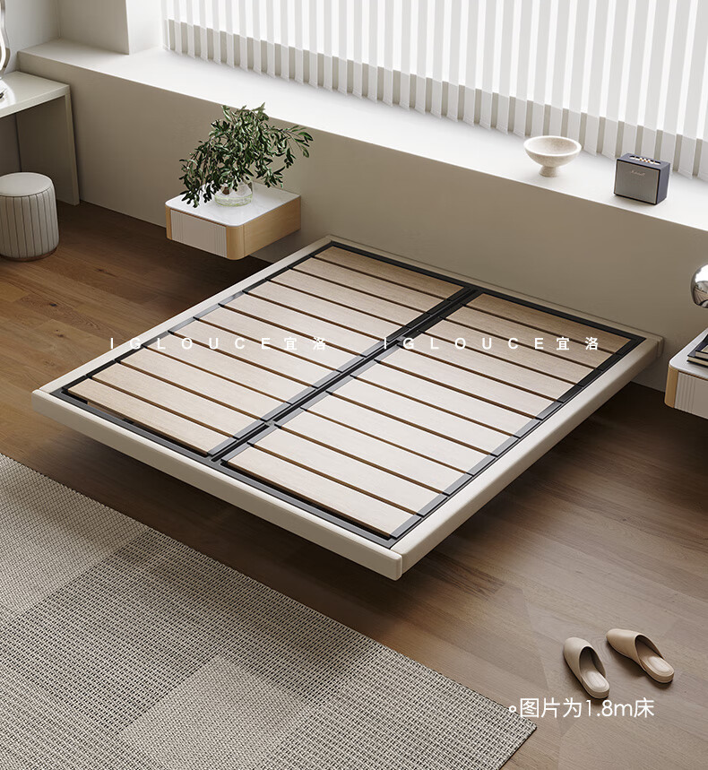 Yiluo suspended bed modern minimalist minimalist without bedside bed master bedroom double bed Italian light luxury leather bed without backrest beech wood row frame bed + with lamp suspended structure 1800mm*2000mm