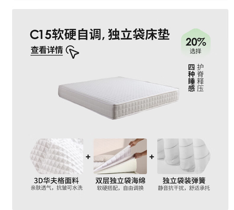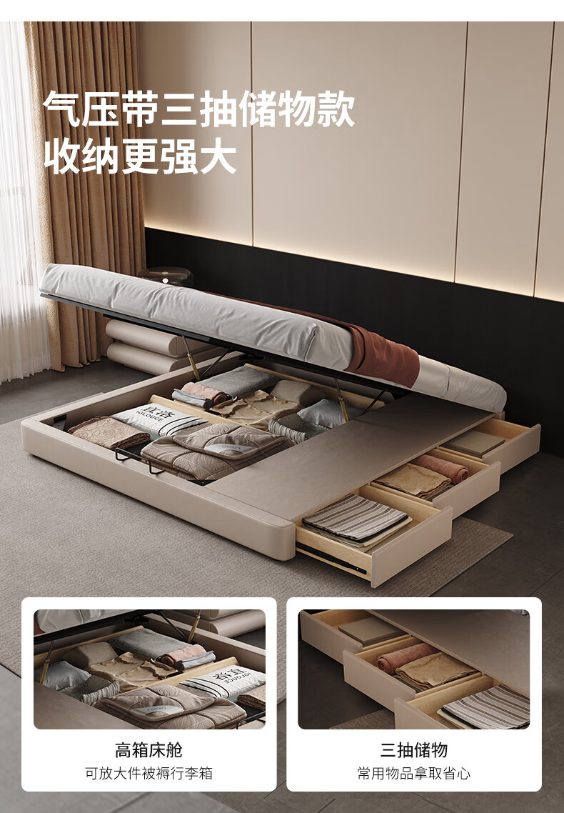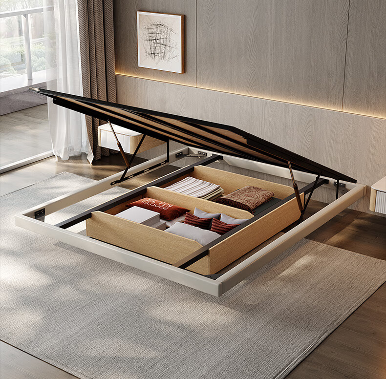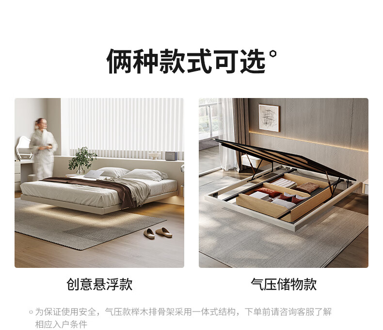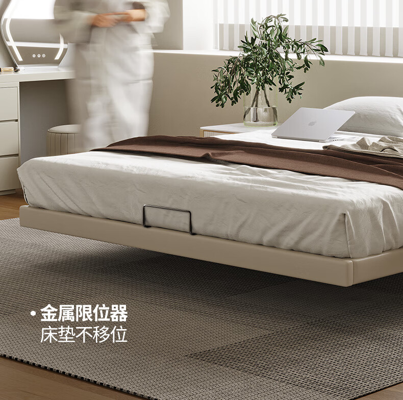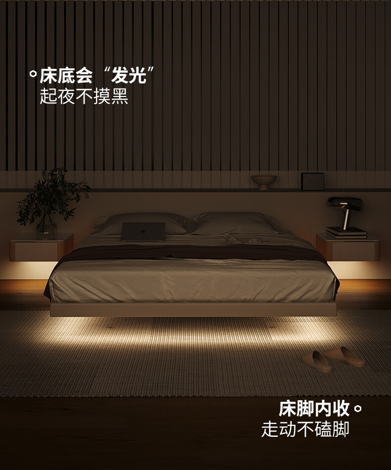 Yiluo suspended bed modern minimalist minimalist without bedside bed master bedroom double bed Italian light luxury leather bed without backrest beech wood row frame bed + with lamp suspended structure 1800mm*2000mm