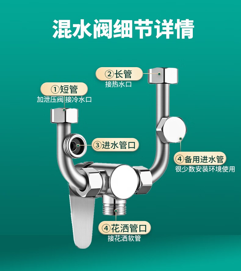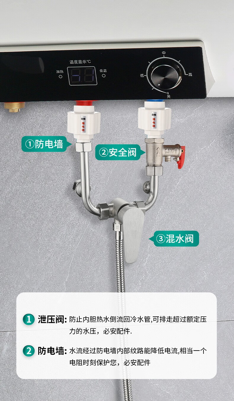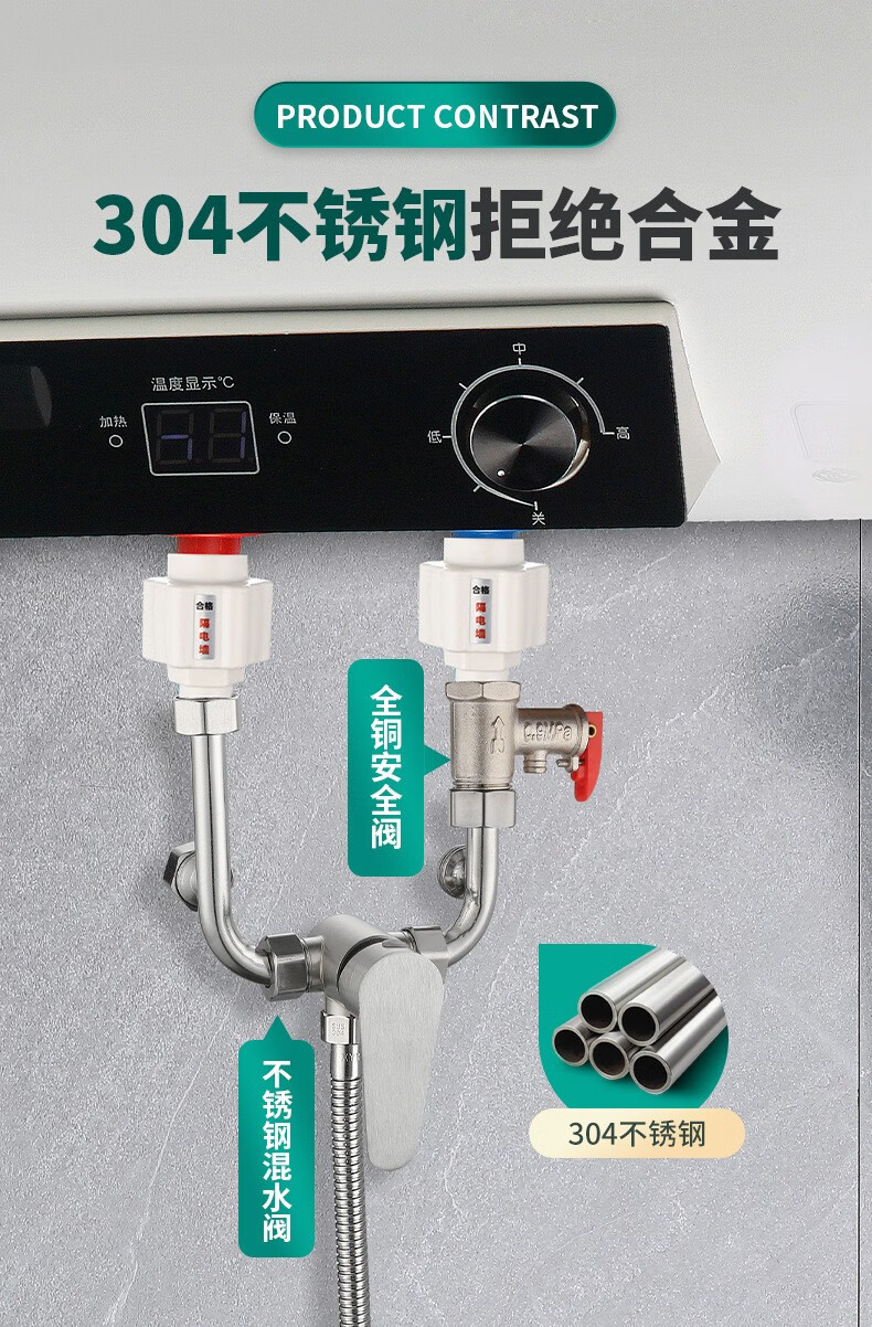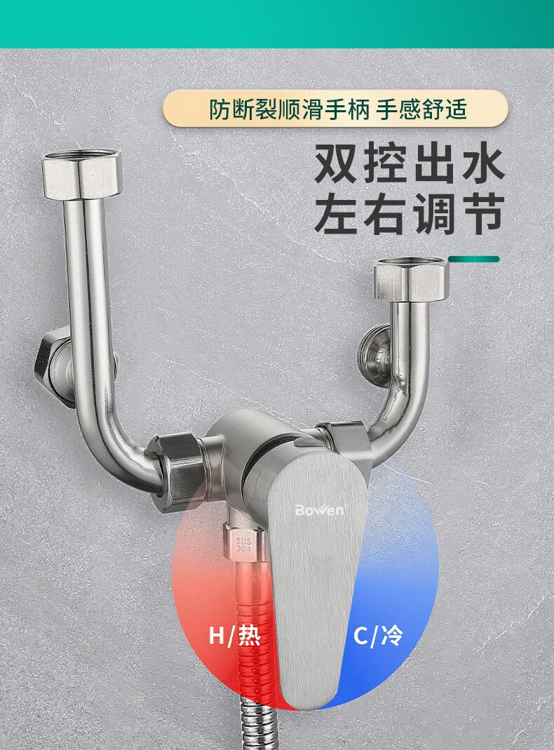 Bowen 304 stainless steel electric water heater mixing valve bathroom bathroom shower hot and cold faucet U-shaped mixing valve switch U-shaped valve + safety valve