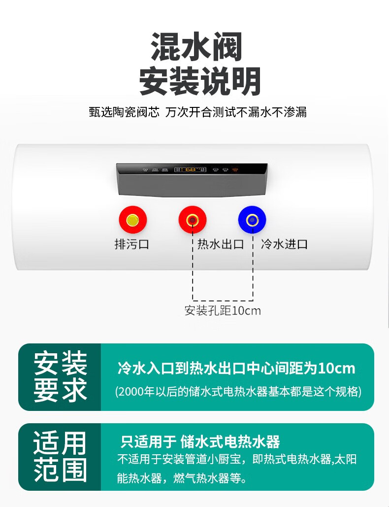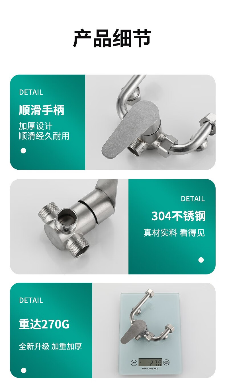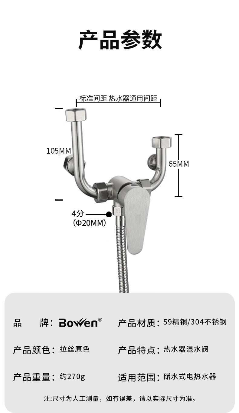 Bowen 304 stainless steel electric water heater mixing valve bathroom bathroom shower hot and cold faucet U-shaped mixing valve switch U-shaped valve + safety valve