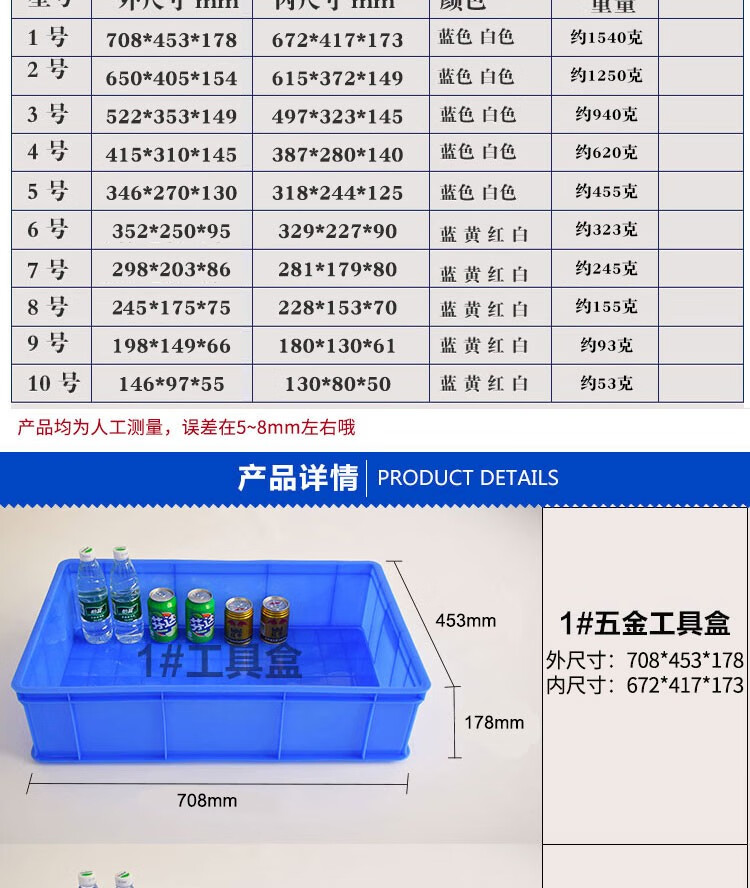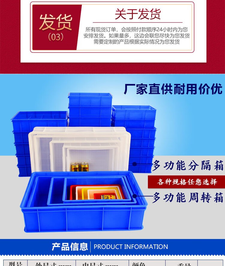 Logistics plastic turnover box rectangular thickened basket with lid extra large plastic frame storage box fish turtle tank No. 3 blue 520*350*150 special thickened